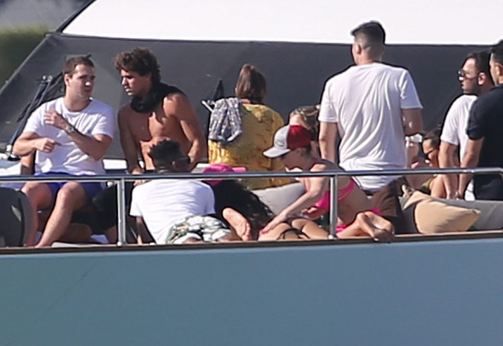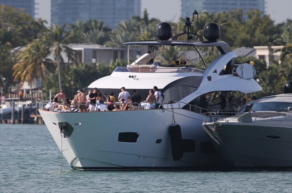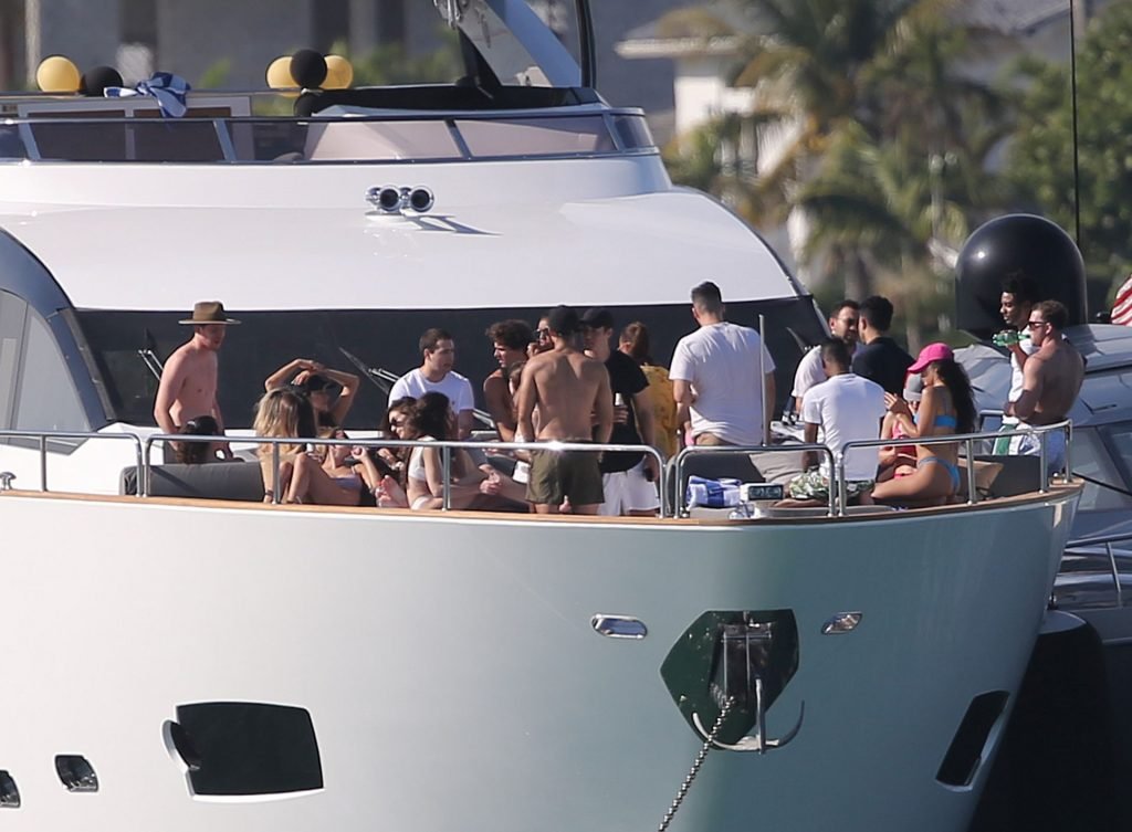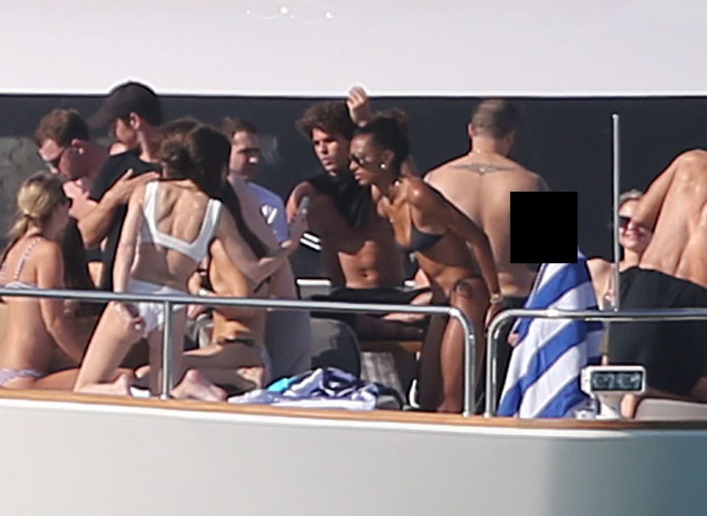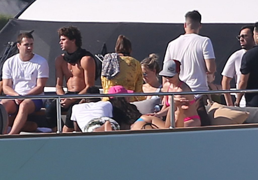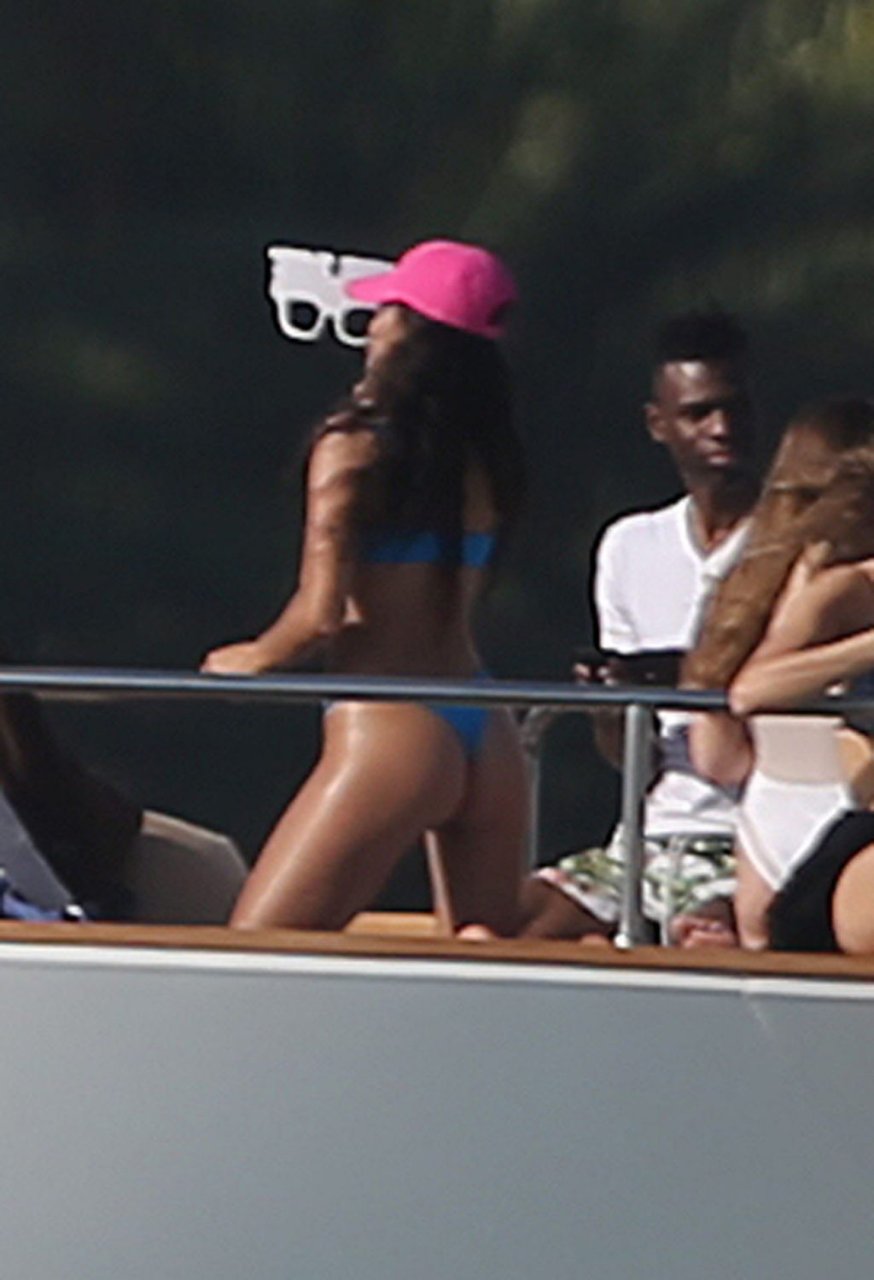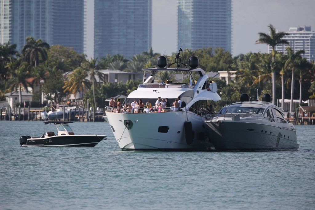 Models Jasmine Tookes (in bikini nero) e Shanina Shaik (in bikini blu) festeggiano il compleanno di Jasmine su uno yacht a Miami, 02/01/2019.