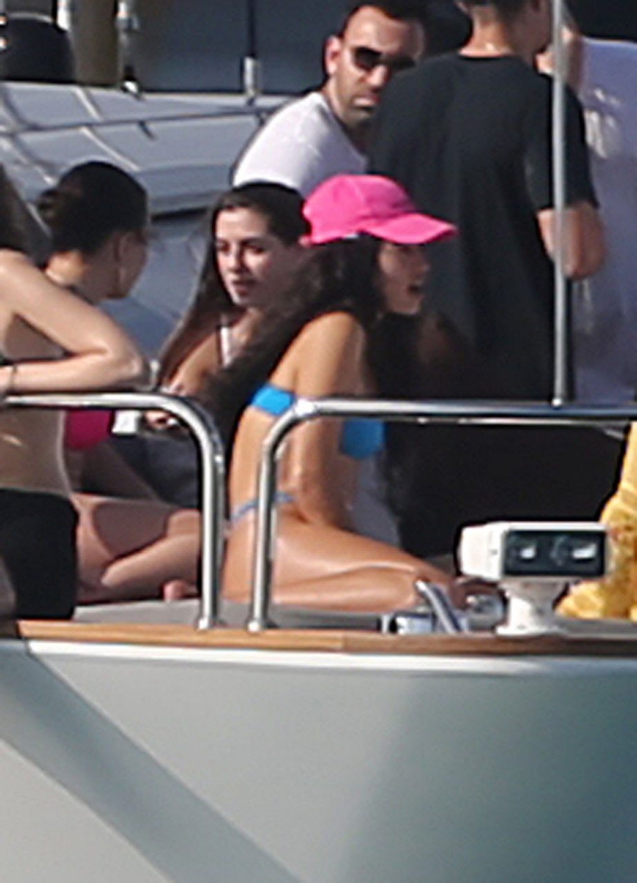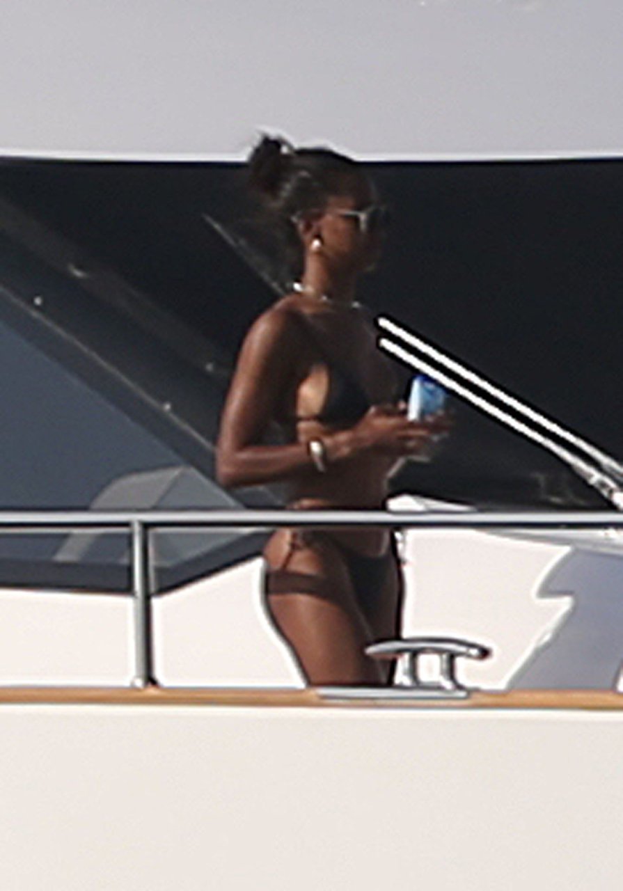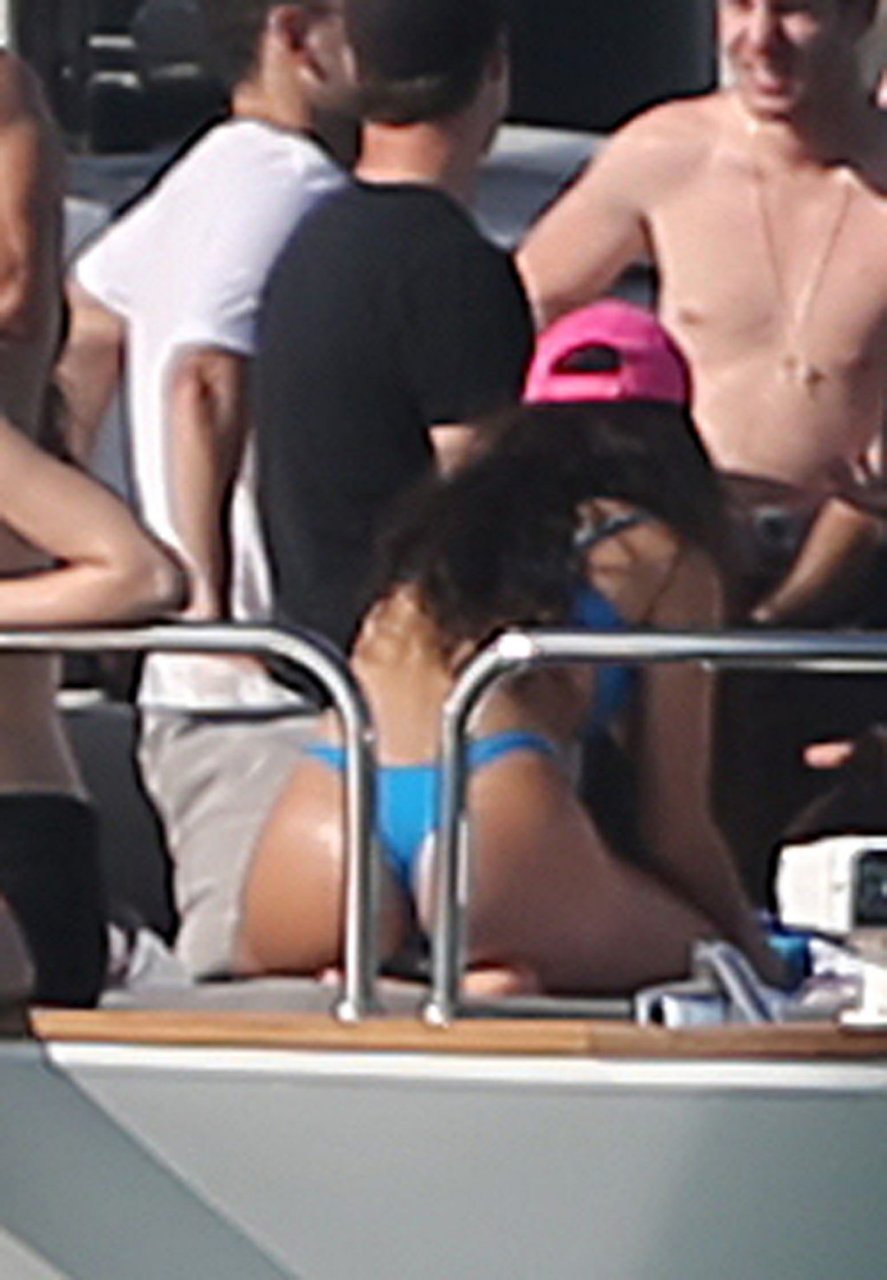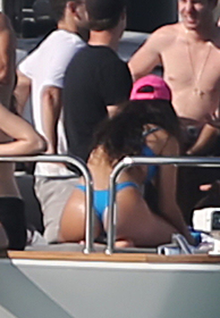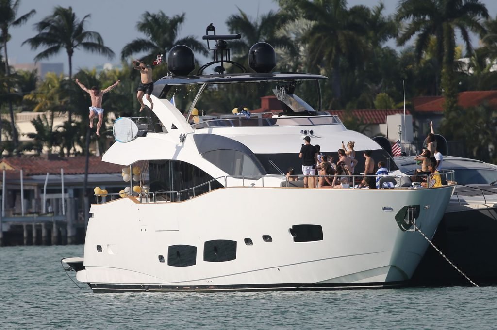 Models Jasmine Tookes (in bikini nero) e Shanina Shaik (in bikini blu) festeggiano il compleanno di Jasmine su uno yacht a Miami, 02/01/2019.