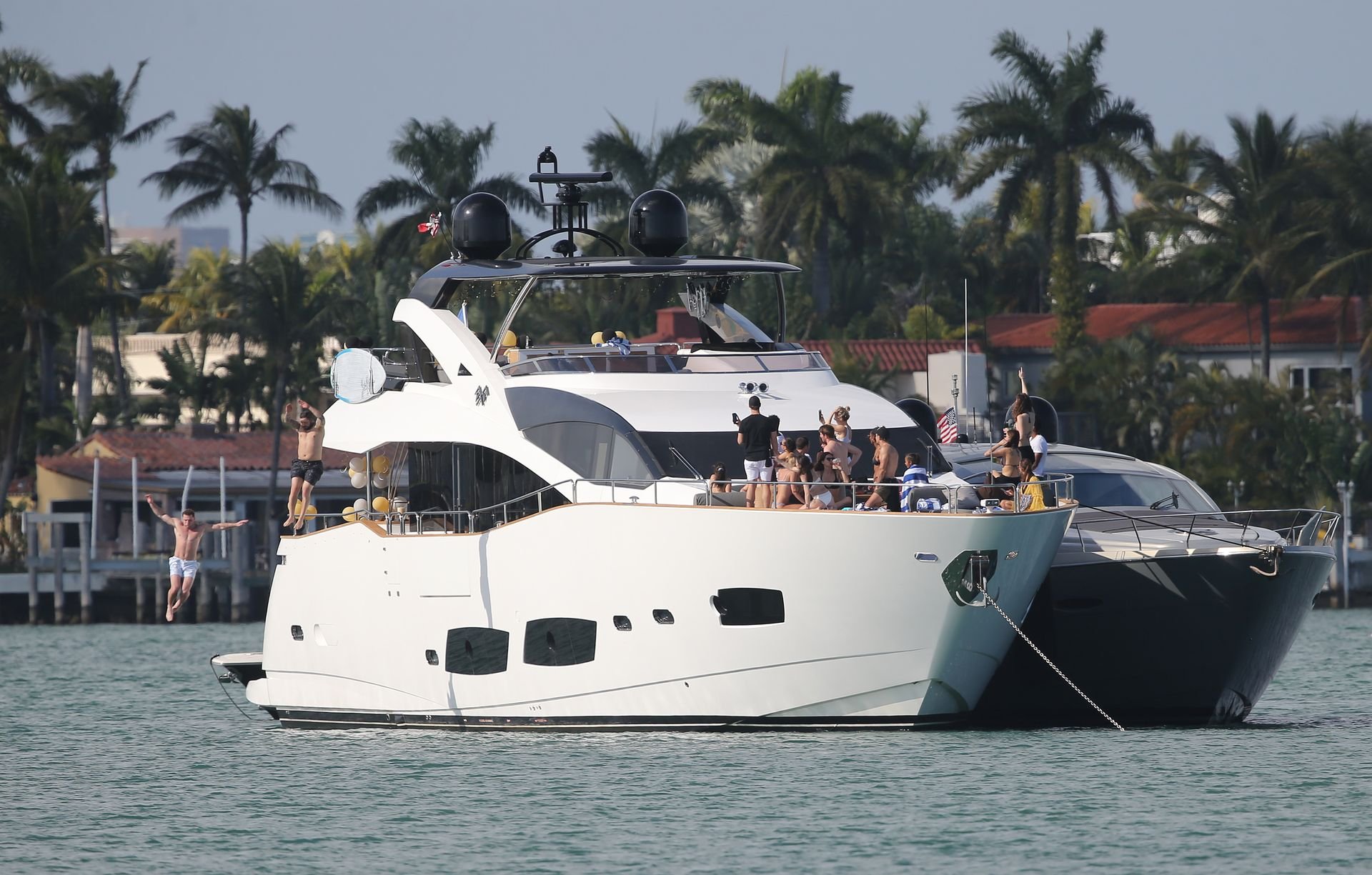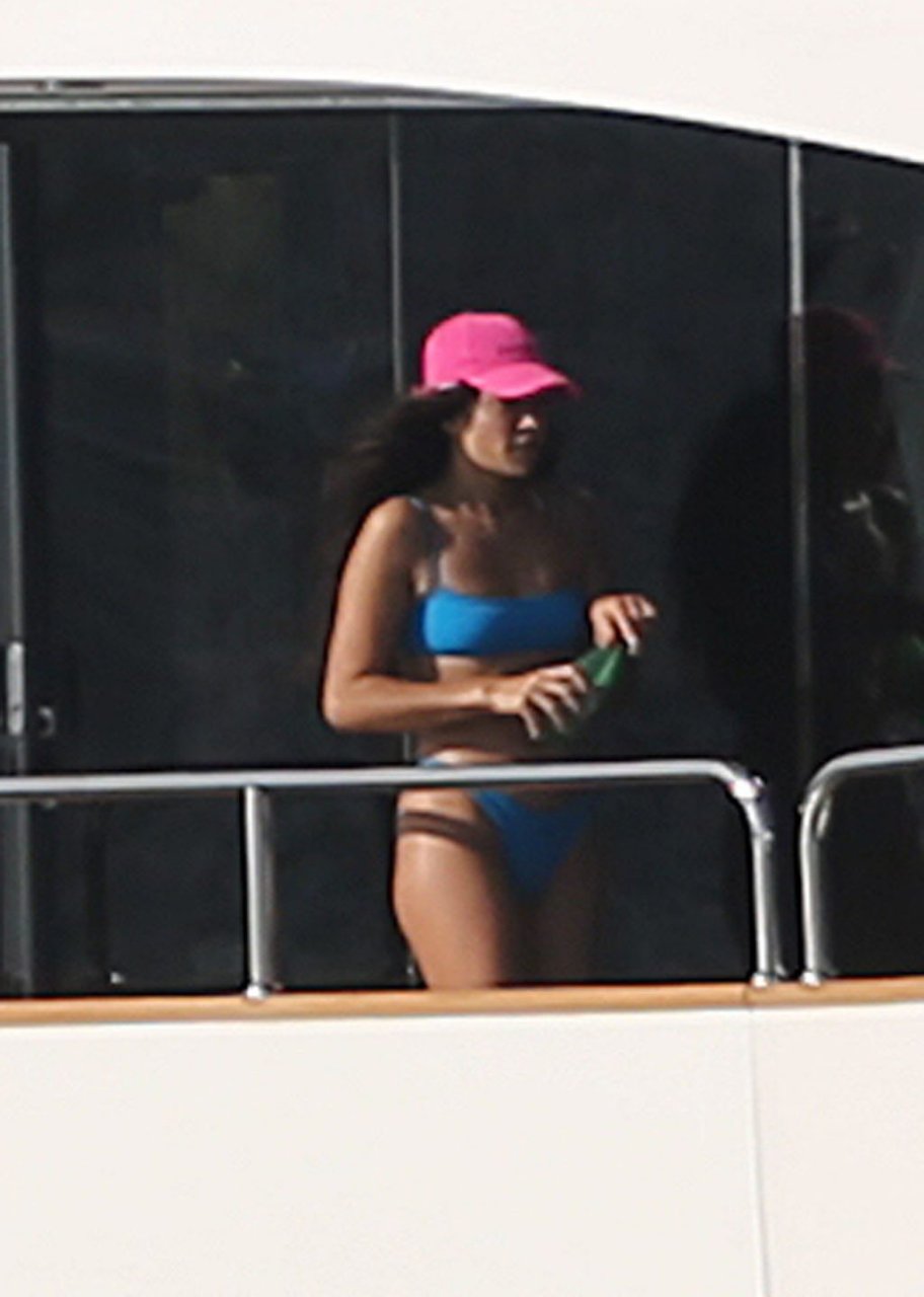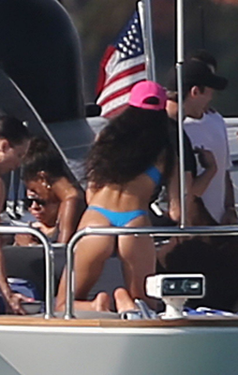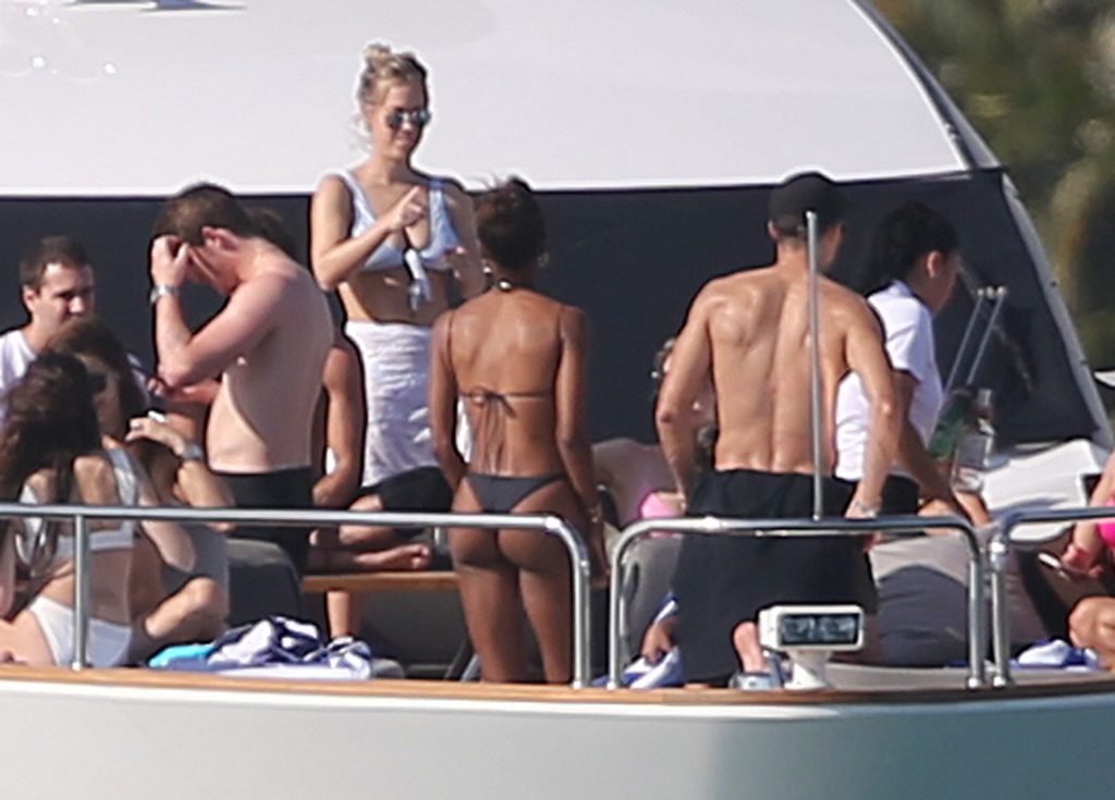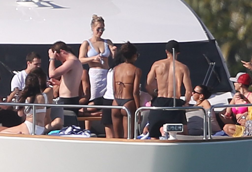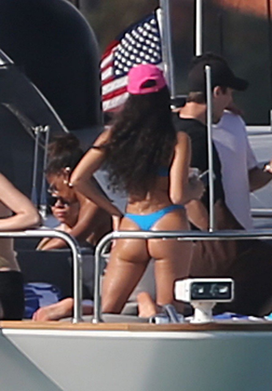 Models Jasmine Tookes (in bikini nero) e Shanina Shaik (in bikini blu) festeggiano il compleanno di Jasmine su uno yacht a Miami, 02/01/2019.