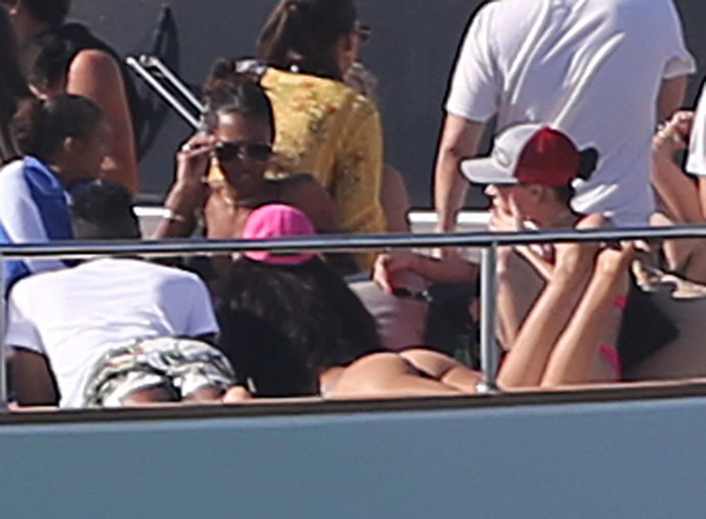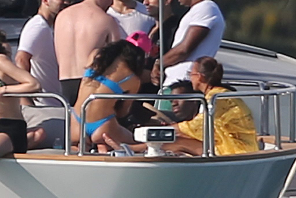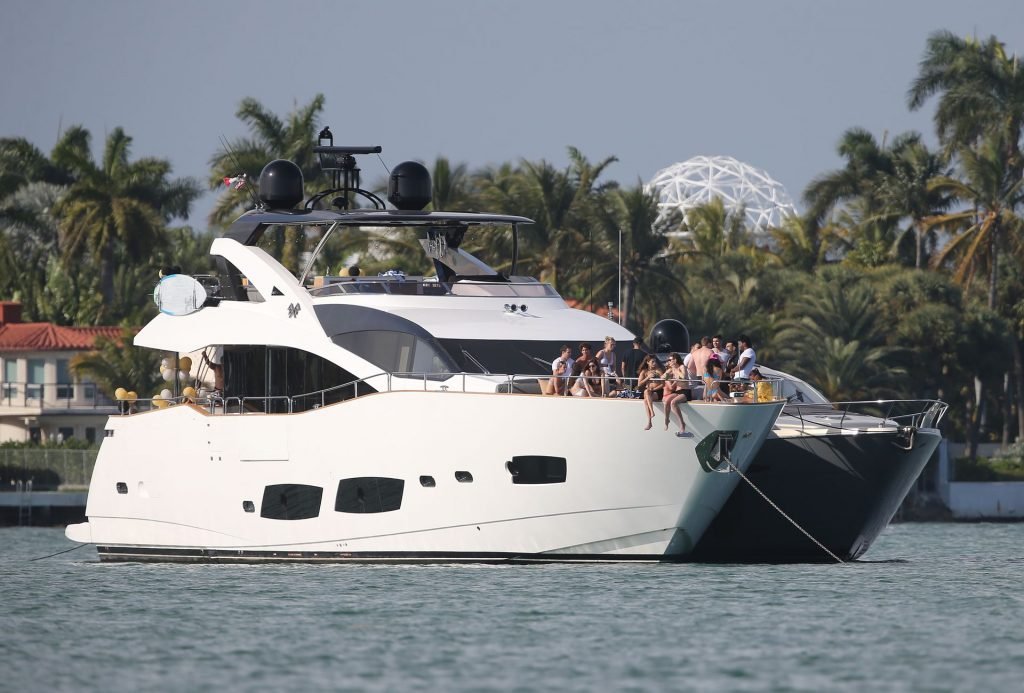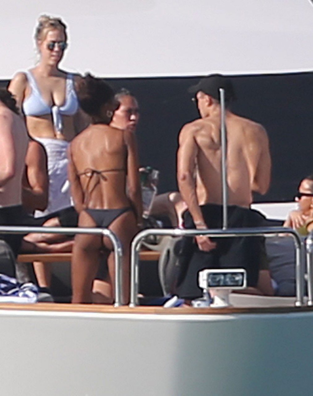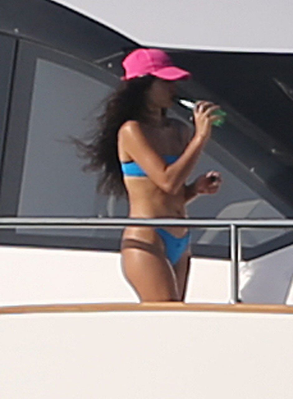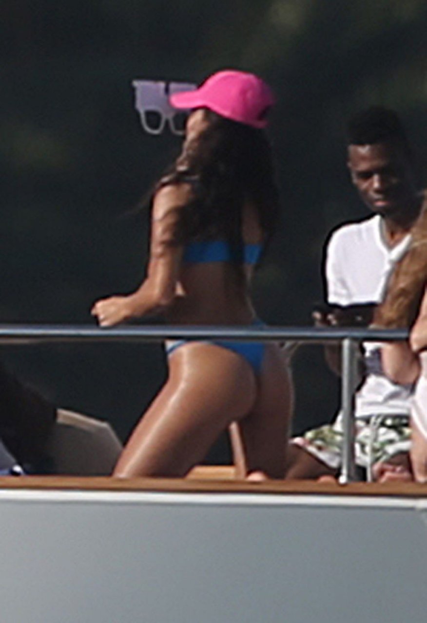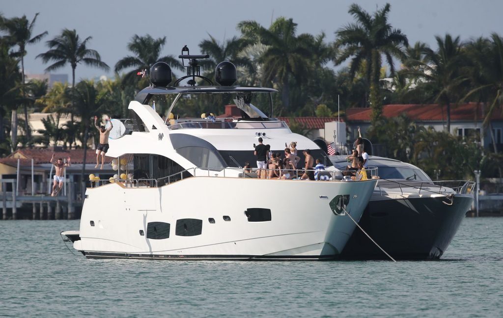 Models Jasmine Tookes (in bikini nero) e Shanina Shaik (in bikini blu) festeggiano il compleanno di Jasmine su uno yacht a Miami, 02/01/2019.