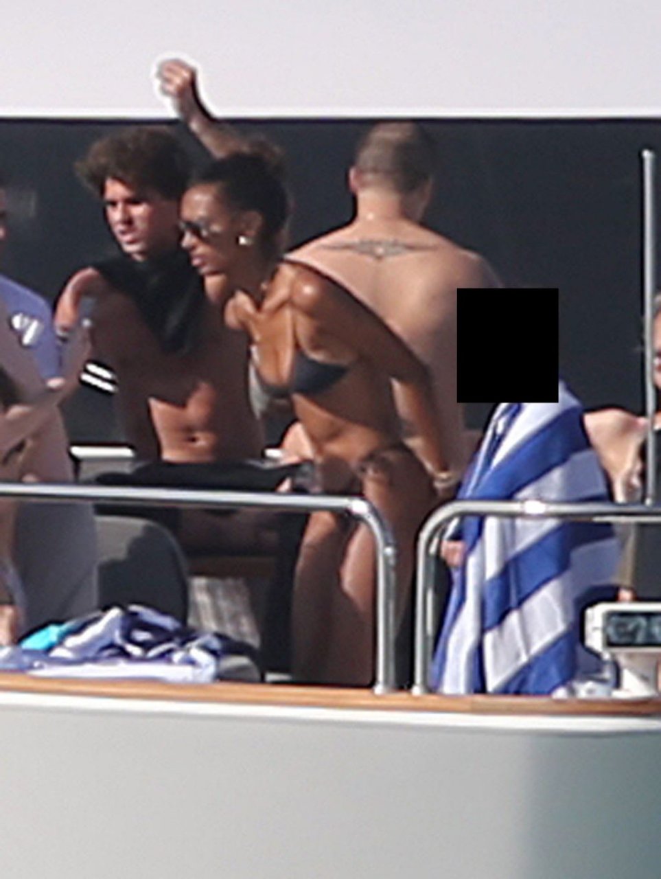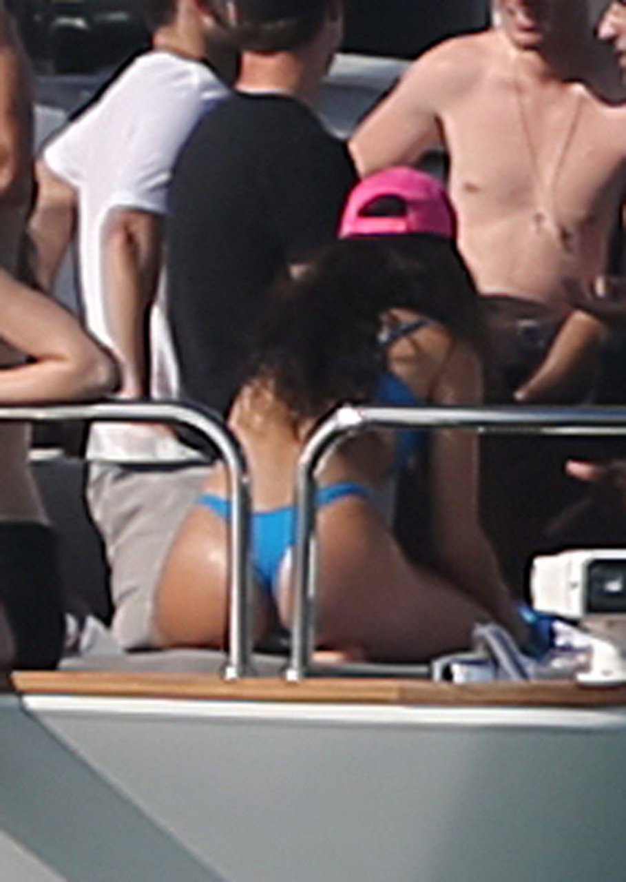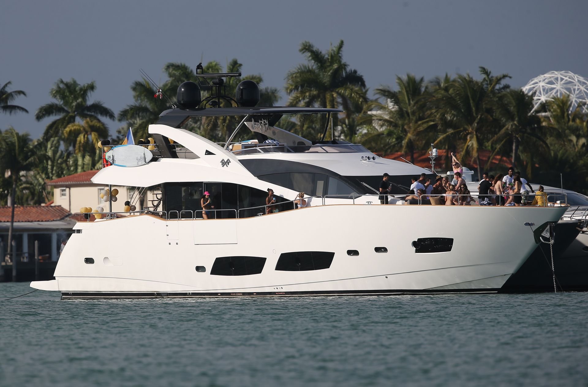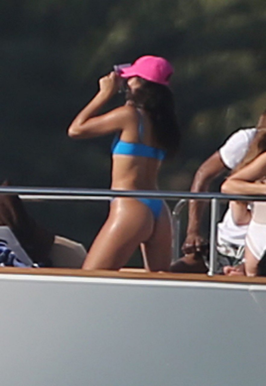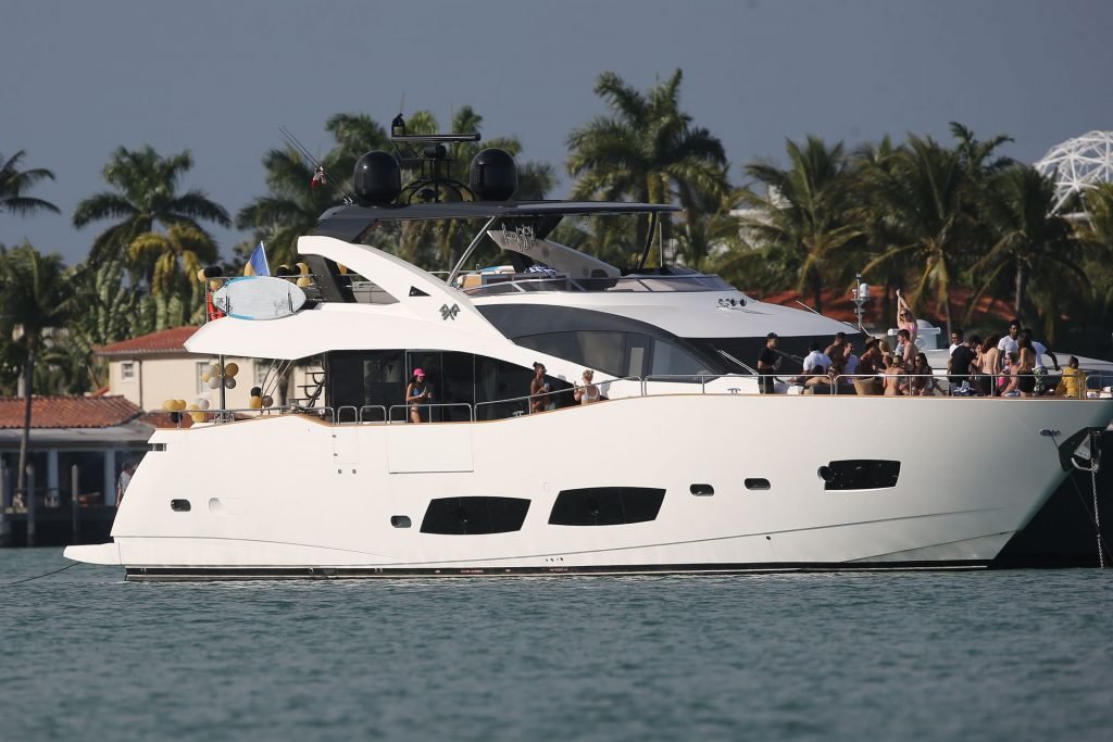 Models Jasmine Tookes (in bikini nero) e Shanina Shaik (in bikini blu) festeggiano il compleanno di Jasmine su uno yacht a Miami, 02/01/2019.