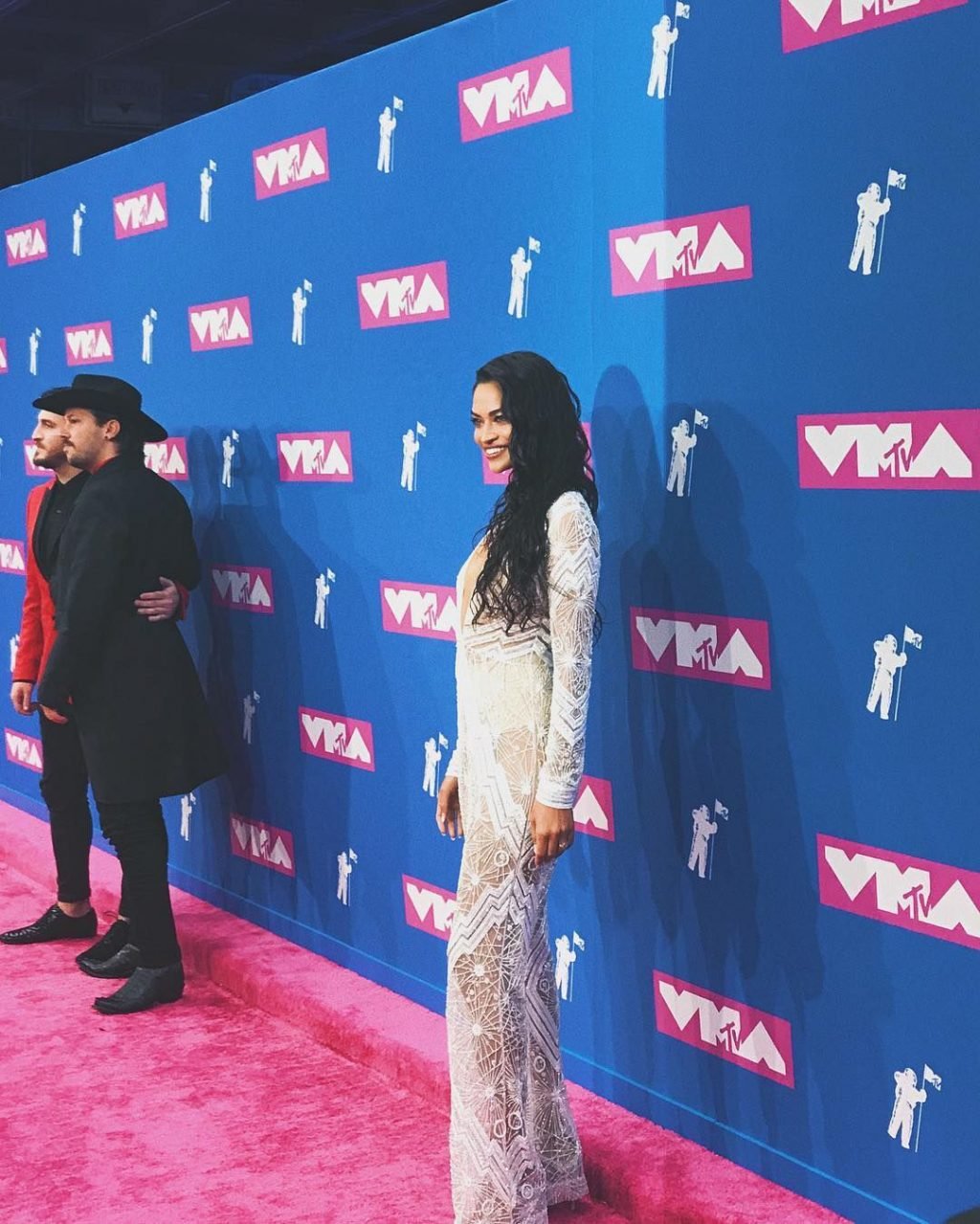 Tittyless Shanina Shaik partecipa agli MTV Video Music Awards 2018 a New York City, 20/08/2018. La modella di 27 anni indossava un abito bianco trasparente senza reggiseno.