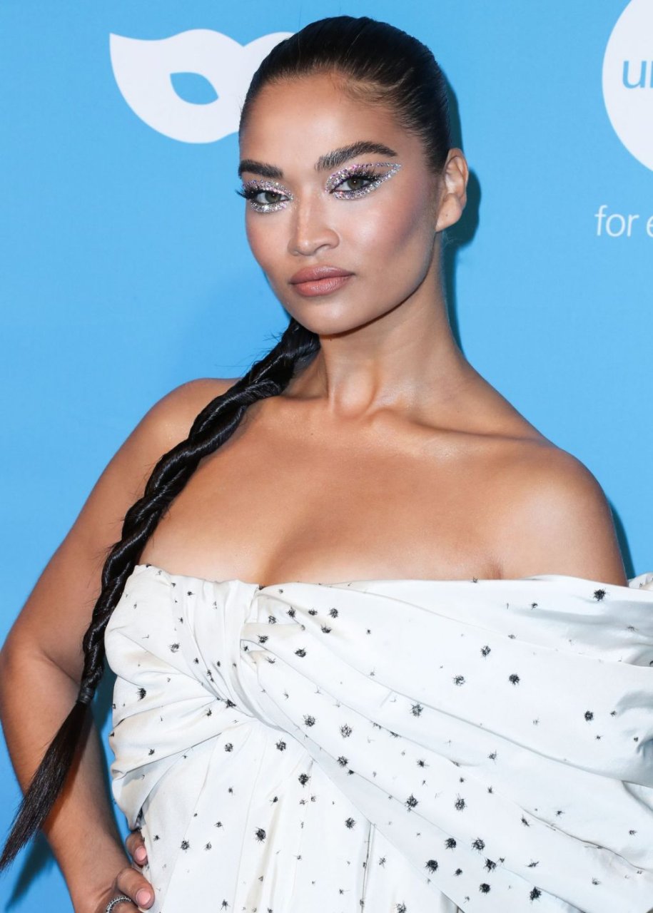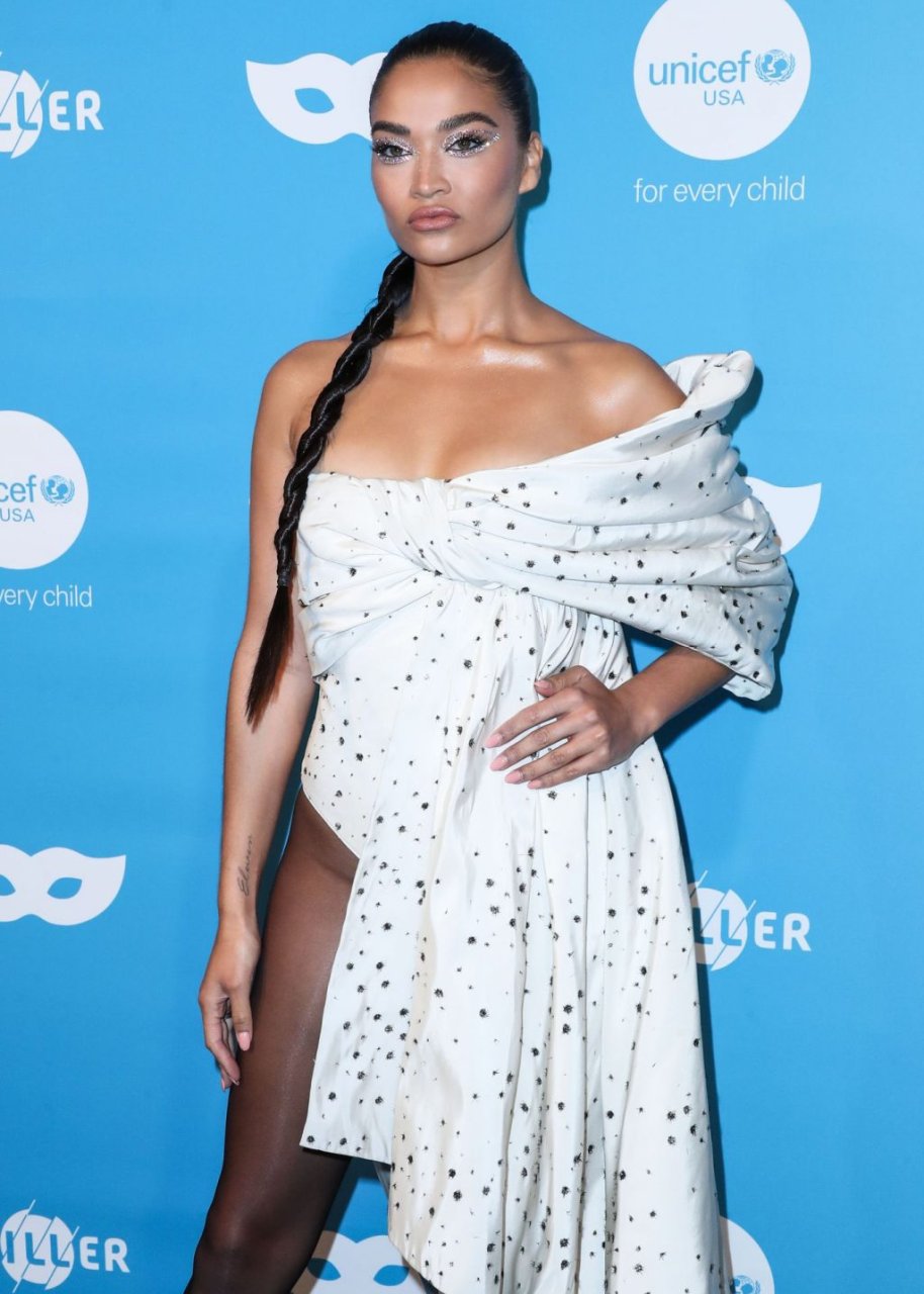 Model Shanina Shaik è stata fotografata con un vestito scollato alle spalle al 7° Annuale UNICEF Masquerade Ball 2019 tenutosi al Kimpton La Peer Hotel il 26 ottobre 2019 a West Hollywood, Los Angeles.