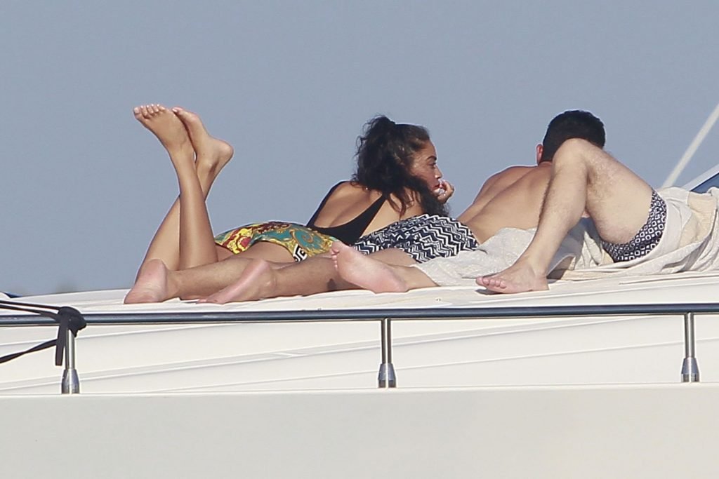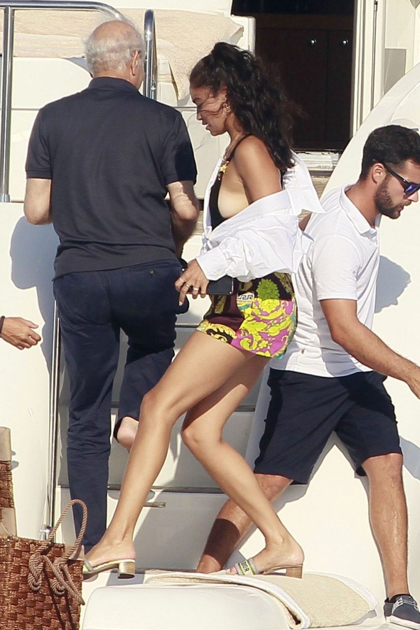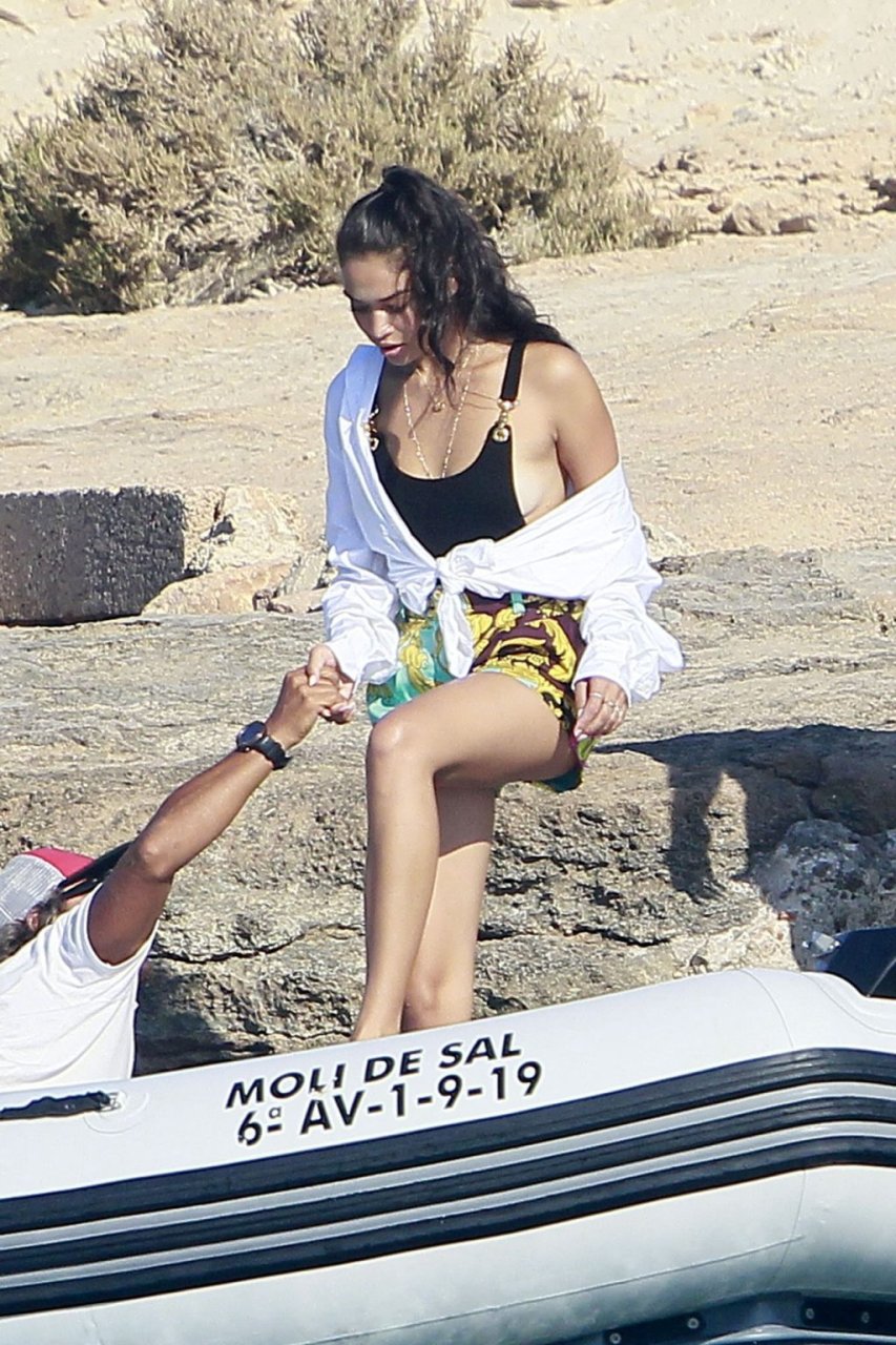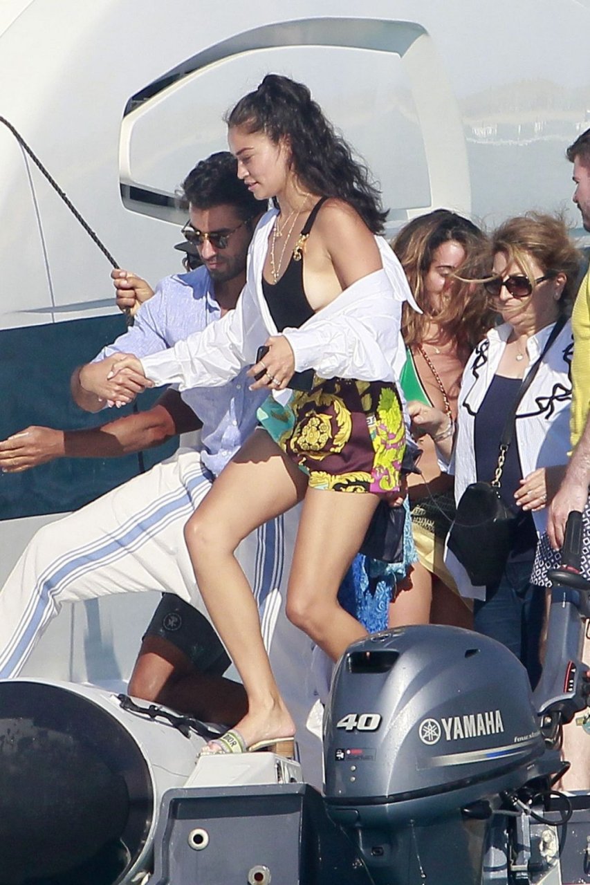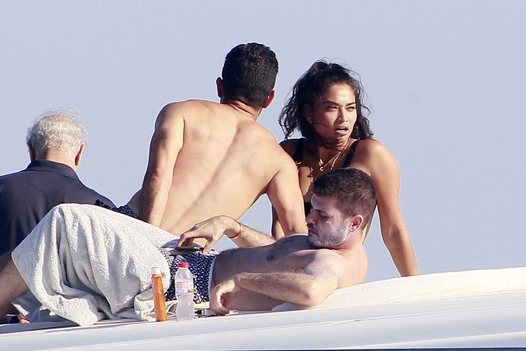La modella Shanina Shaik si gode un’altra giornata a bordo di uno yacht con amici e un uomo sconosciuto a Formentera, Spagna, 16/08/2019.