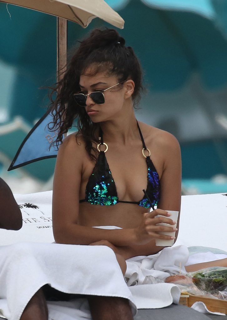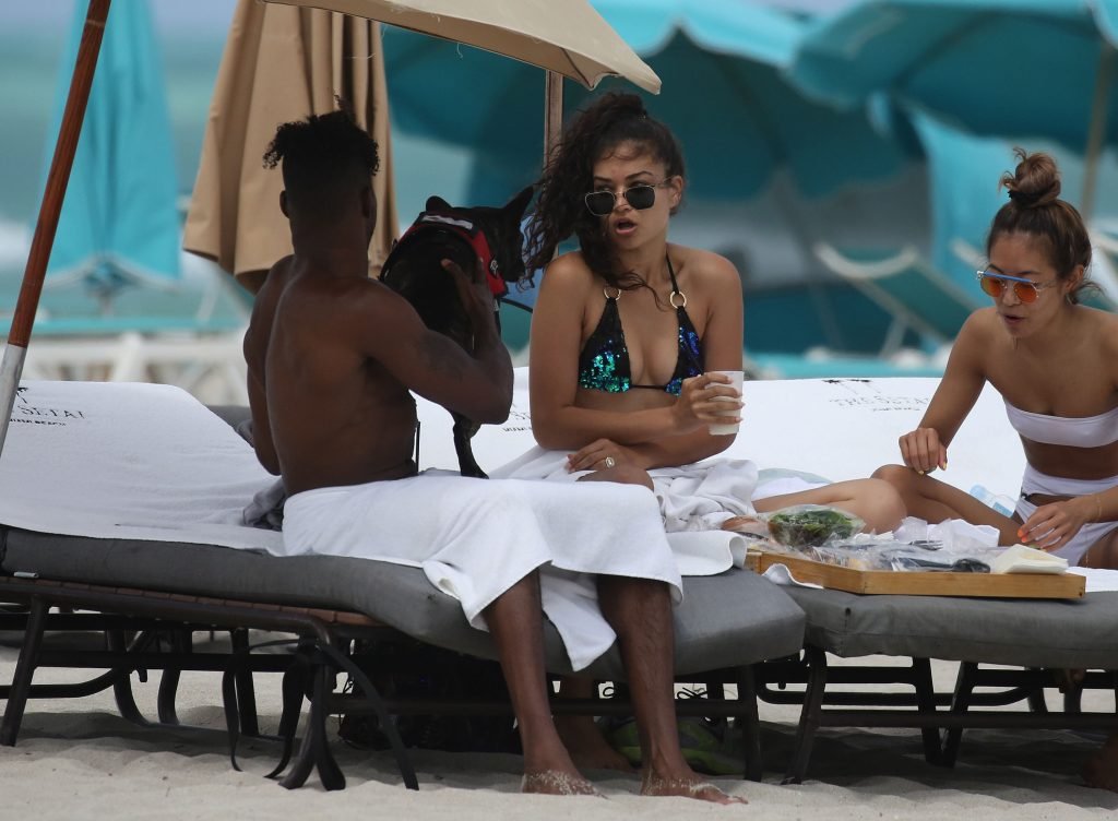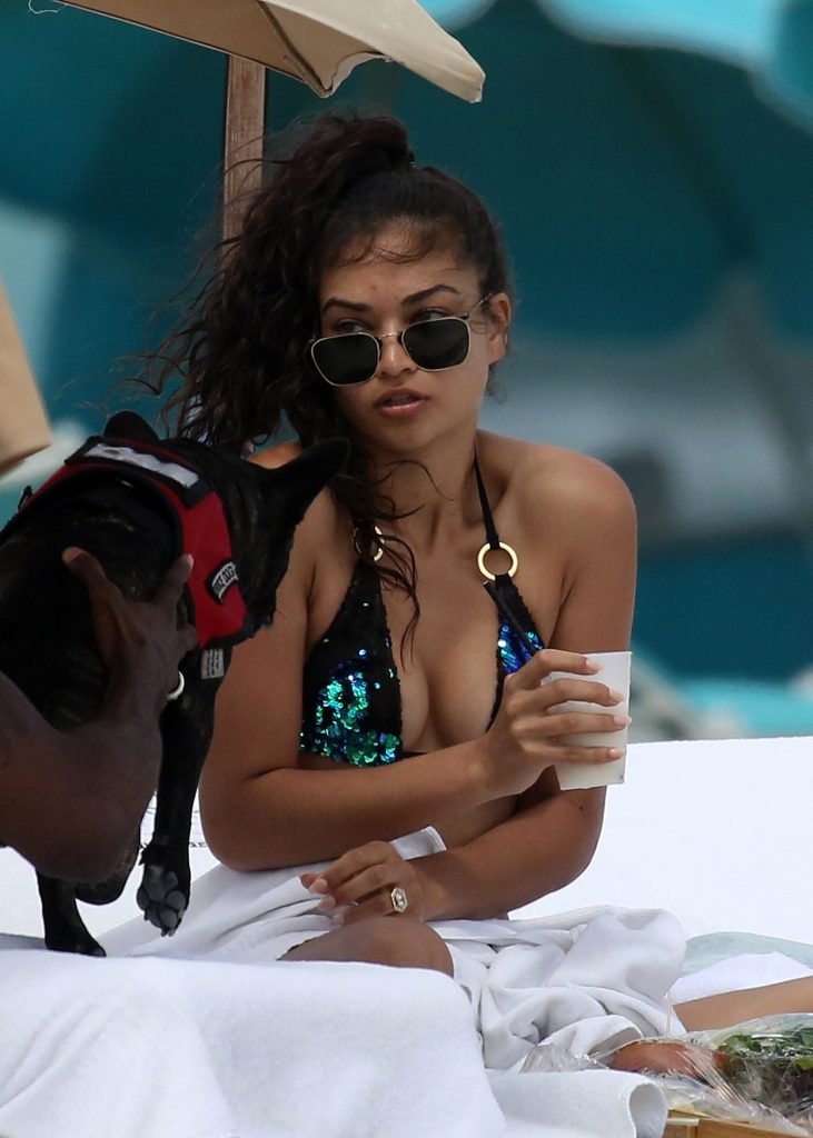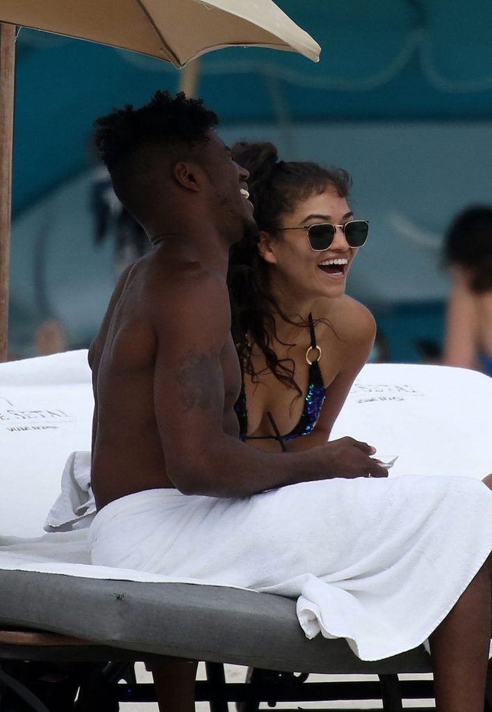 Neosposi Shanina Shaik e DJ Ruckus mostrano le loro fedi nuziali e molta tenerezza in pubblico sulla spiaggia di Miami, 01/05/2018. Shanina Shaik è una top model australiana di moda. Età: 27 anni.