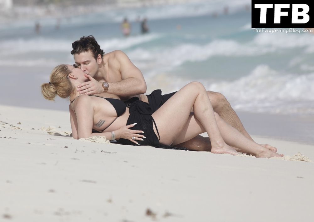 L’ex reginetta di bellezza sembrava innamorata persa mentre si scambiava baci sulla sabbia con il fidanzato Matthew Rondeau durante una vacanza romantica a Cancun.