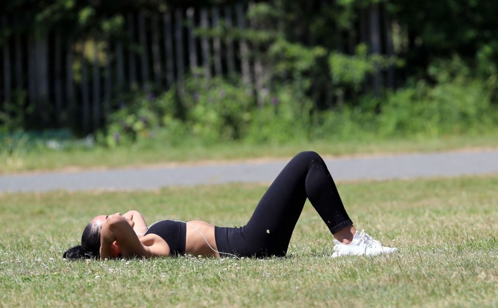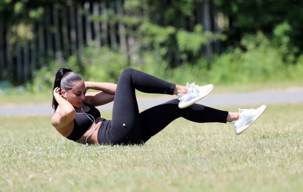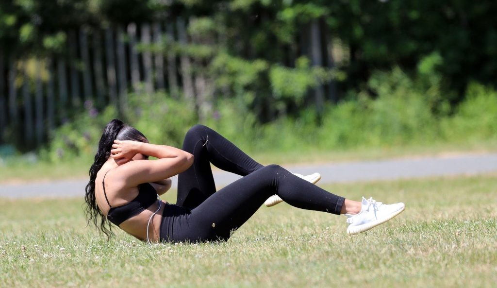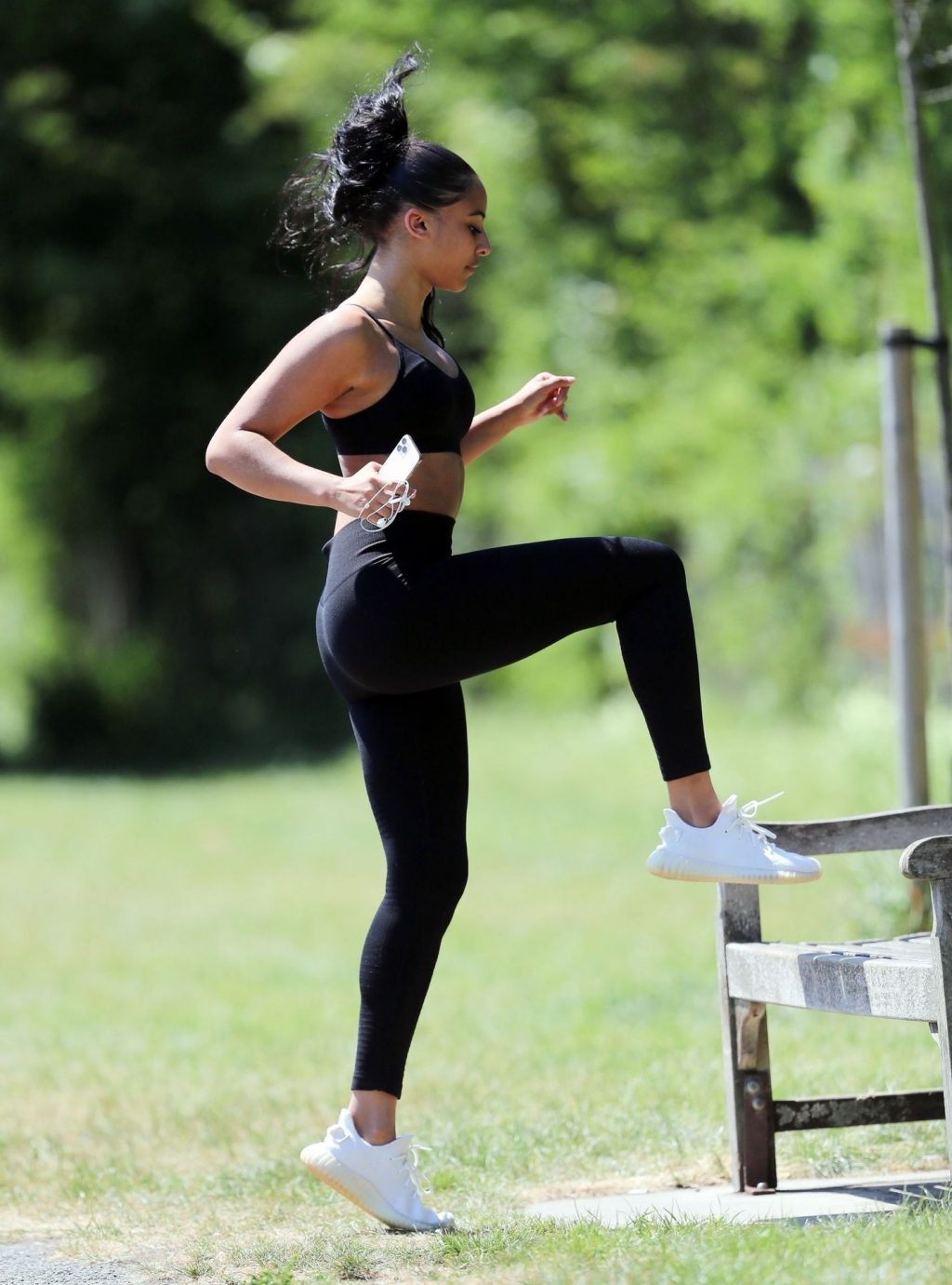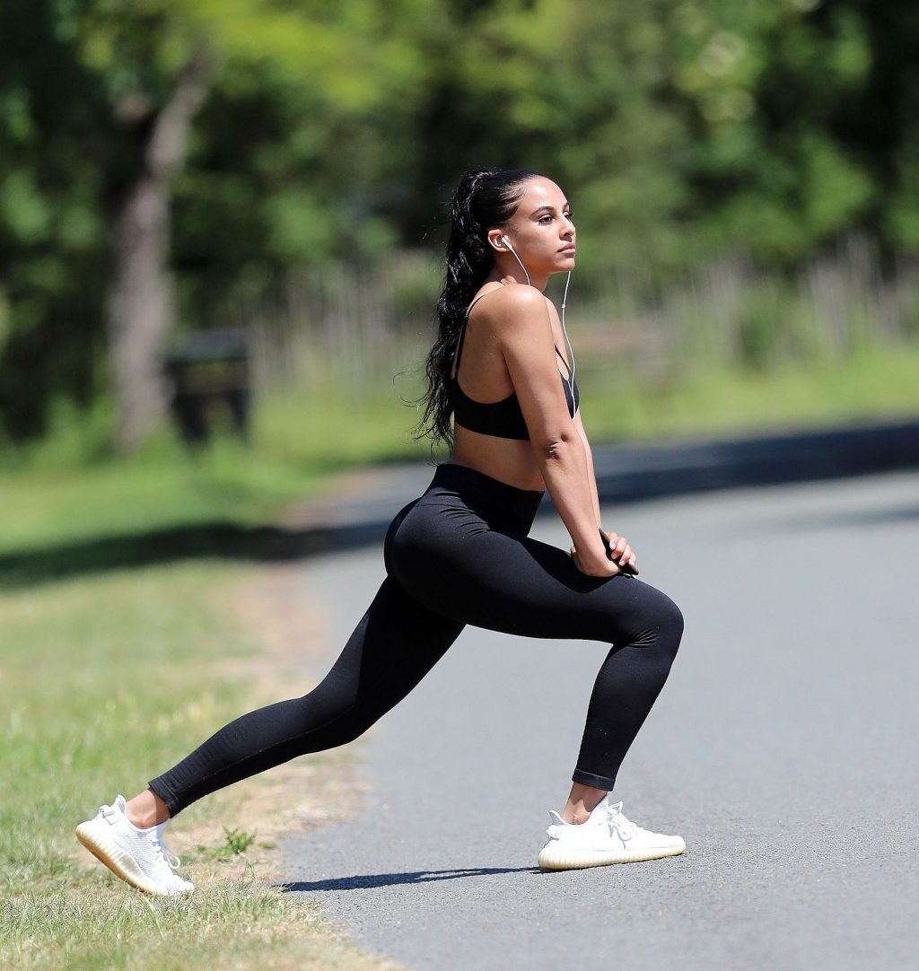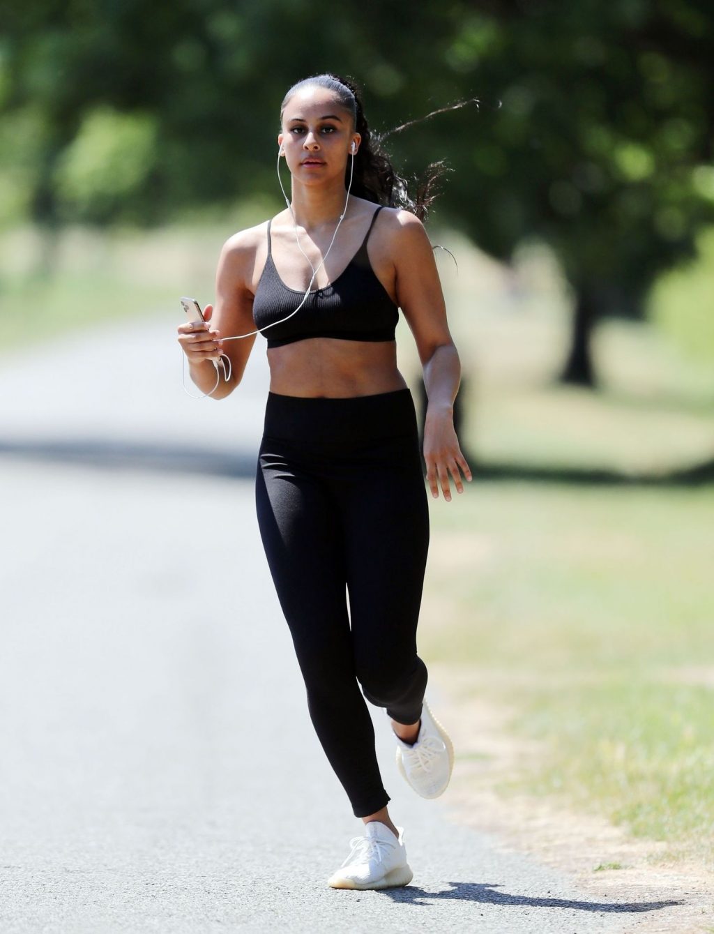 La super atletica modella Shari Halliday è stata fotografata mentre sudava sotto il caldo durante una passeggiata in un parco di Londra, 06/02/2020.