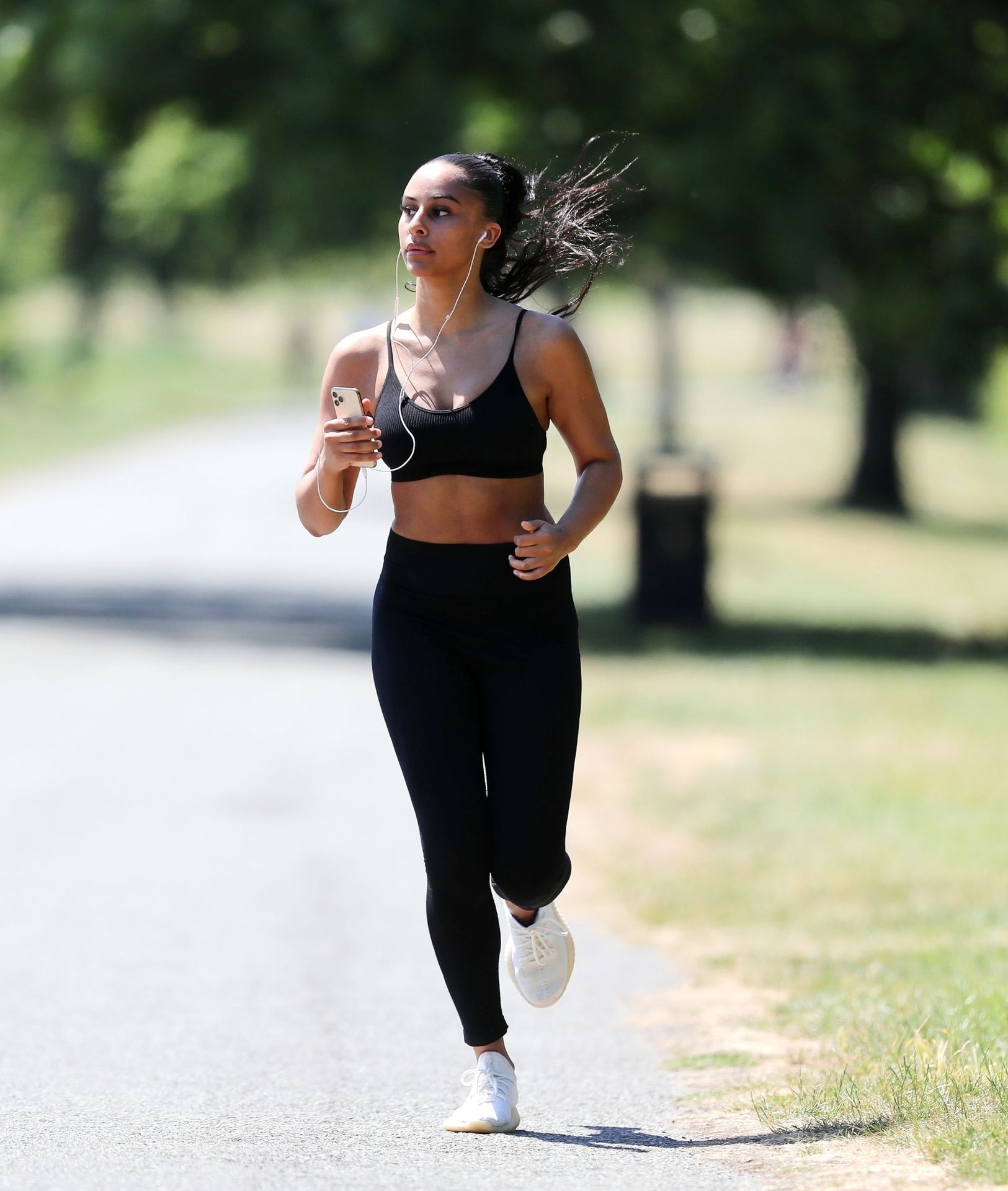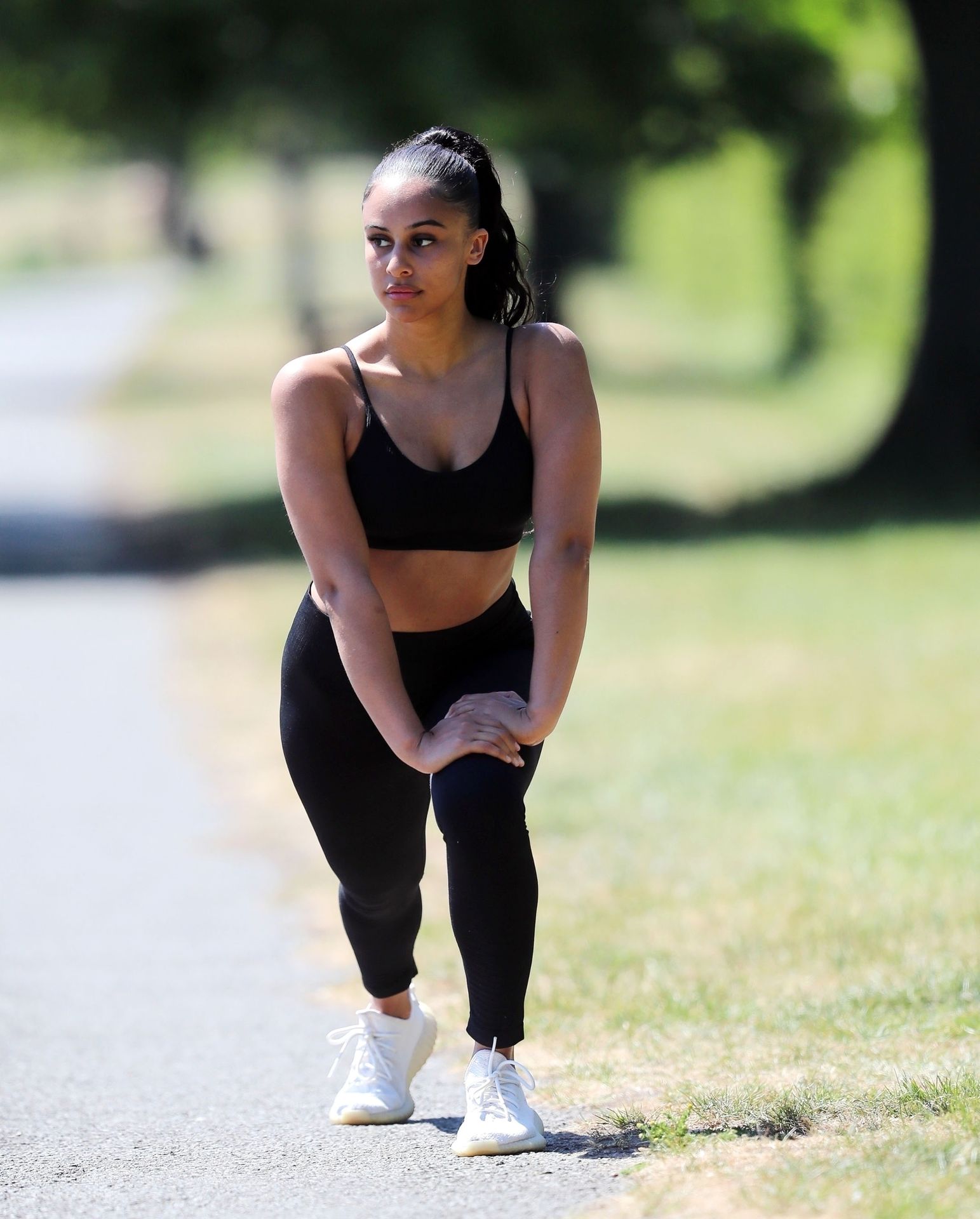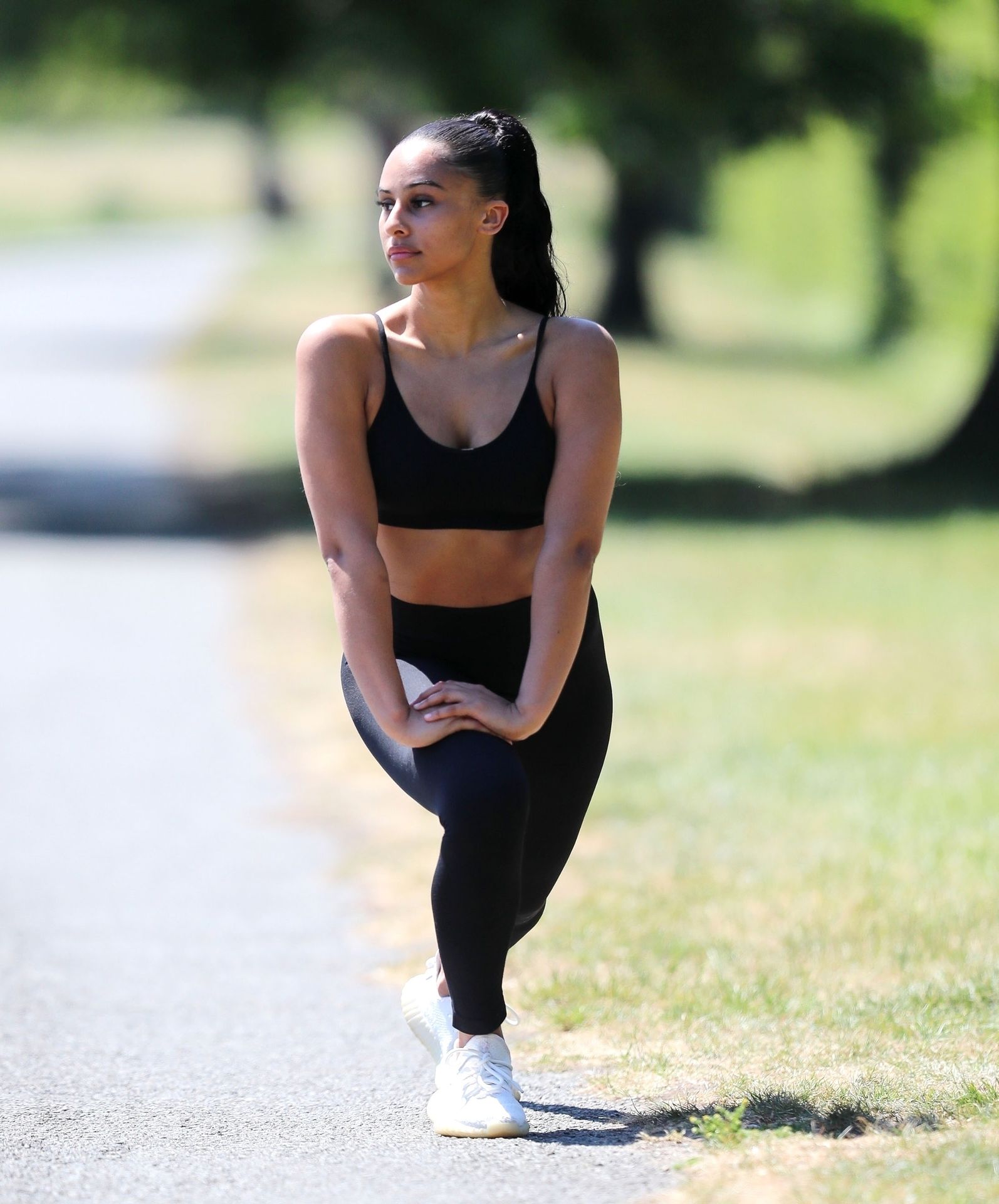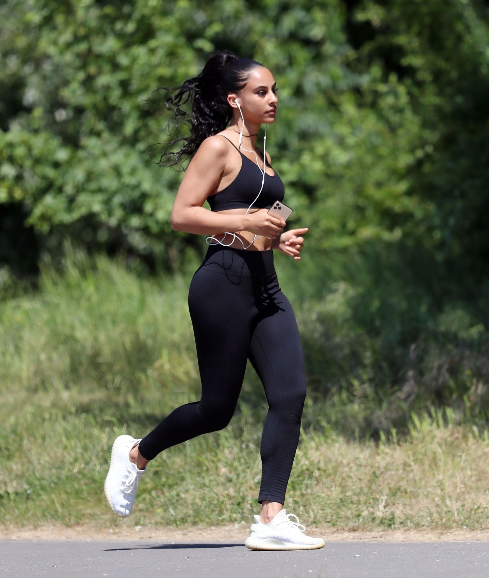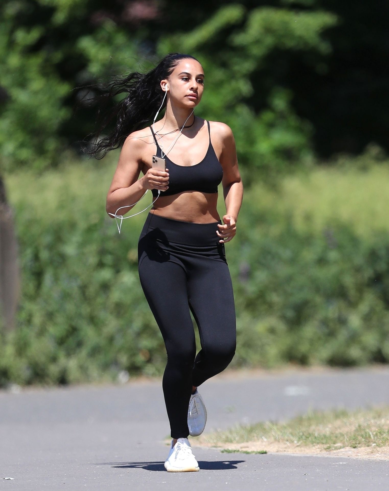La super atletica modella Shari Halliday è stata fotografata mentre sudava sotto il caldo durante una passeggiata in un parco di Londra, 06/02/2020.
