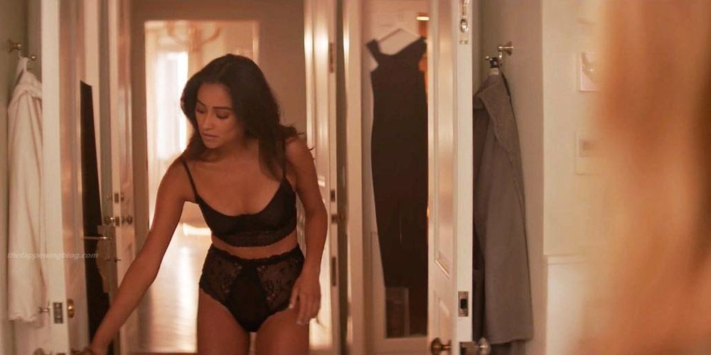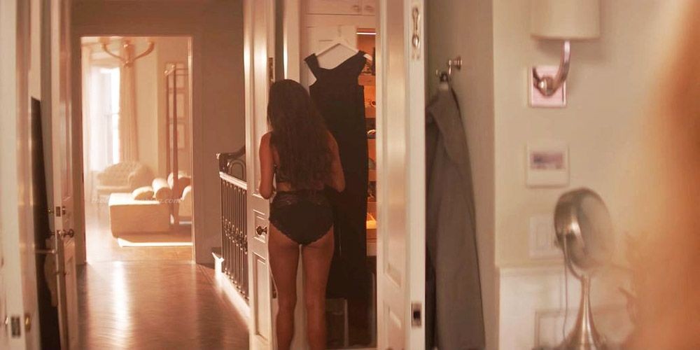 Then we have Shay Mitchell standing in high heels as she removes her dress. It reveals her ass in black panties and a longline bra while talking with Elizabeth Lail, whose nudes and sex scenes we also have! Mitchell walks over to her purse and grabs her checkbook, and then walks over to Elizabeth.