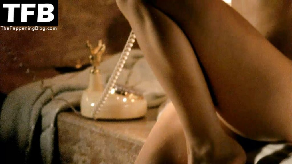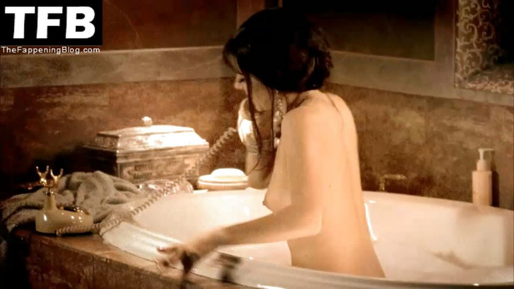 Sienna Miller è seduta nuda mentre parla al telefono, appoggiata sul bordo di una vasca da bagno. Poi si gira, mostrando il sedere mentre entra nell’acqua, dove la vediamo topless mentre continua a chiacchierare al telefono.
