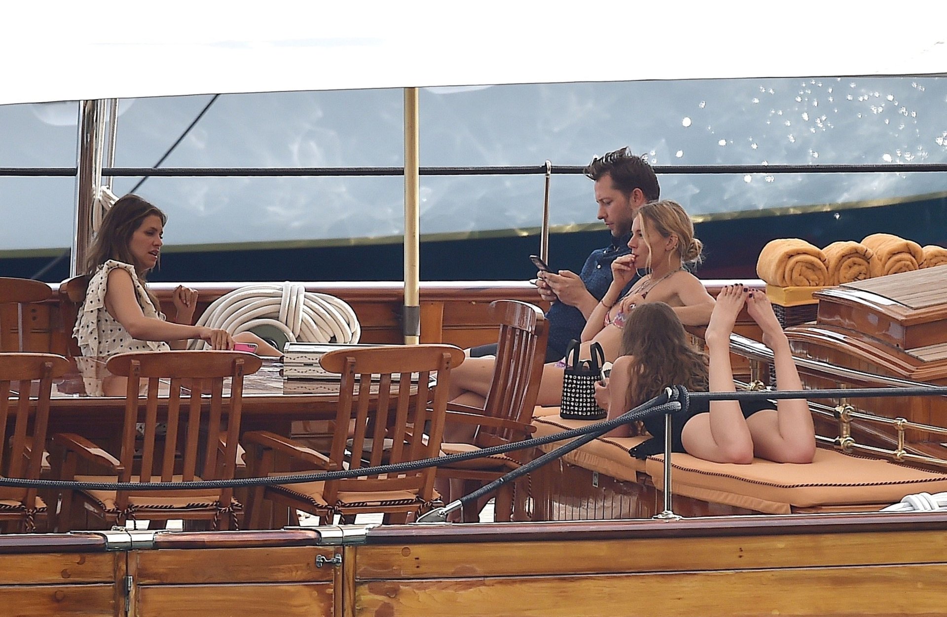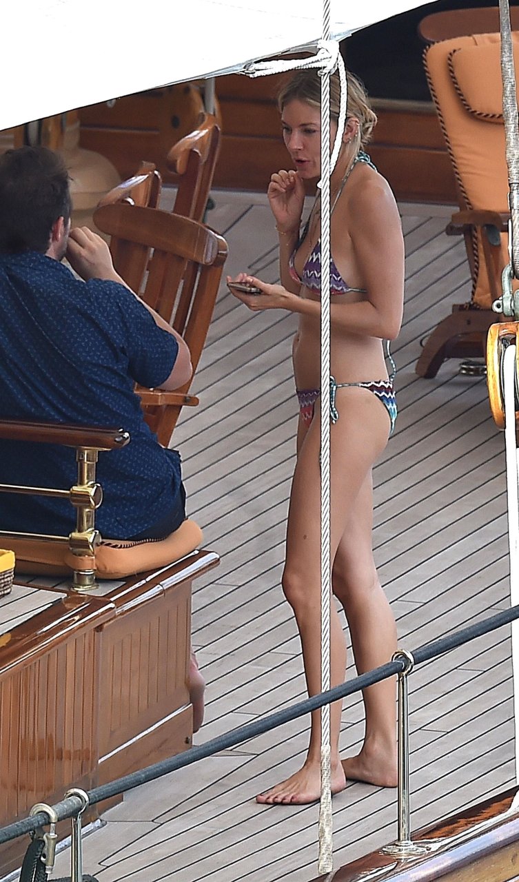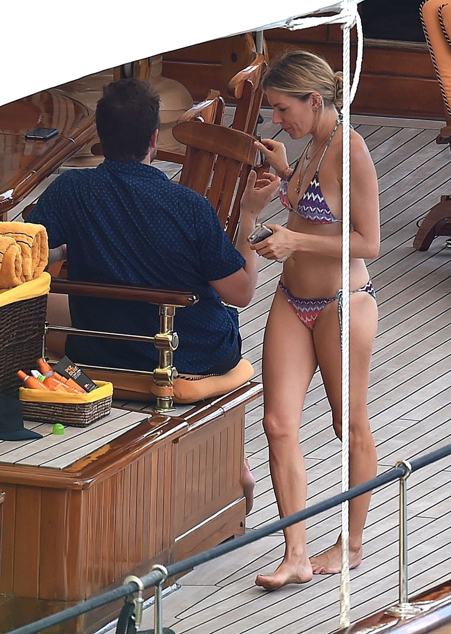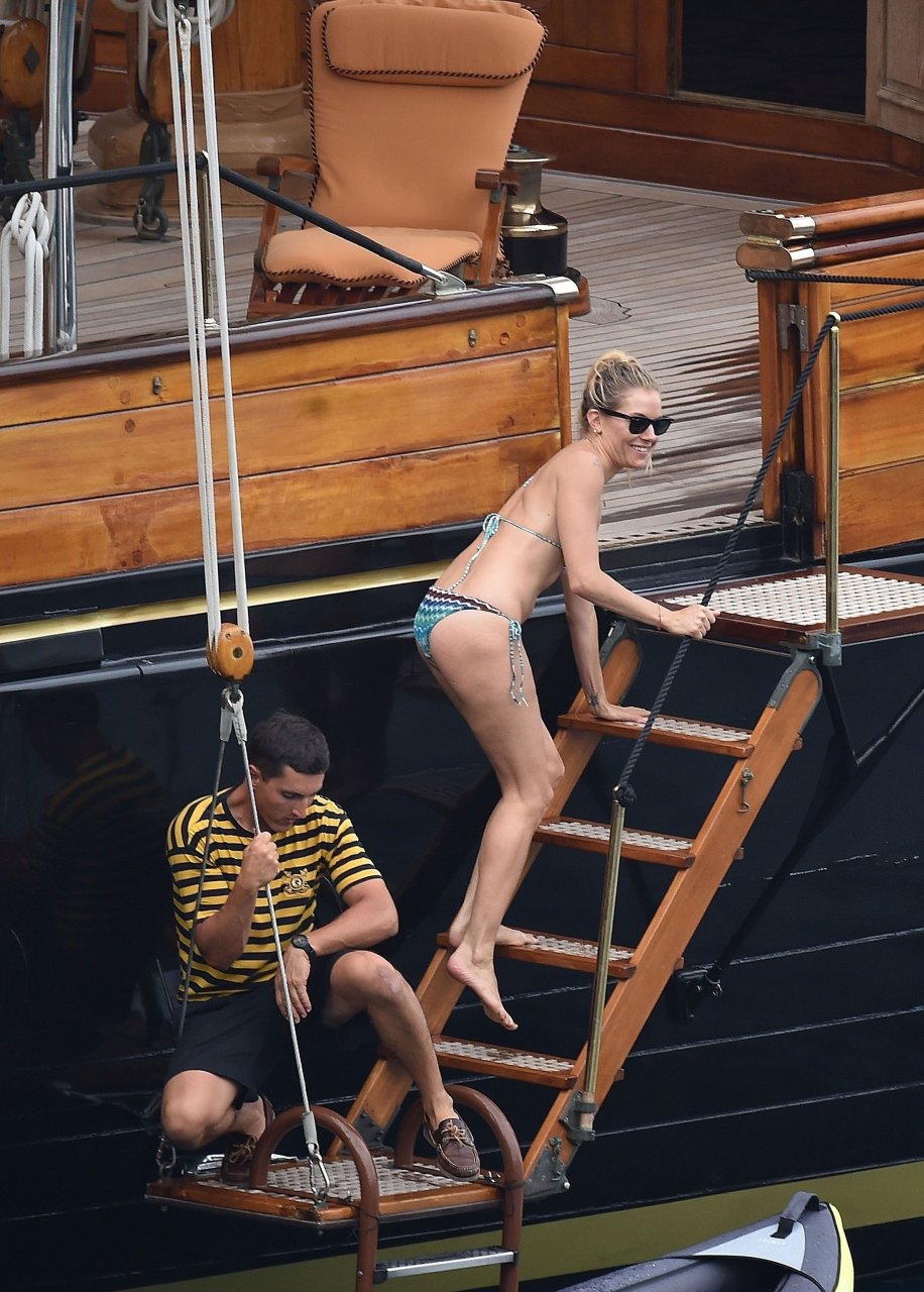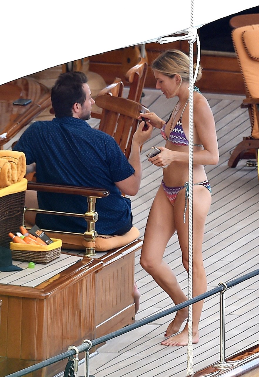 L’attrice britannica Sienna Miller (36) è stata avvistata nel suo bikini succinto, godendosi il sole estivo a bordo della sua barca, 22/07/2018. Sienna ha fatto scalpore mentre remava nel mare ed è stata accompagnata in vacanza da Dasha Zhukova, ex moglie del proprietario russo del Chelsea FC Roman Abramovich, e da Darek Blasberg a Portofino, Italia.