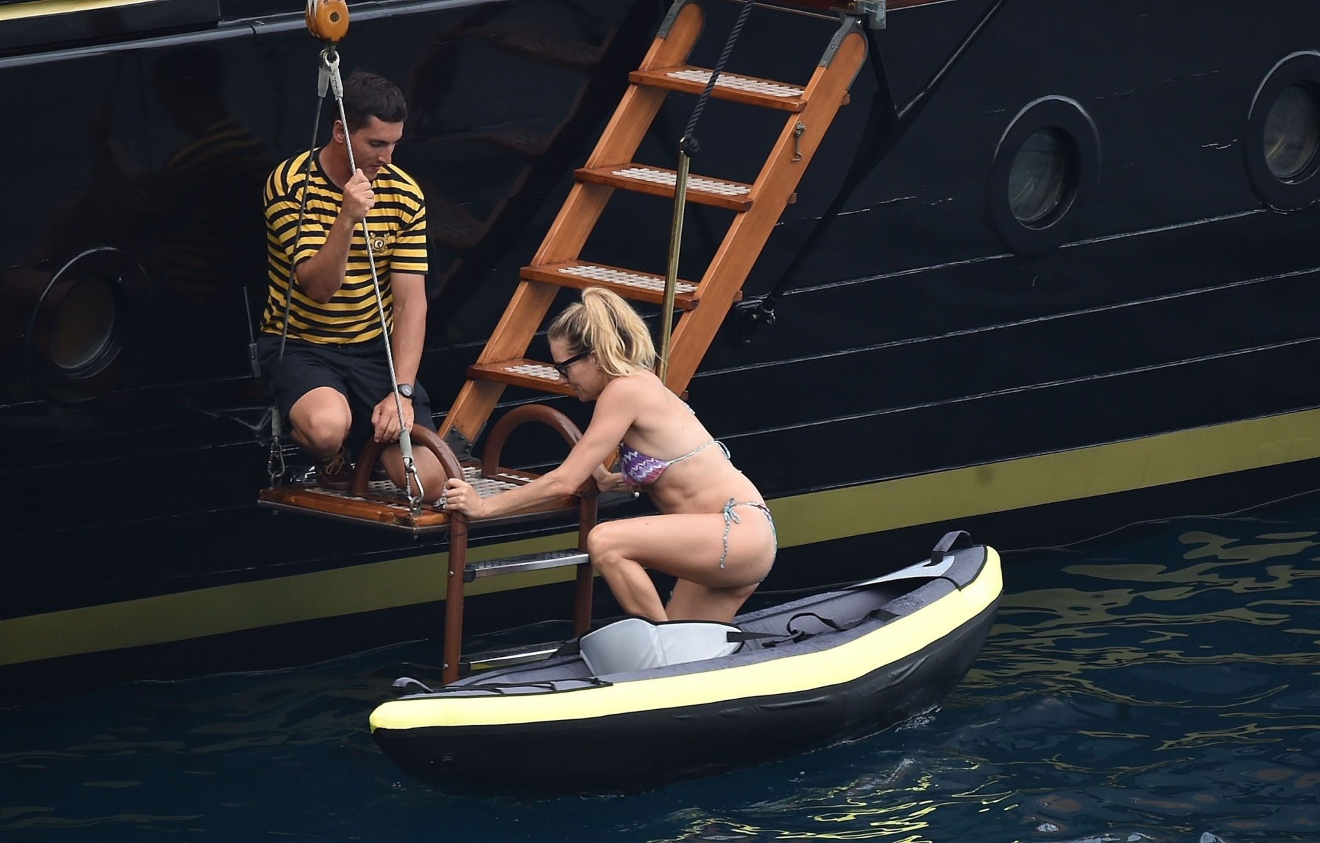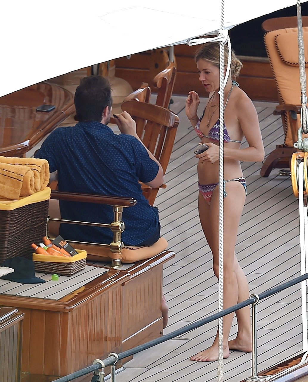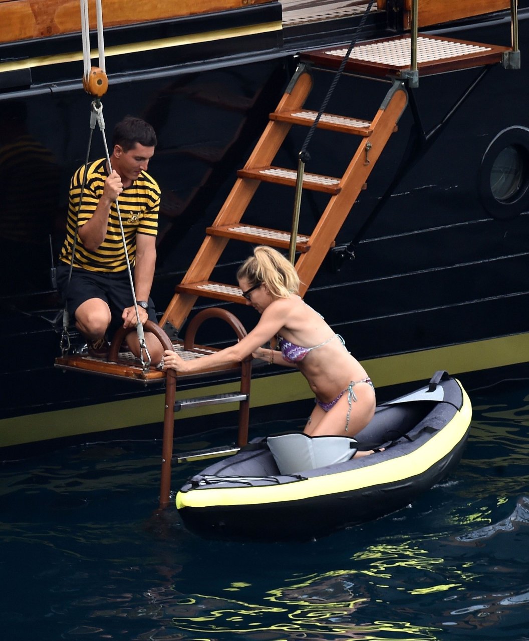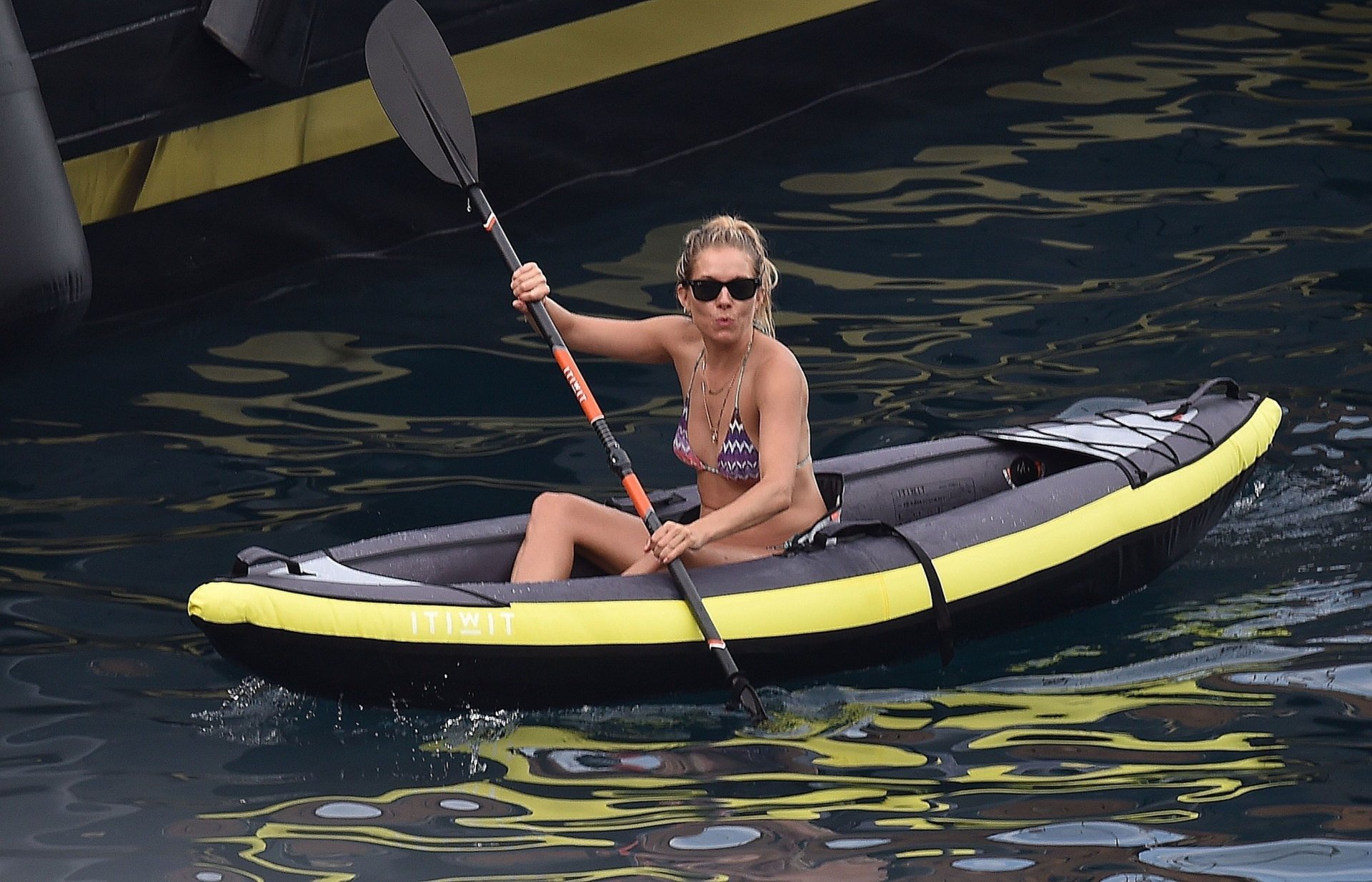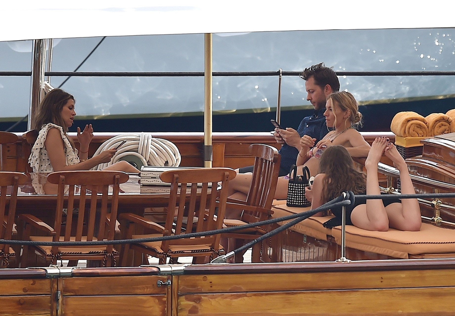 L’attrice britannica Sienna Miller (36) è stata avvistata nel suo bikini succinto, godendosi il sole estivo a bordo della sua barca, 22/07/2018. Sienna ha fatto scalpore mentre remava nel mare ed è stata accompagnata in vacanza da Dasha Zhukova, ex moglie del proprietario russo del Chelsea FC Roman Abramovich, e da Darek Blasberg a Portofino, Italia.