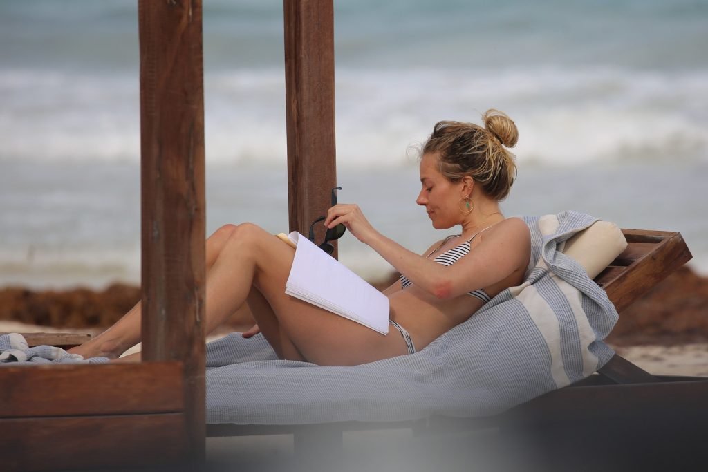 Sienna Miller è stata vista mentre si godeva le onde in bikini sulla spiaggia di Cancun, Messico, 04/02/2017. Sienna Miller è un’attrice inglese (Alfie (2004)), modella e stilista di moda. Età: 35 (nata il 28 dicembre 1981).