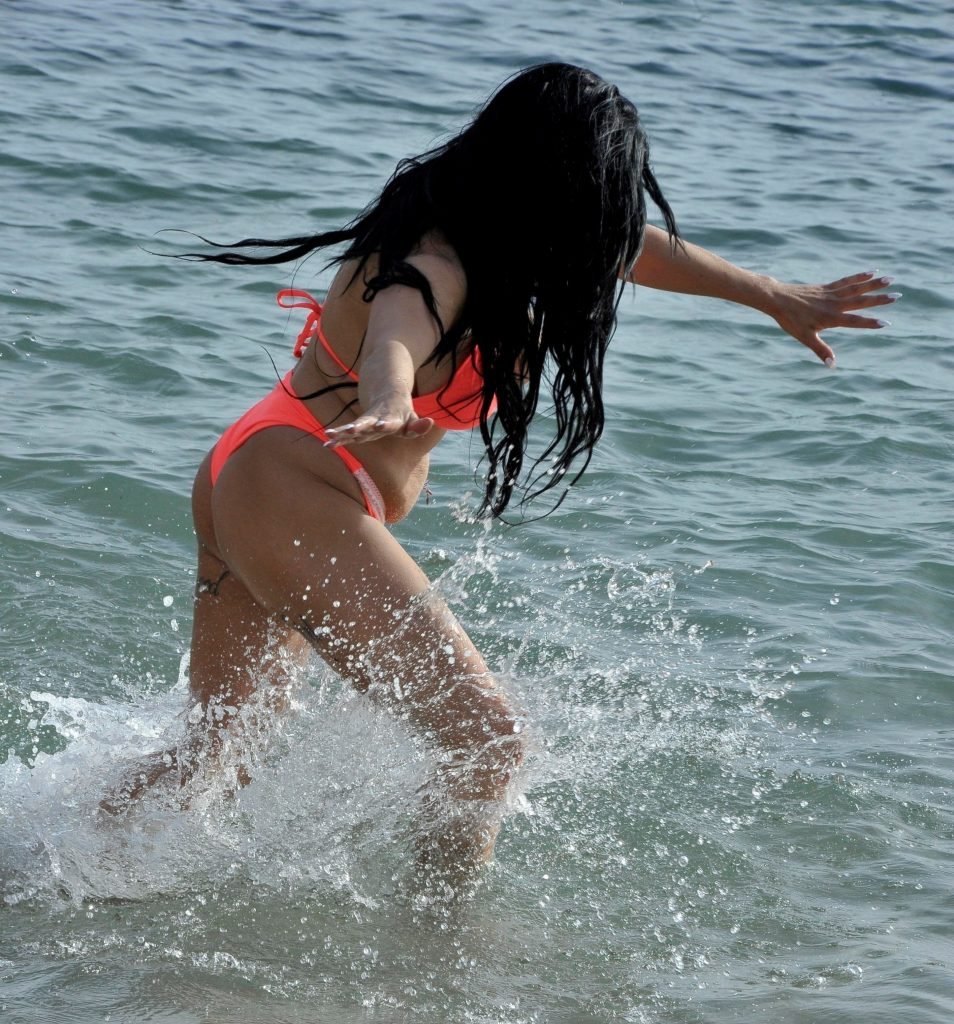 Concorrente di Big Brother e cantante Simone Reed fotografata durante una fuga in Spagna dopo aver speso oltre £30.000 in chirurgia estetica, 15/04/2018. La bruna ha posato con un nuovo bikini per i paparazzi.