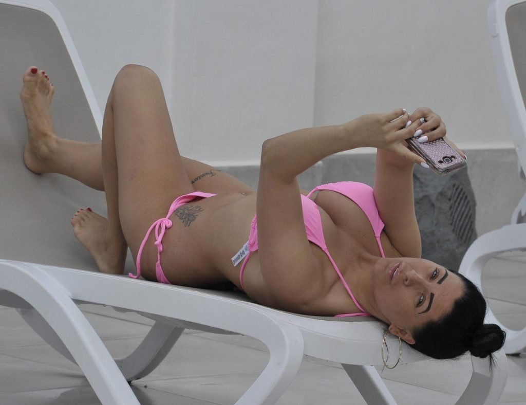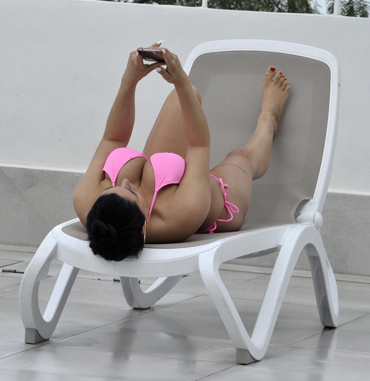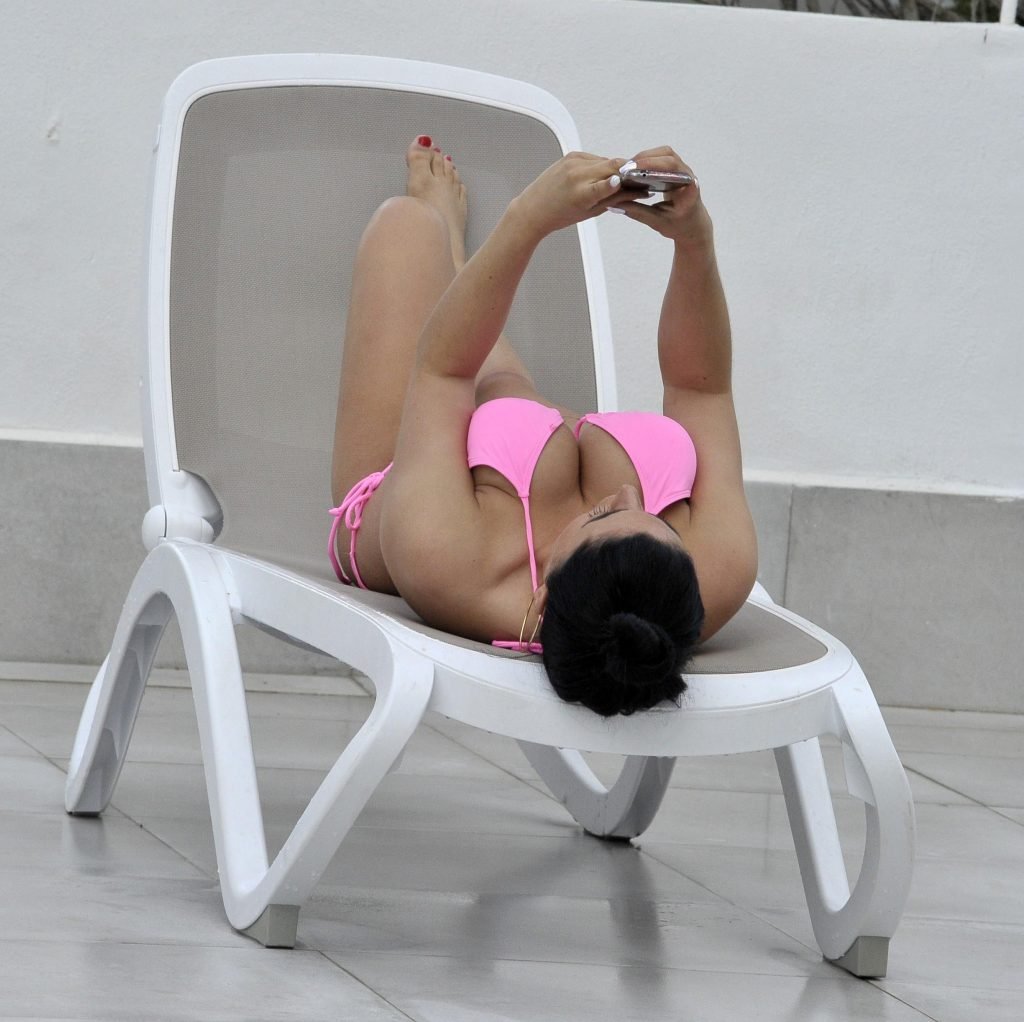 Reality star Simone Reed (29) è stata vista indossare un bikini rosa e ha avuto qualche difficoltà a contenere tutte le sue grazie mentre posava a bordo piscina in Spagna, 25/05/2018.