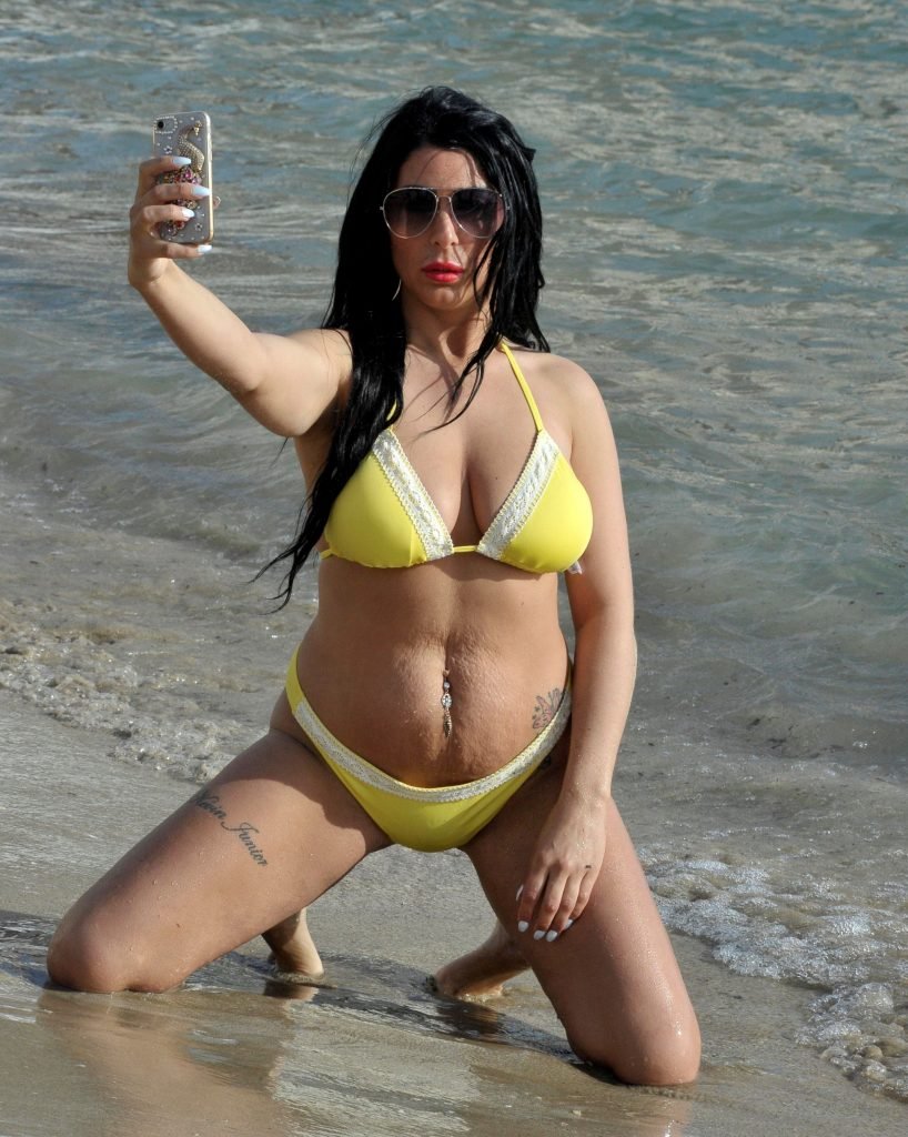 Reality TV star, Big Brother UK personality Simone Reed mostra le sue pancake e la pancia cattiva sulla spiaggia. La modella glamour di 28 anni si spoglia al sole in una giornata di sole in Spagna, 27/04/2018.