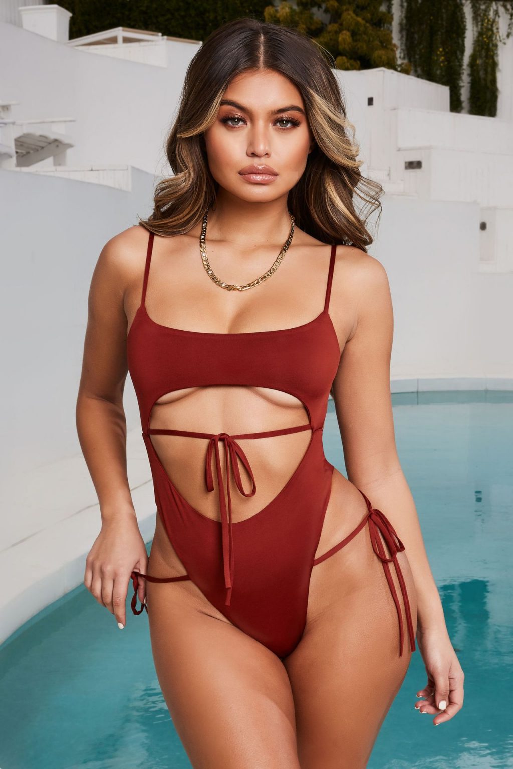 Model Sofia Jamora ha presentato un’altra sexy collezione OhPolly nel marzo 2019. La giovane ragazza ha mostrato le sue curve in vari costumi da bagno a bordo piscina.