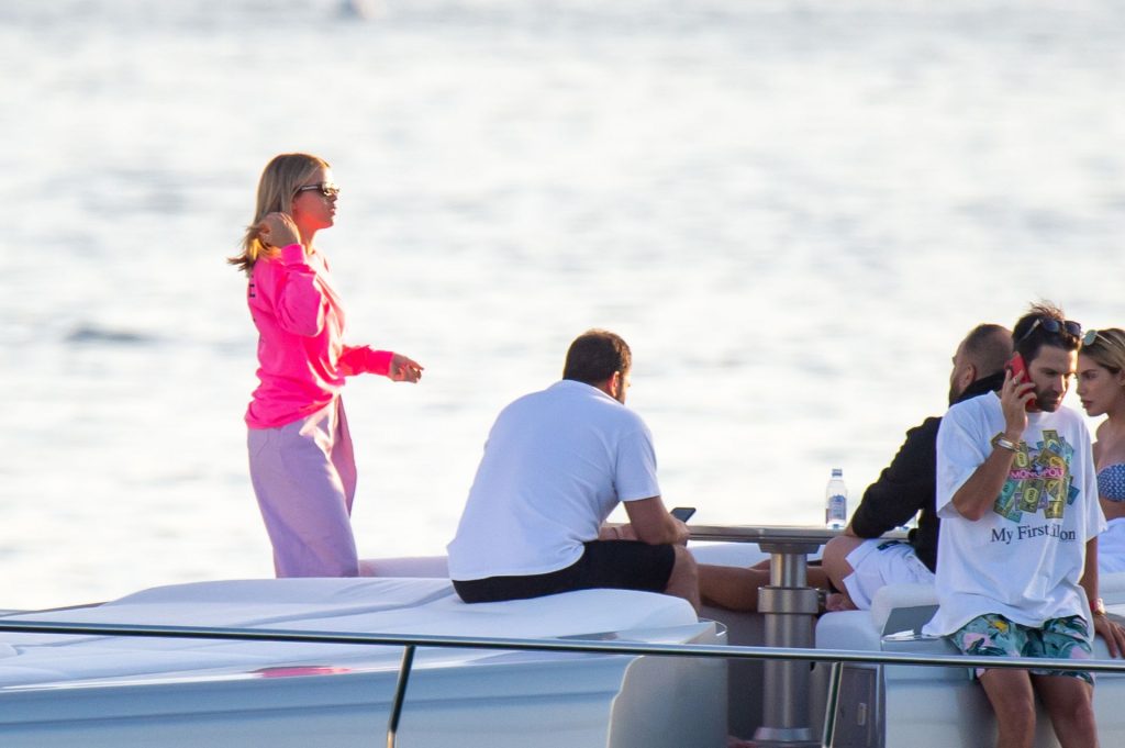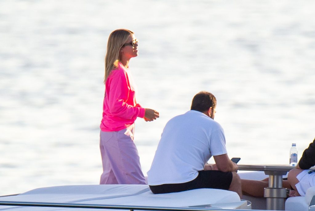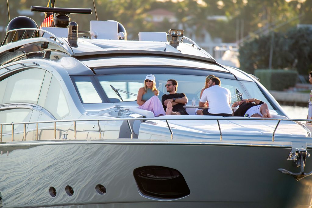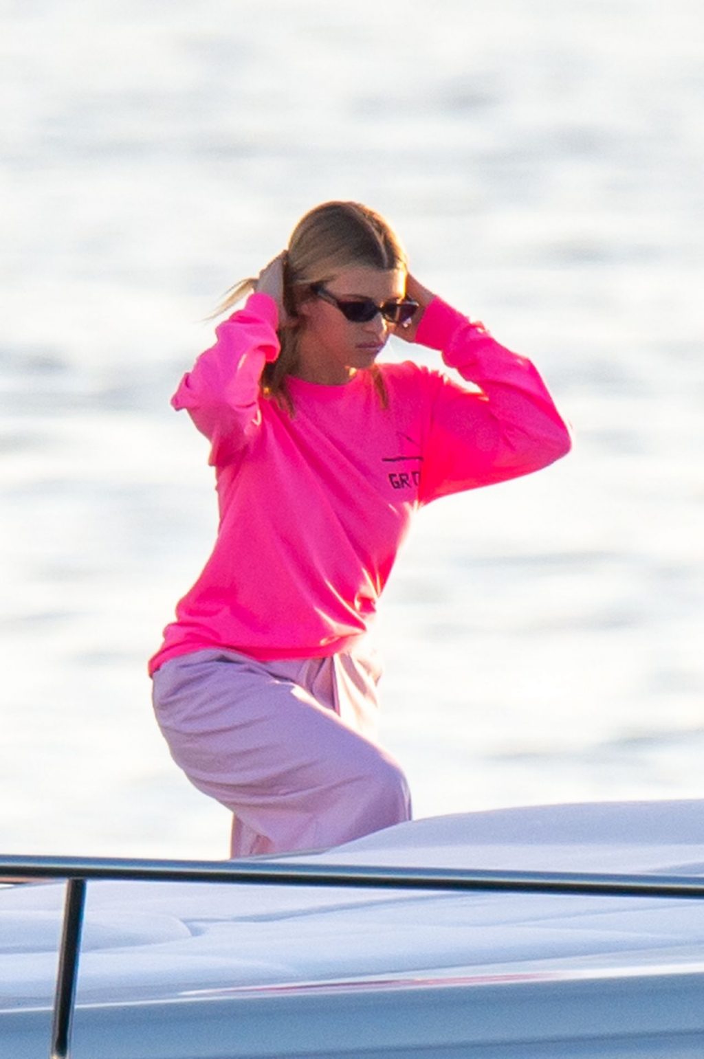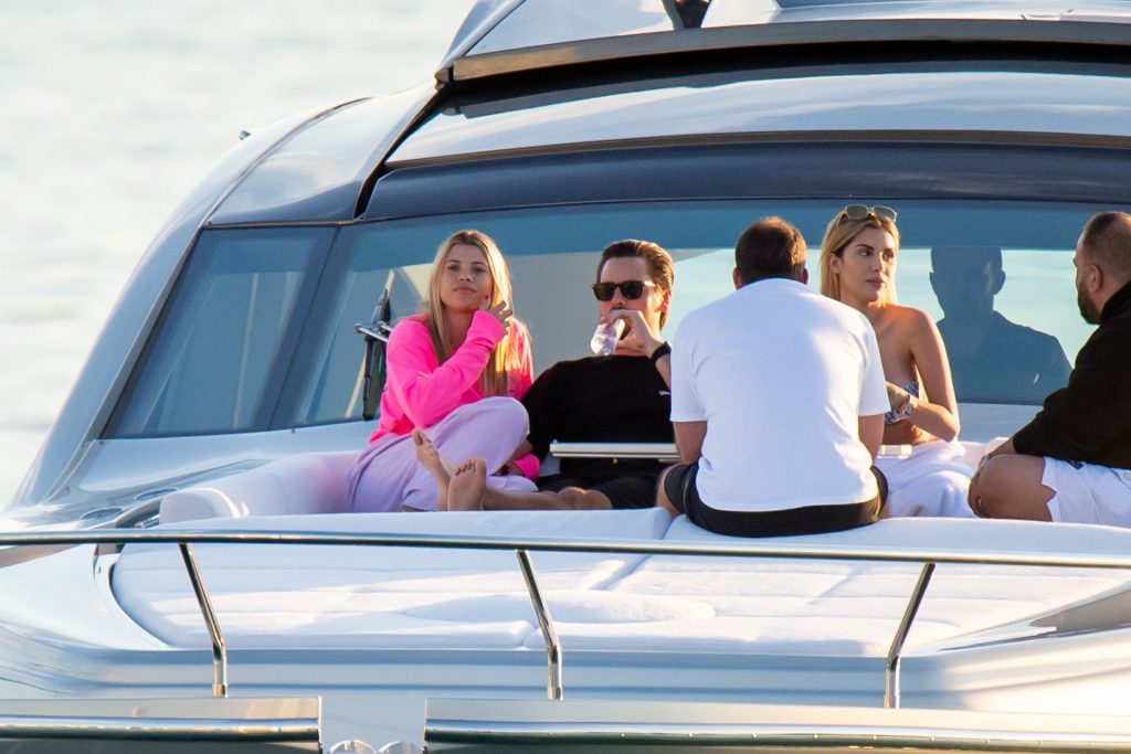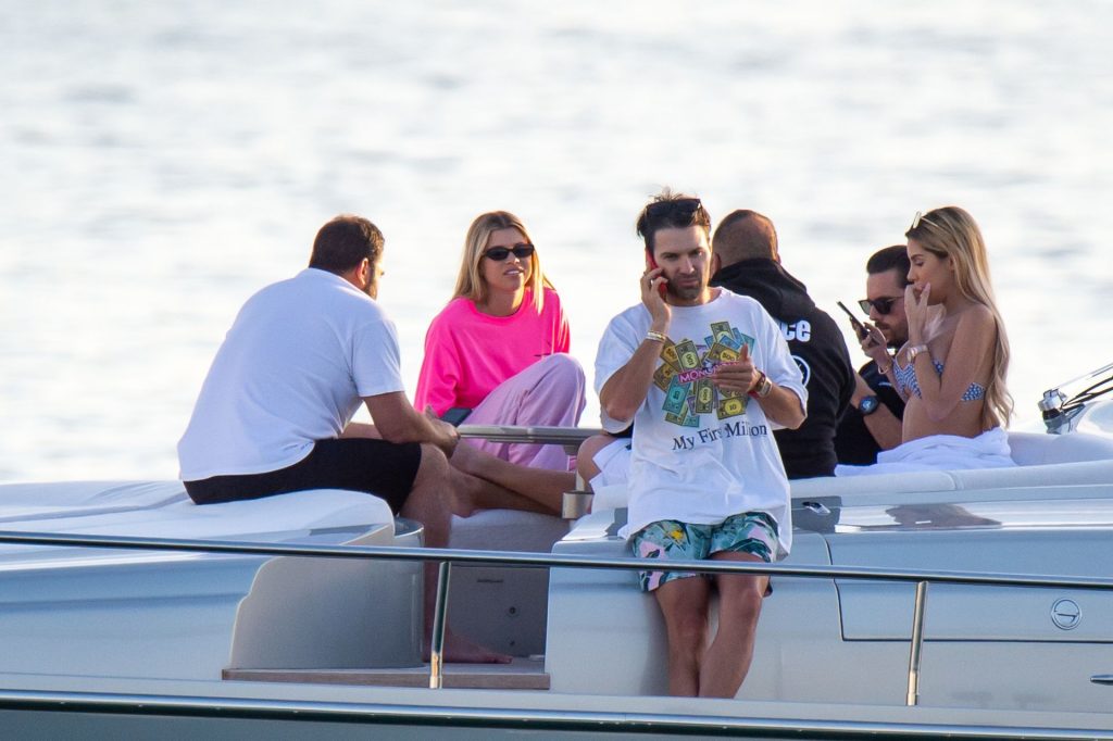 Sofia Richie e Scott Disick si coccolano su una nave da crociera di lusso a Miami, dove Sofia Richie indossa due outfit diversi. Sofia Richie è stata vista per la prima volta con una maglia a maniche lunghe rosa acceso con la scritta “beware of sharks” sulla schiena, che fa parte della collezione di merchandise Groot di Dave Grutman. La bionda bellezza poi ha cambiato abito indossando un top grigio senza maniche e ha messo il suo cappellino da baseball bianco. La coppia era sullo yacht di lusso con amici, incluso Dave Grutman, a cui appartiene la barca.
