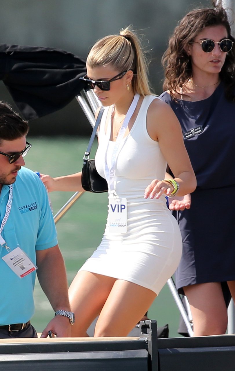 Sofia Richie (20) mostra le sue curve in un minidress attillato mentre lei e il fidanzato Scott Disick partecipano a un super yacht show VIP a Miami, 17/02/2019.