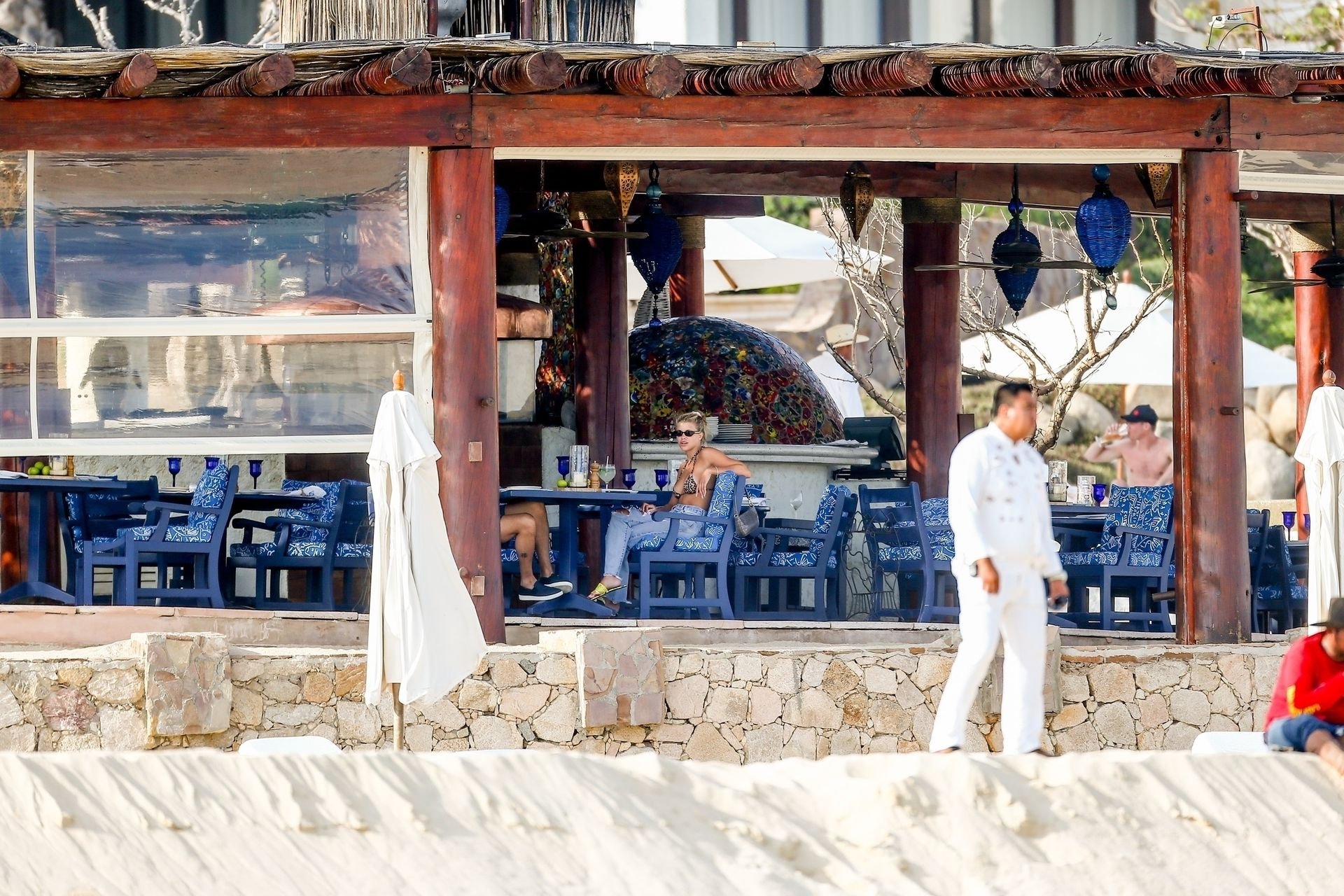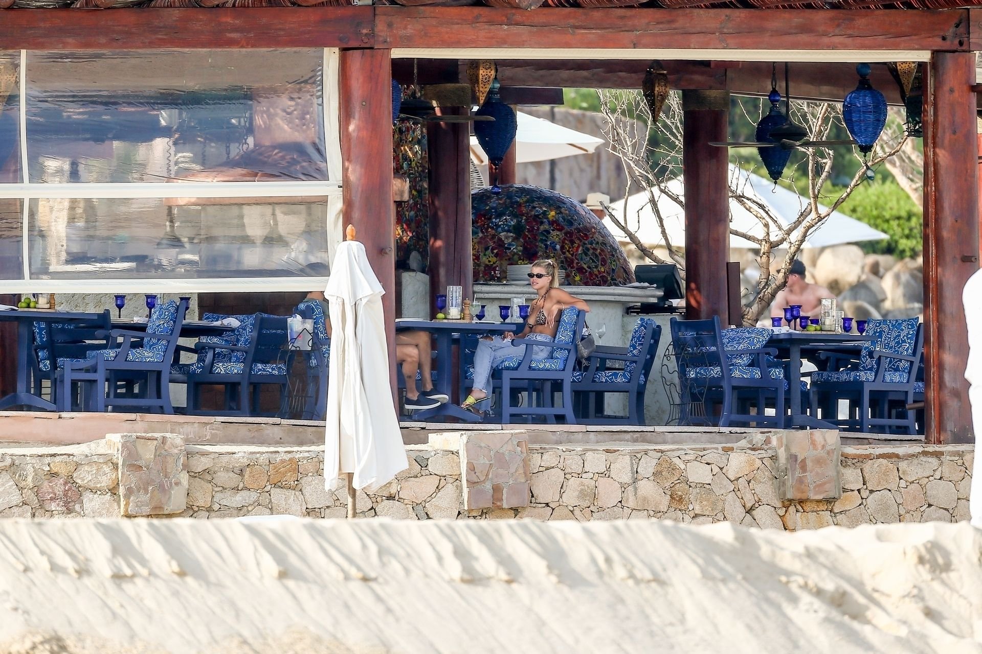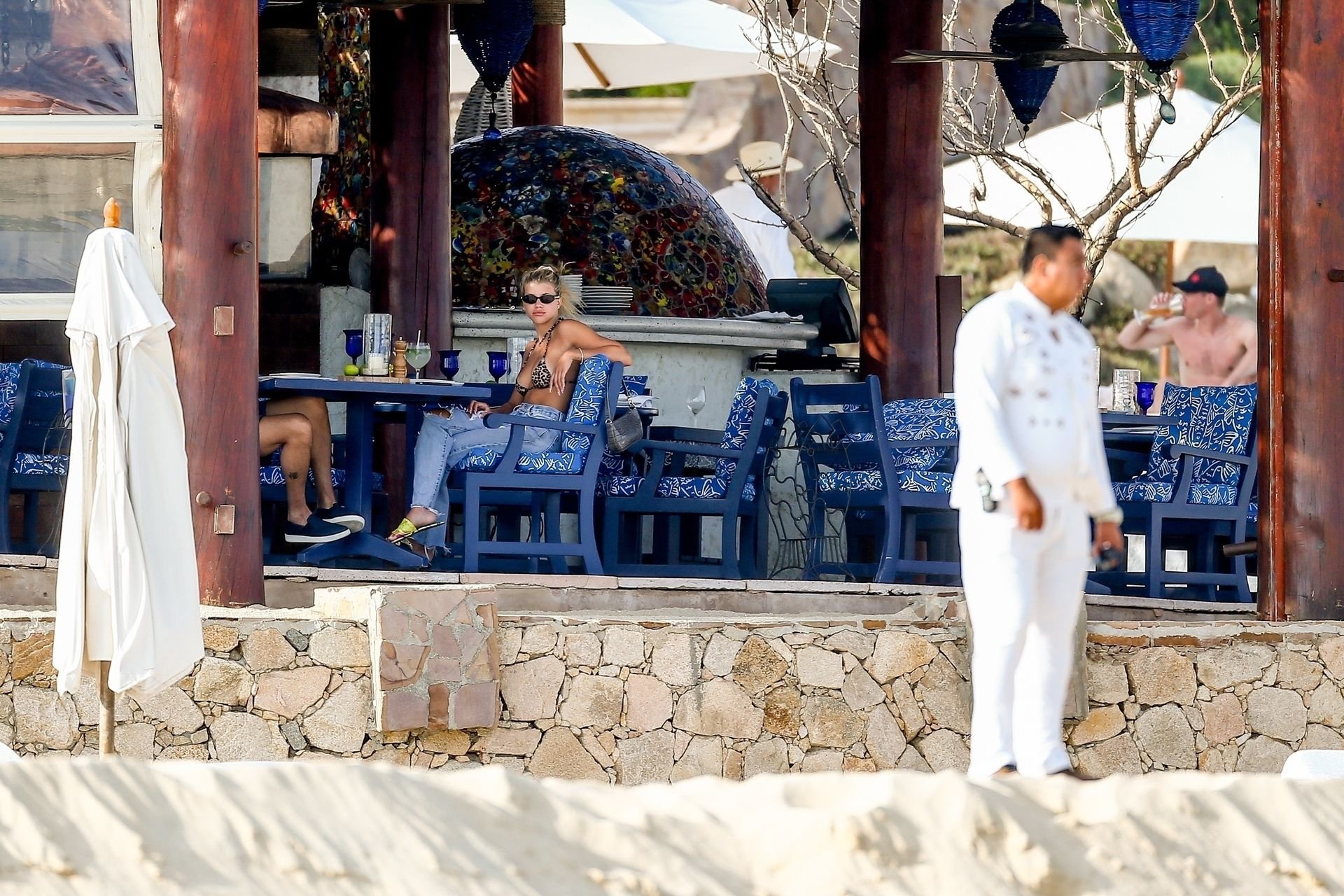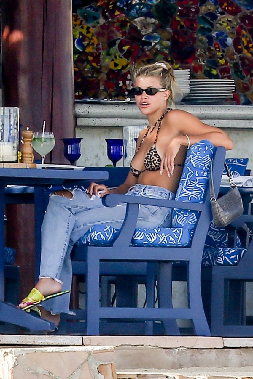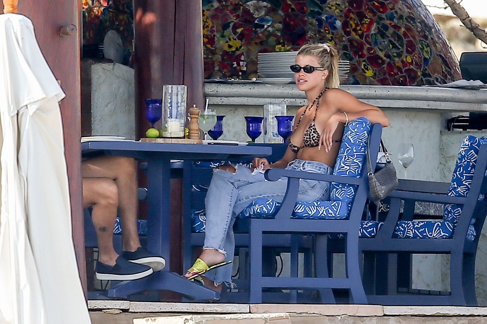 Sofia Richie e Scott Disick si siedono per pranzo e bevande nel Giorno del Lavoro a Cabo San Lucas, Messico, 01/09/2019. Sofia appare sexy nel suo top bikini animalier e nei jeans strappati mentre ammira i luoghi rilassandosi con il suo amato Scott durante un’altra vacanza fuori città insieme.