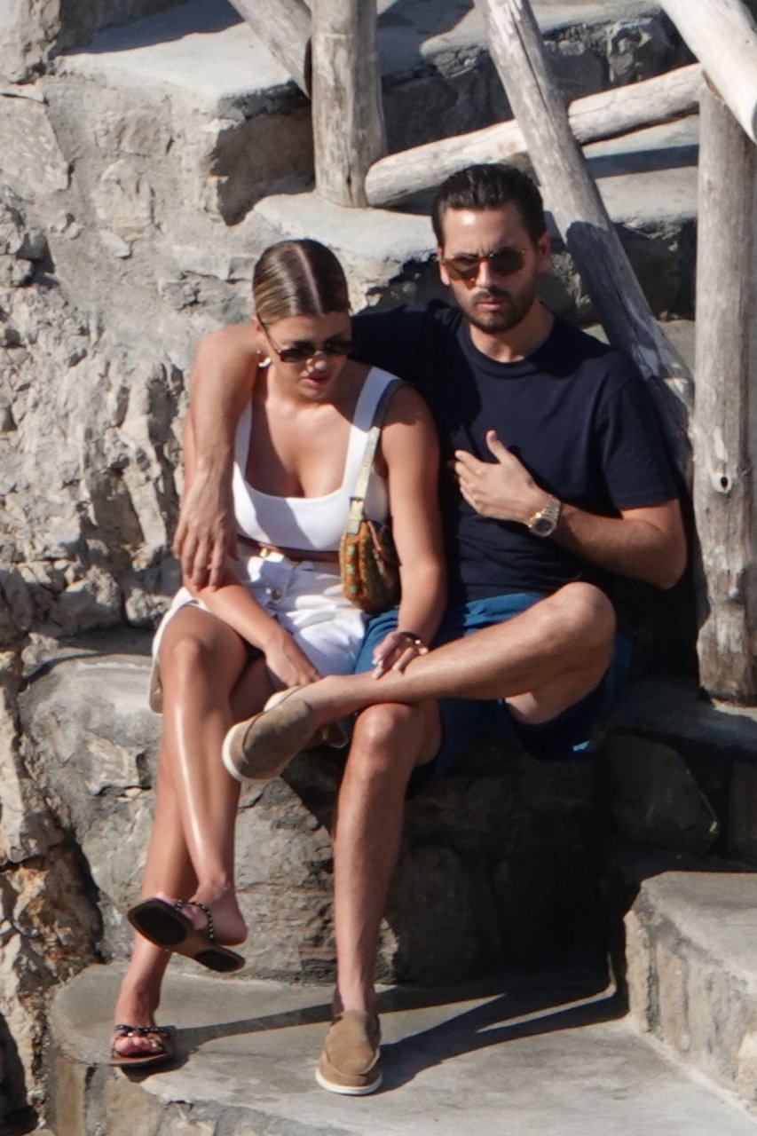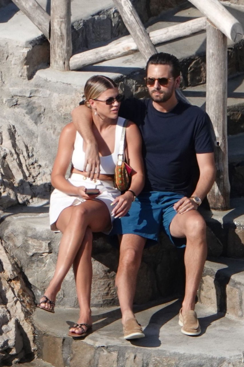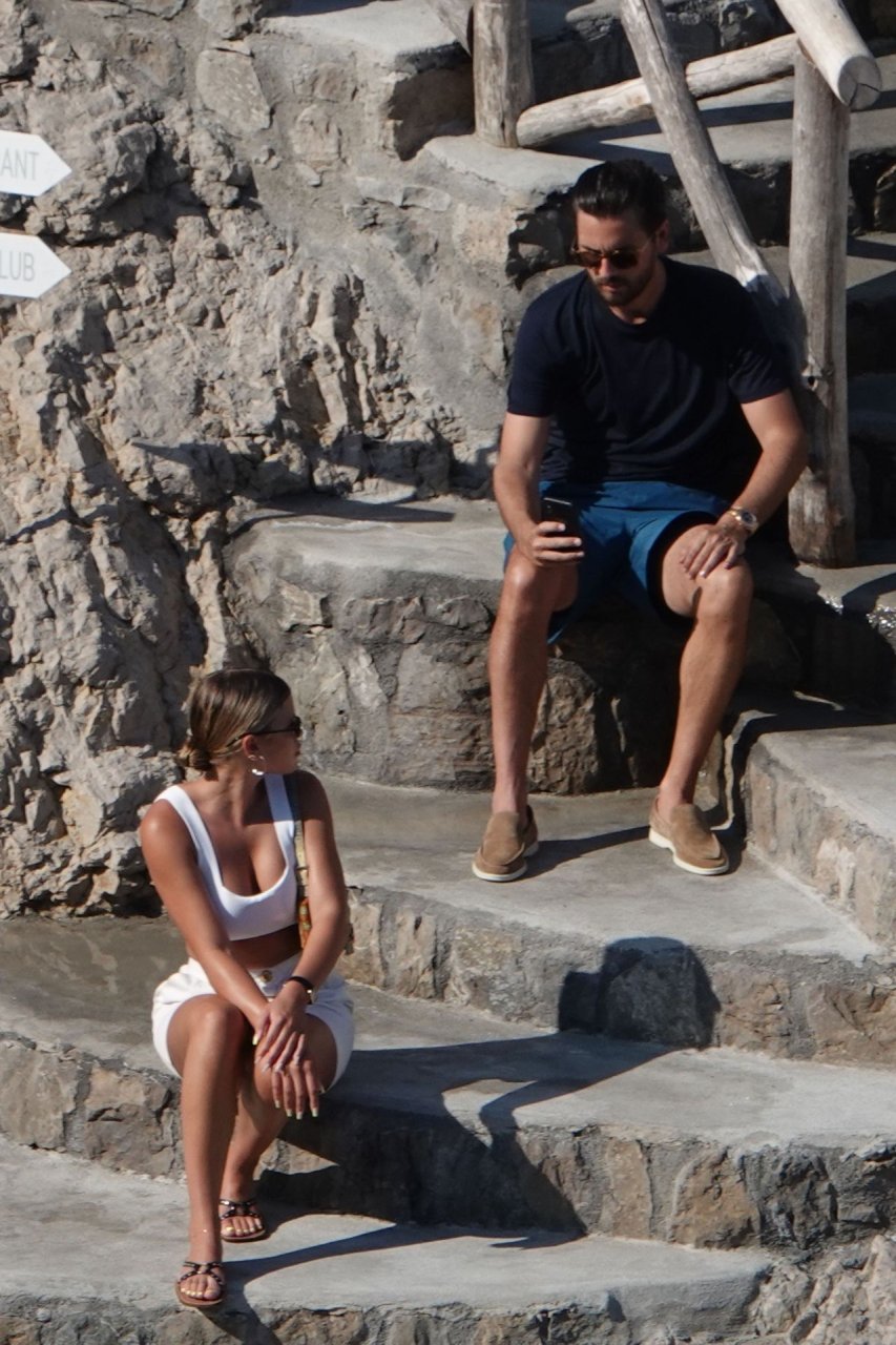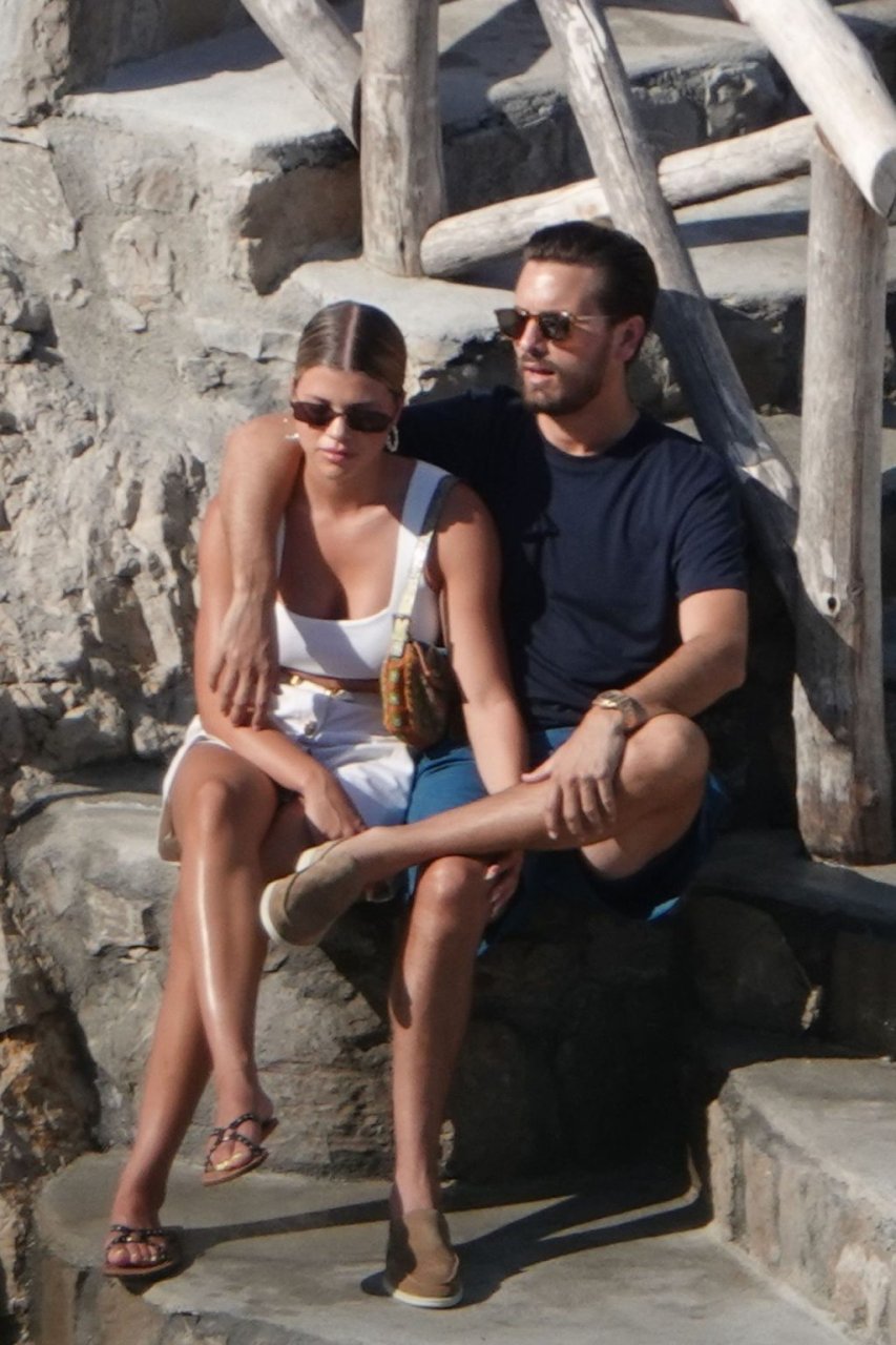 Scott Disick e Sofia Richie si abbracciano mentre sono seduti sui gradini durante una vacanza italiana a Nerano, 09/08/2019.