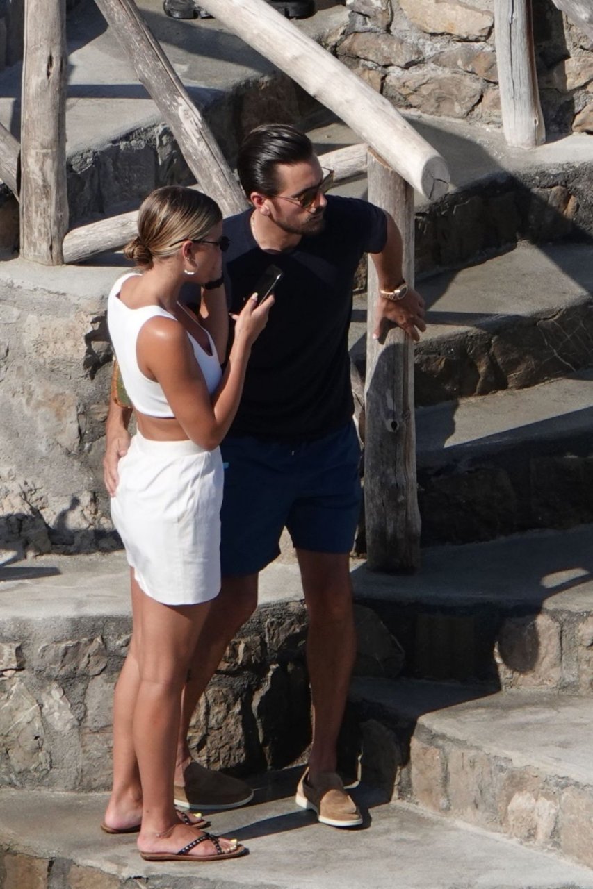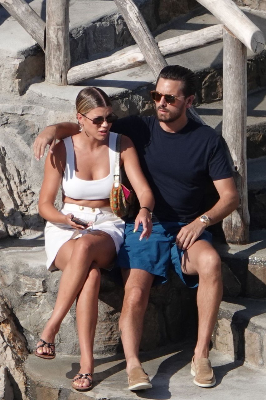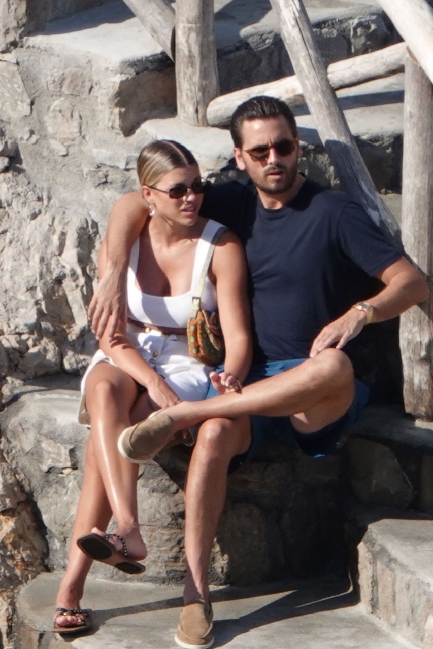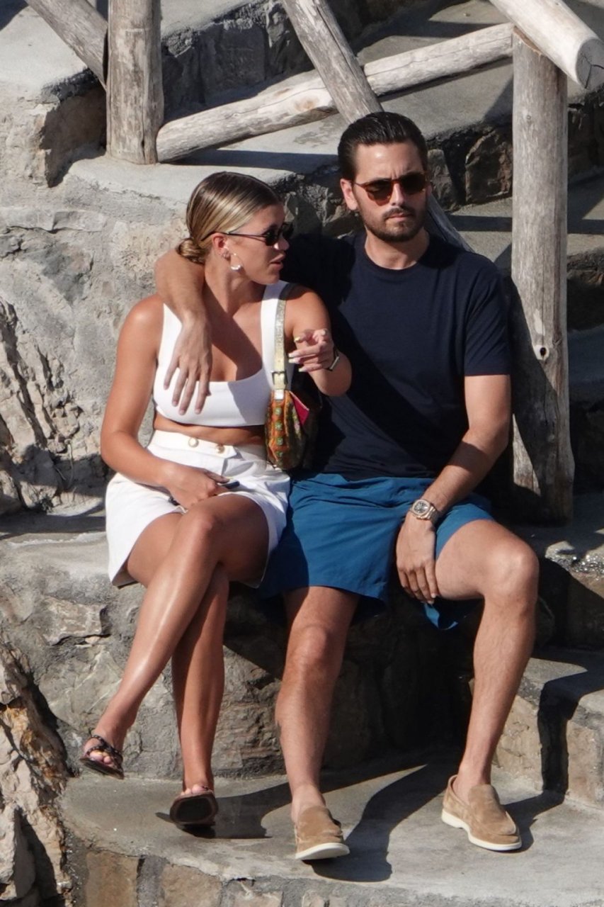 Scott Disick e Sofia Richie si abbracciano mentre sono seduti sui gradini durante una vacanza italiana a Nerano, 09/08/2019.