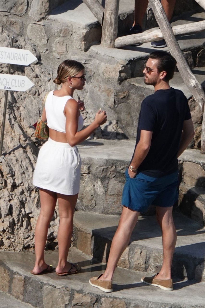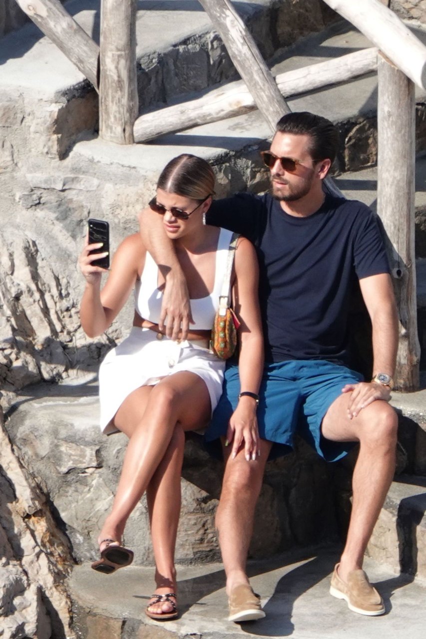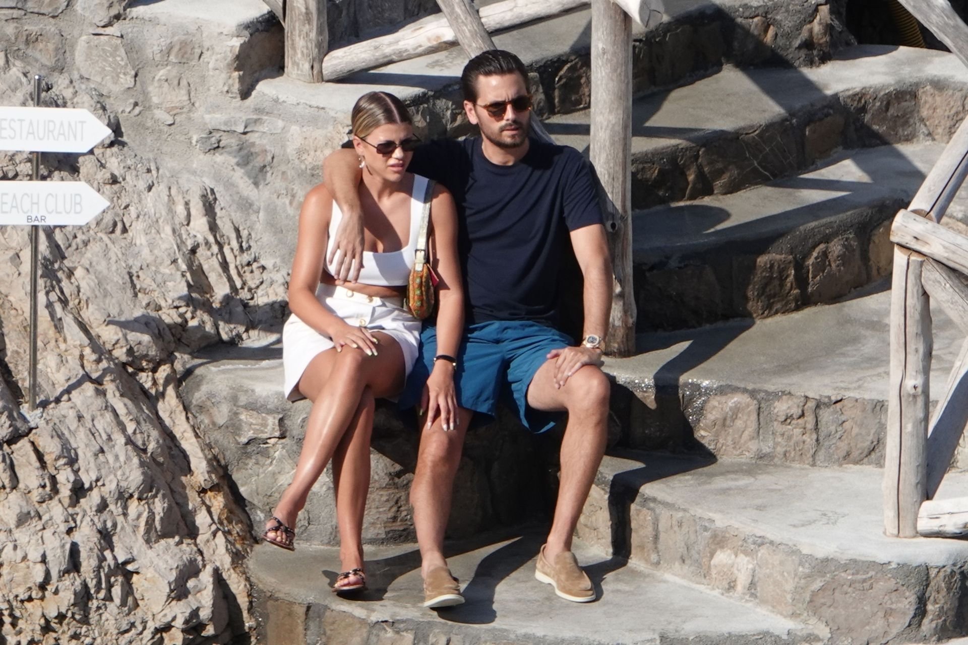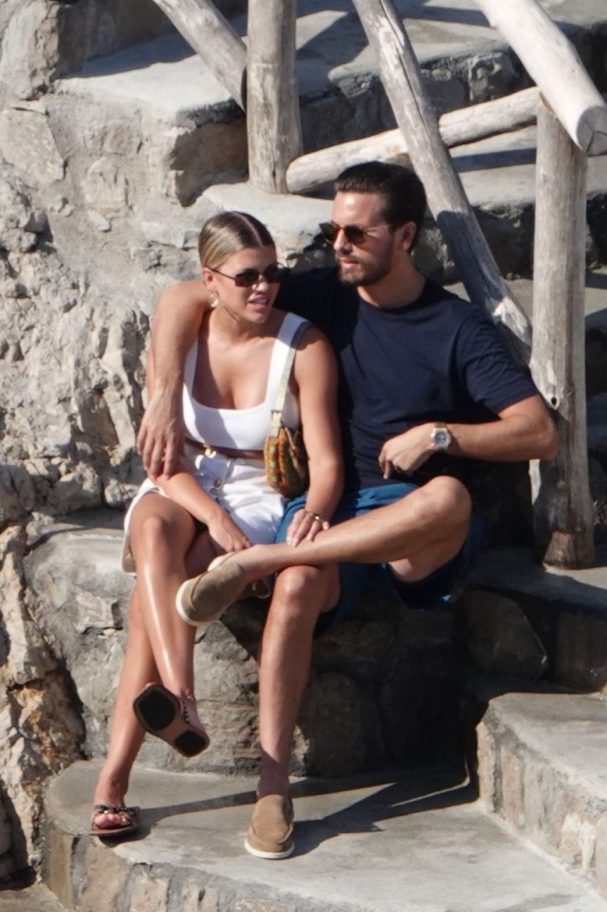 Scott Disick e Sofia Richie si abbracciano mentre sono seduti sui gradini durante una vacanza italiana a Nerano, 09/08/2019.