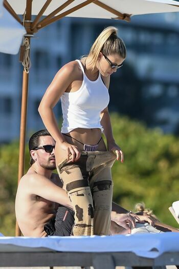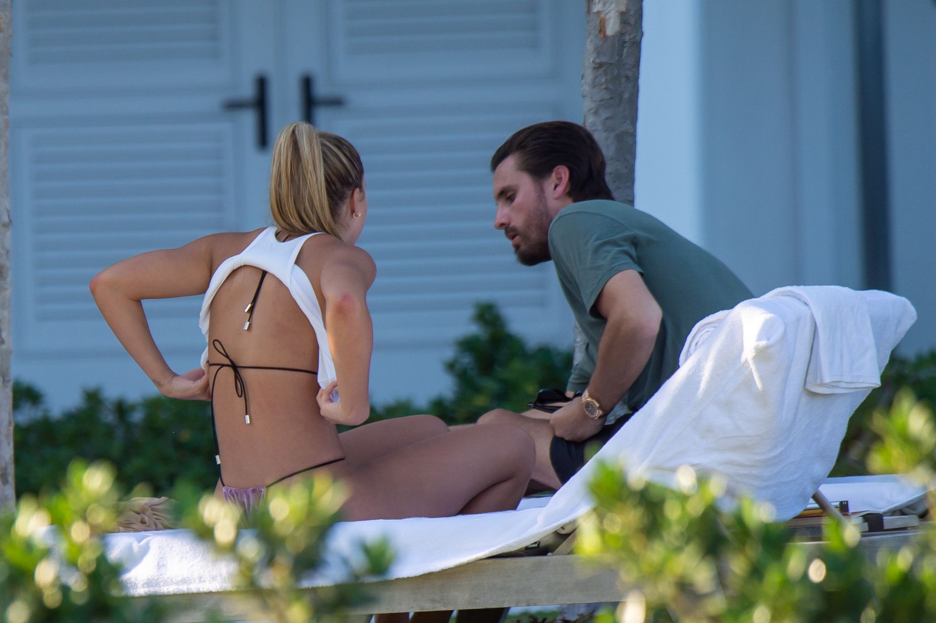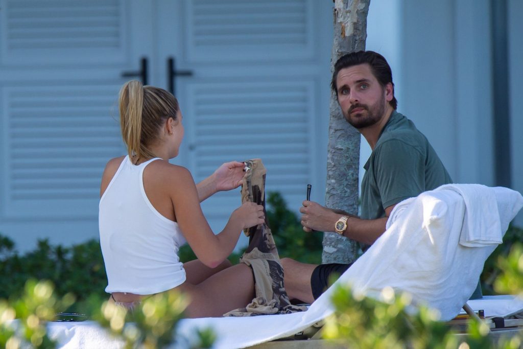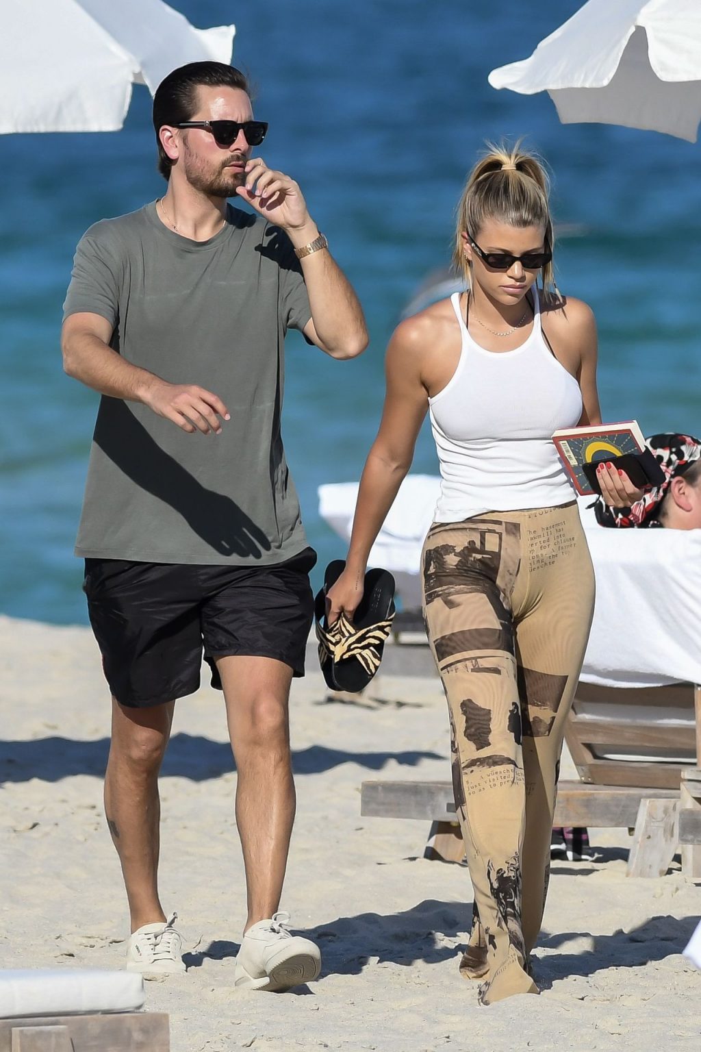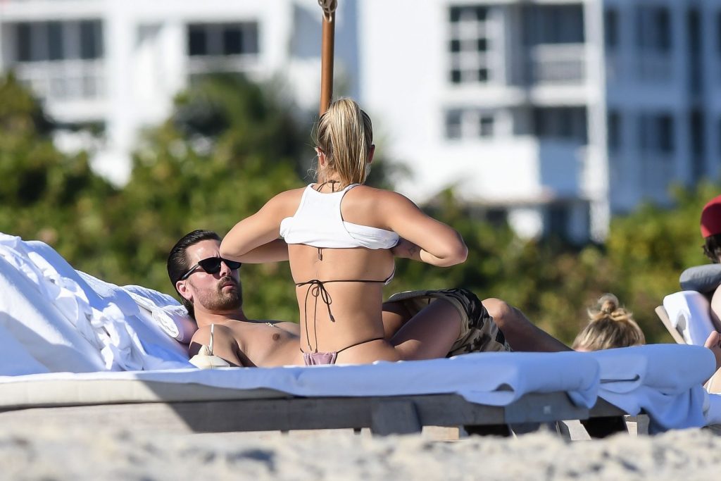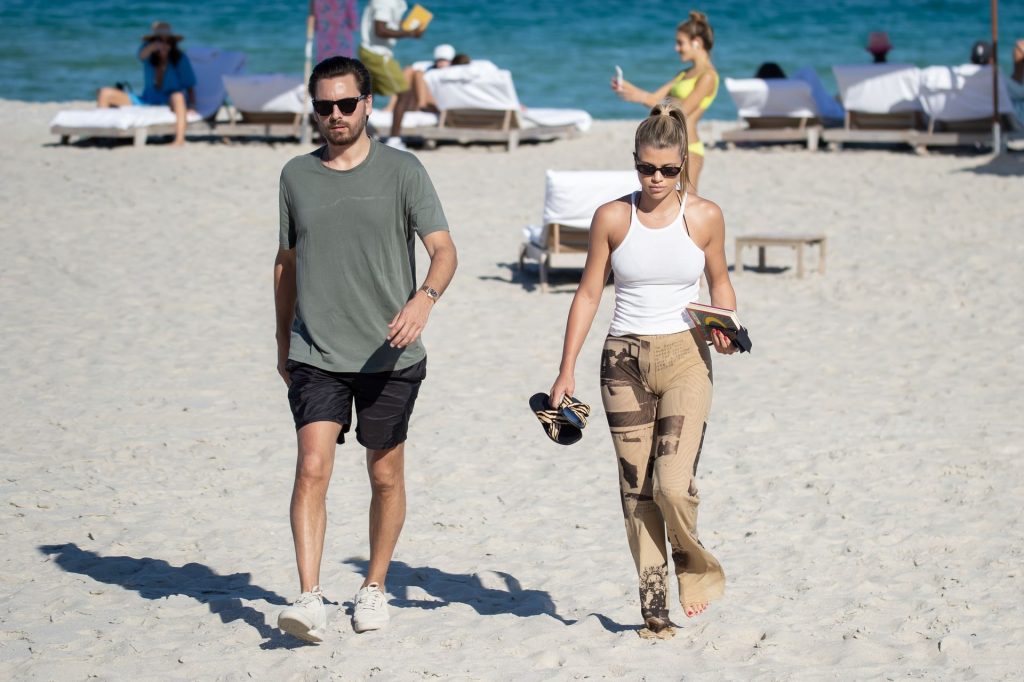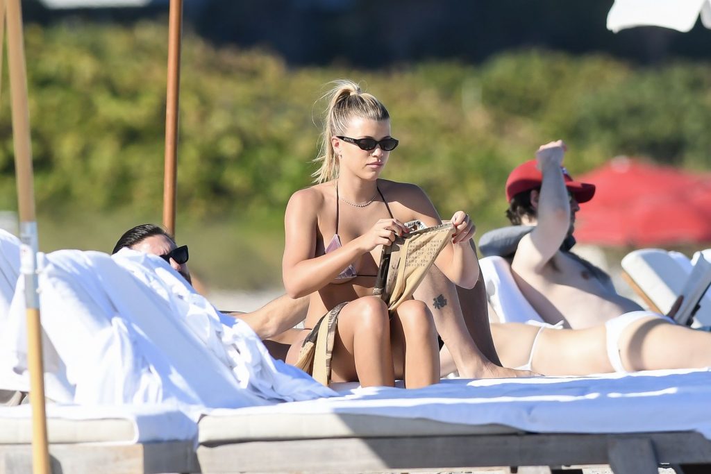 Model Sofia Richie e Scott Disick sono stati visti sulla spiaggia a Miami durante il Giorno del Ringraziamento, 28/11/2019. Oltre al suo piccolo bikini, Sofia indossava occhiali da sole Chanel.