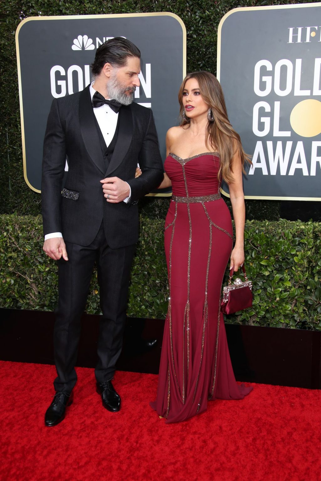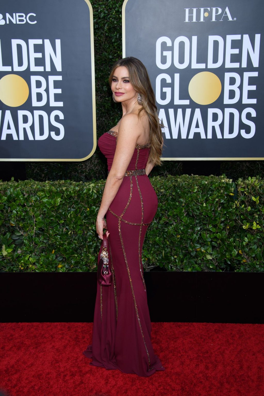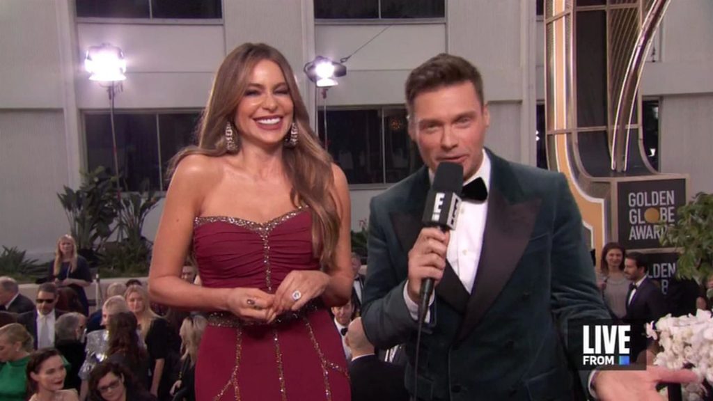 Sofia Vergara dichiara che il suo seno è naturale mentre cammina sul red carpet dei Golden Globes a Beverly Hills, 01/05/2020.