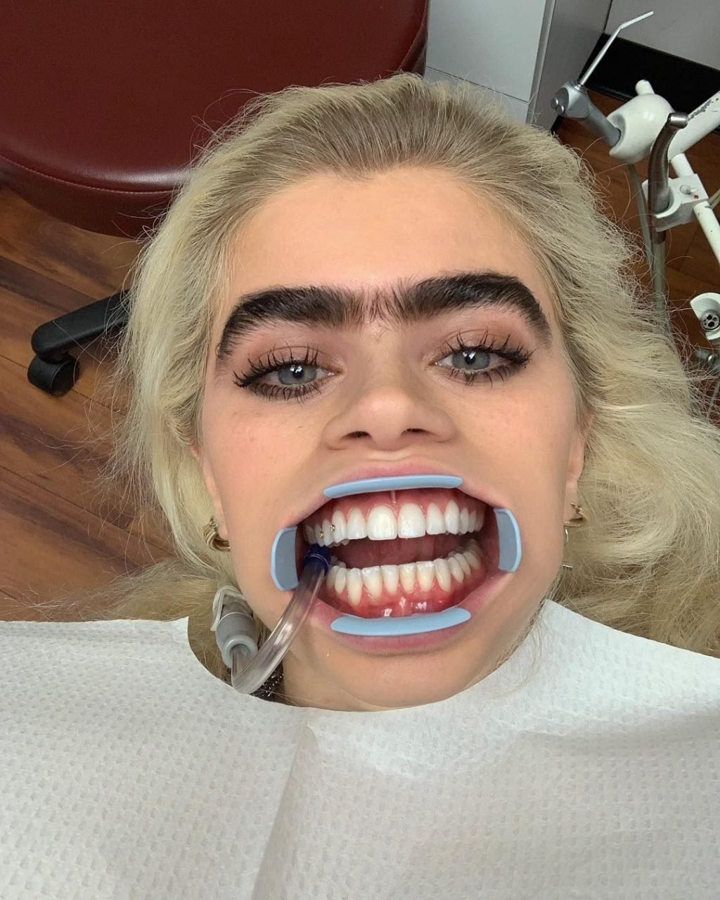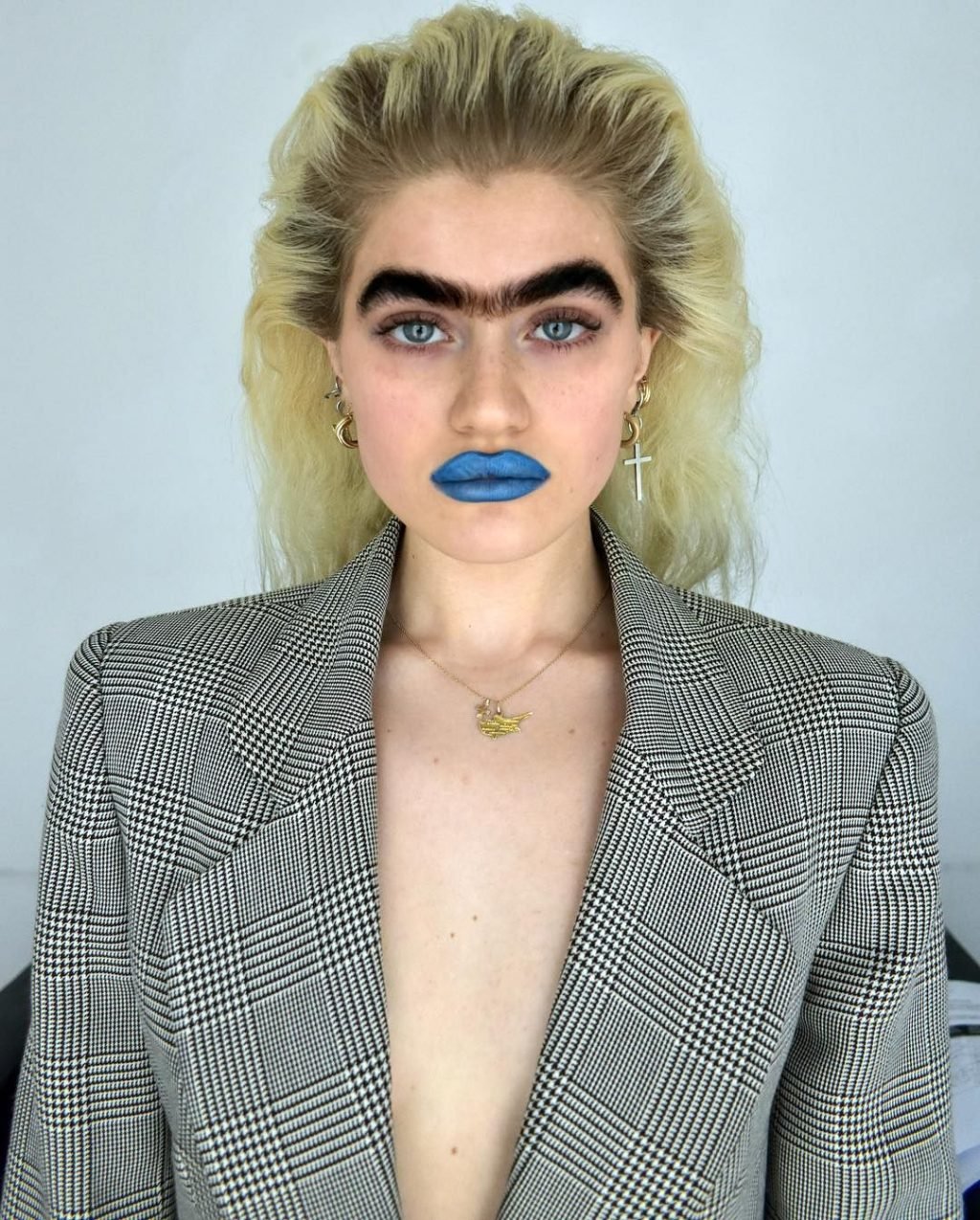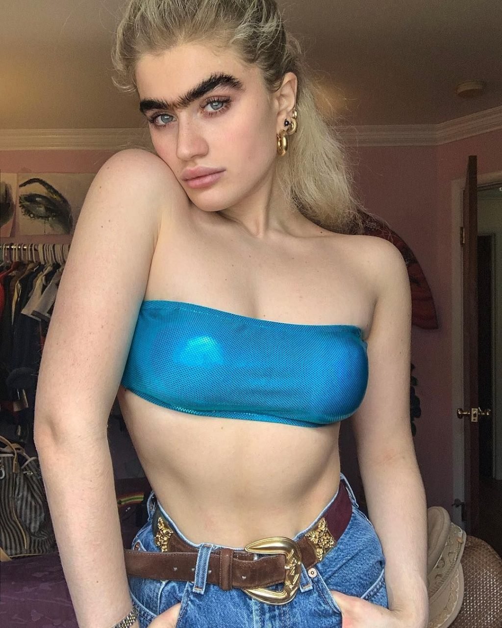 Penso che la parte più ironica sia che lei stia cercando di trasmettere il messaggio che tutti seguono ciecamente lo stesso percorso/fanno la stessa cosa. Lei lascia quel sopracciglio intatto per cercare di inviare quel messaggio. Nel frattempo, si rade o si depila ogni altro angolo del corpo e si fa iniezioni alle labbra e simili. Io lo chiamo un comportamento da ricerca di attenzione.