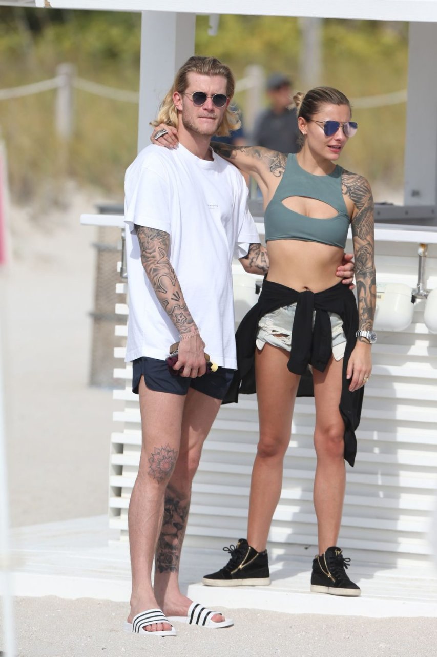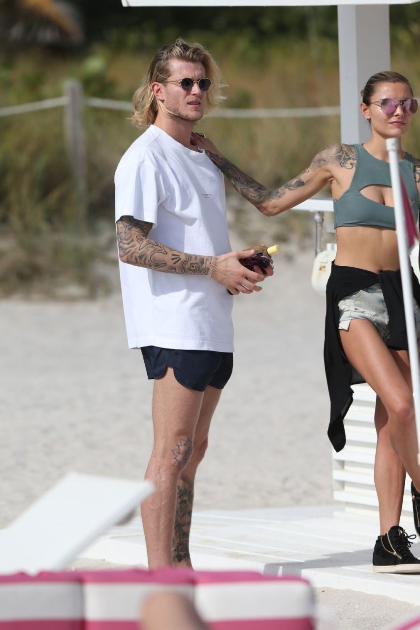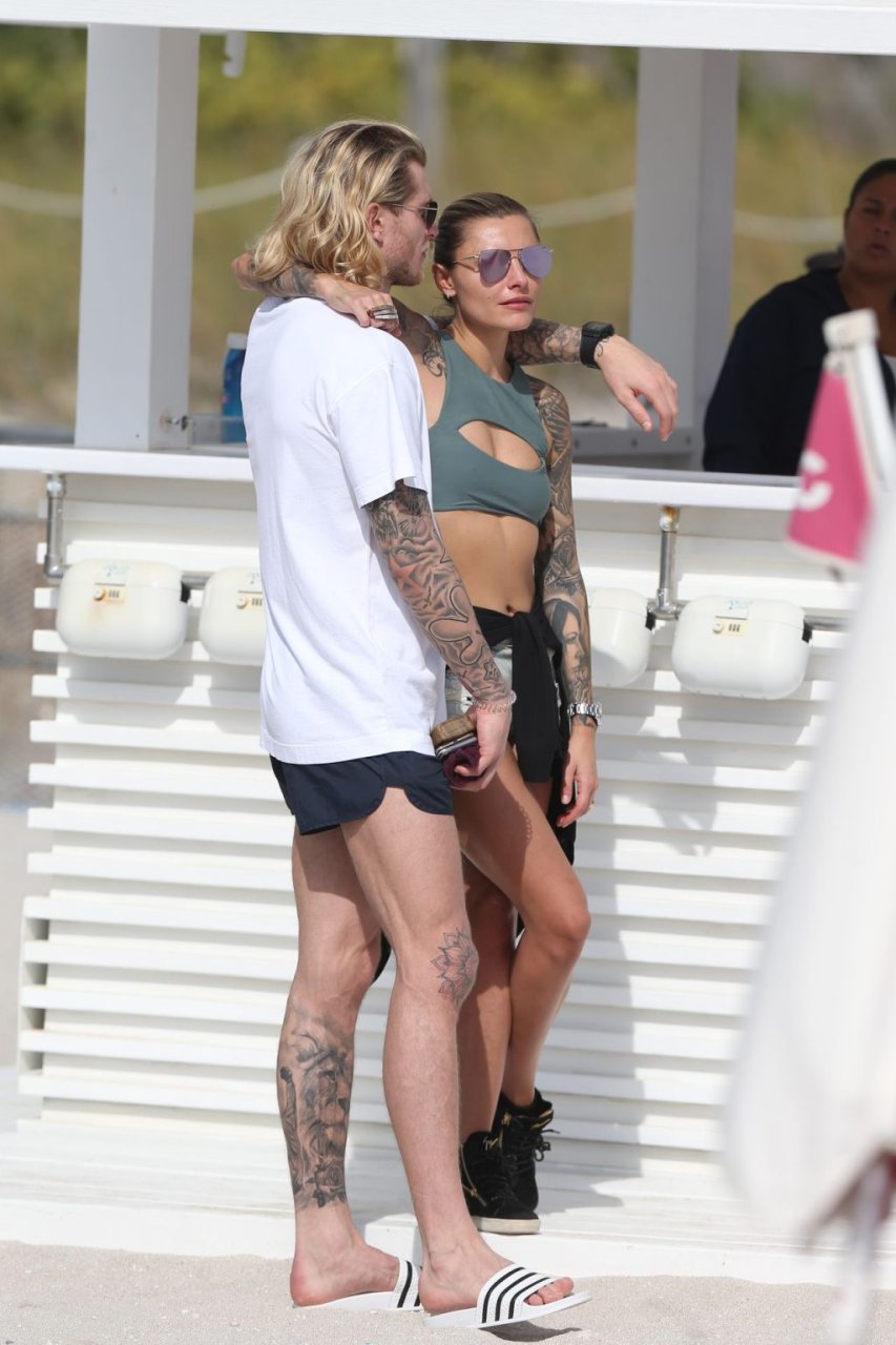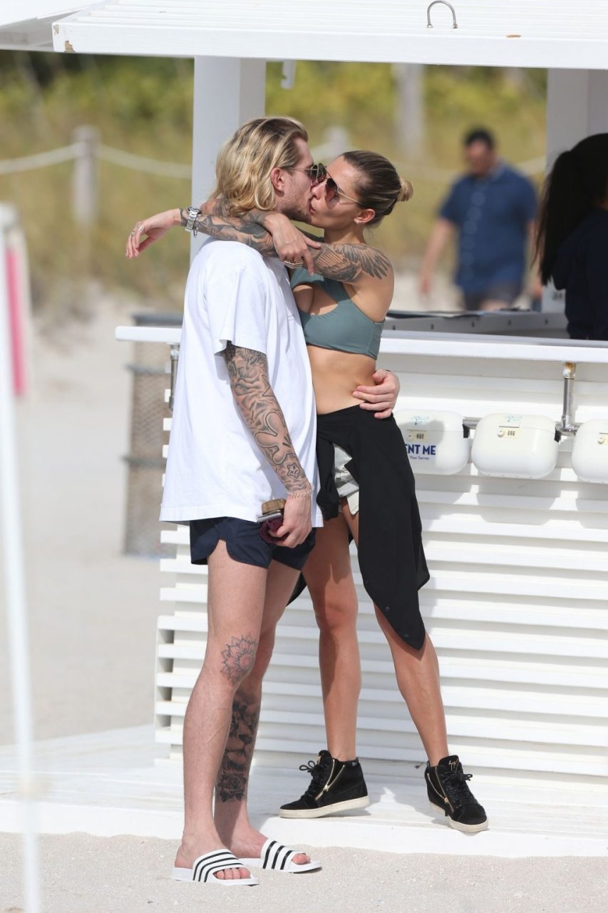 Calciatore tedesco Loris Karius e la sua nuova fidanzata, l’ex di Gavin Rossdale Sophia Thomalla, si scambiano effusioni mentre trascorrono la giornata a Miami Beach, 28/12/2018.