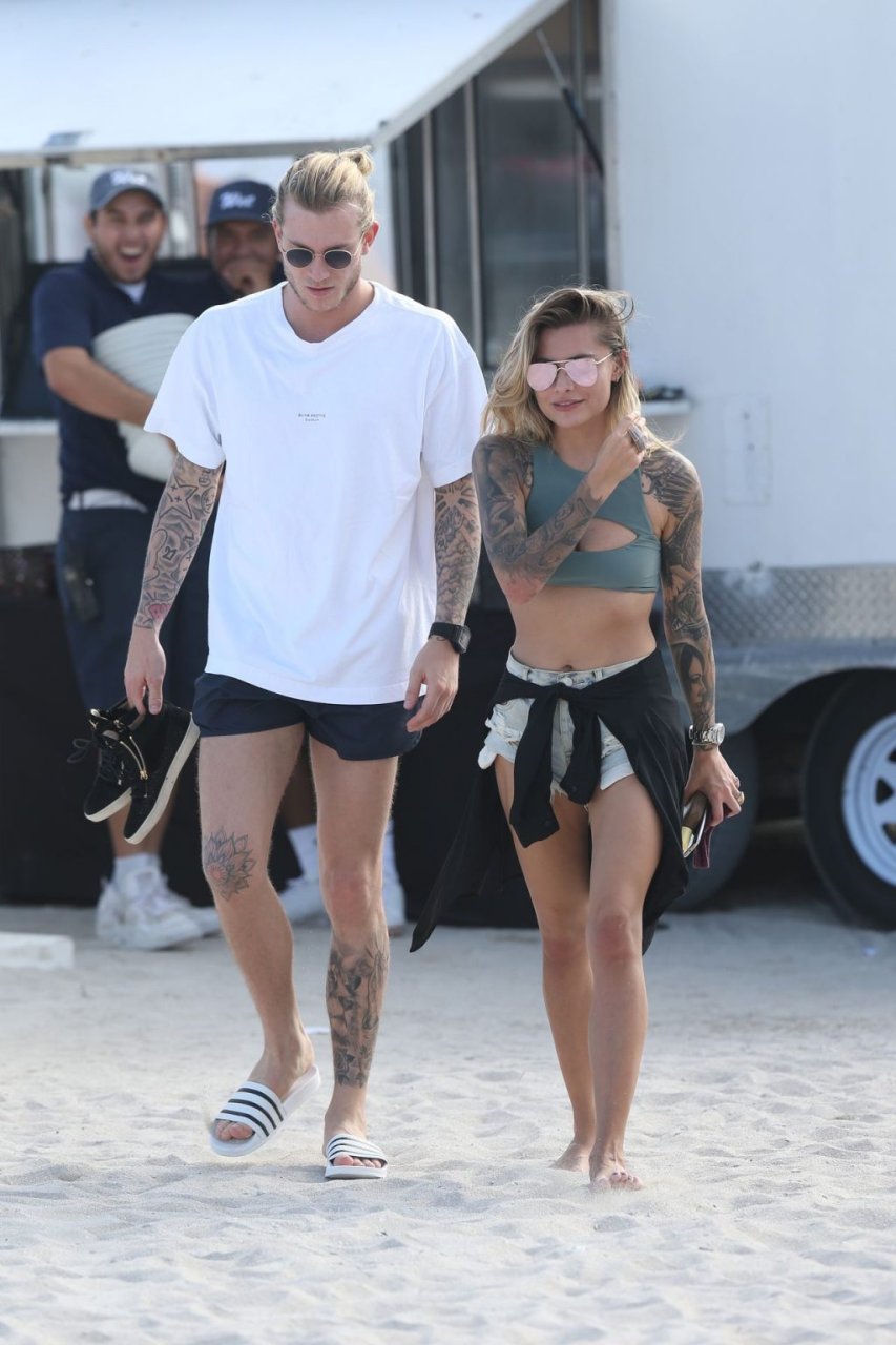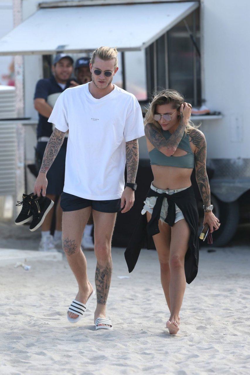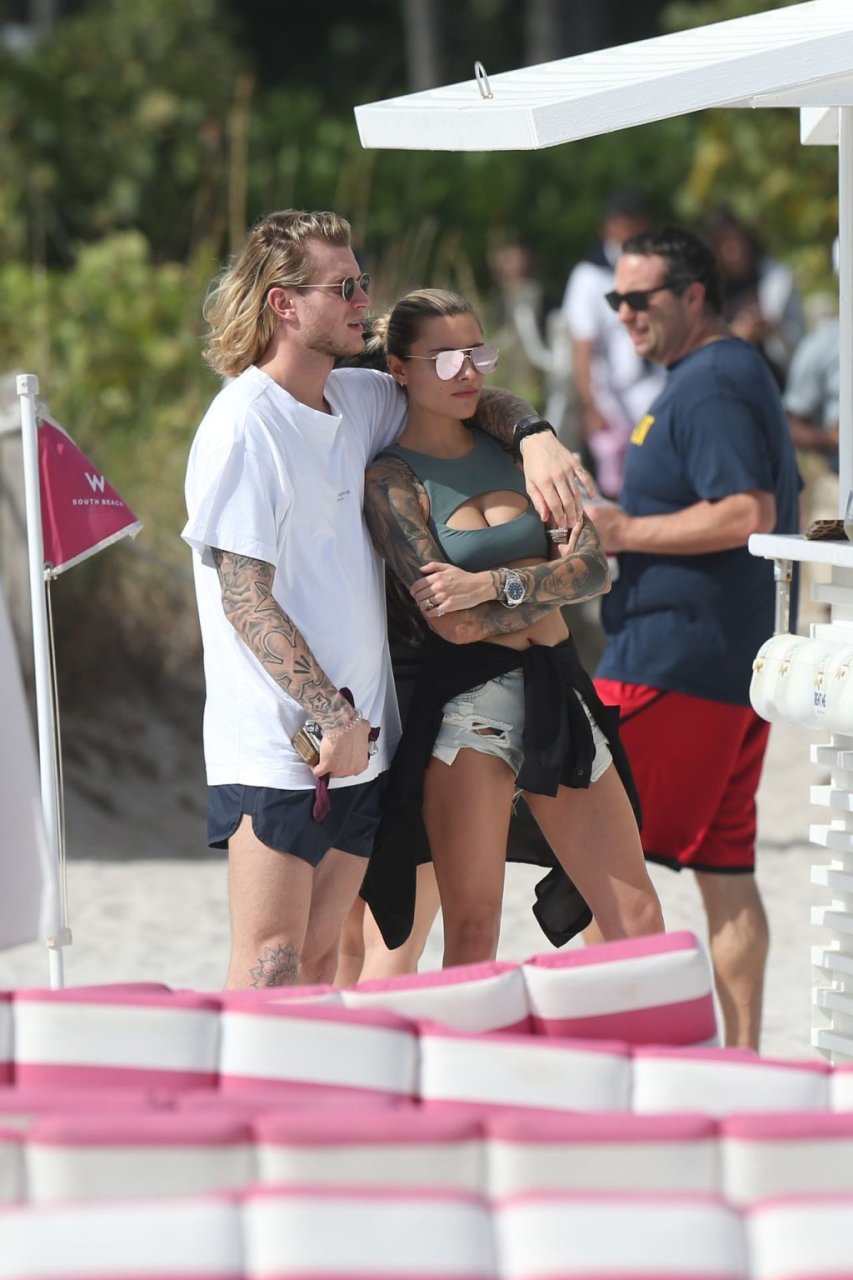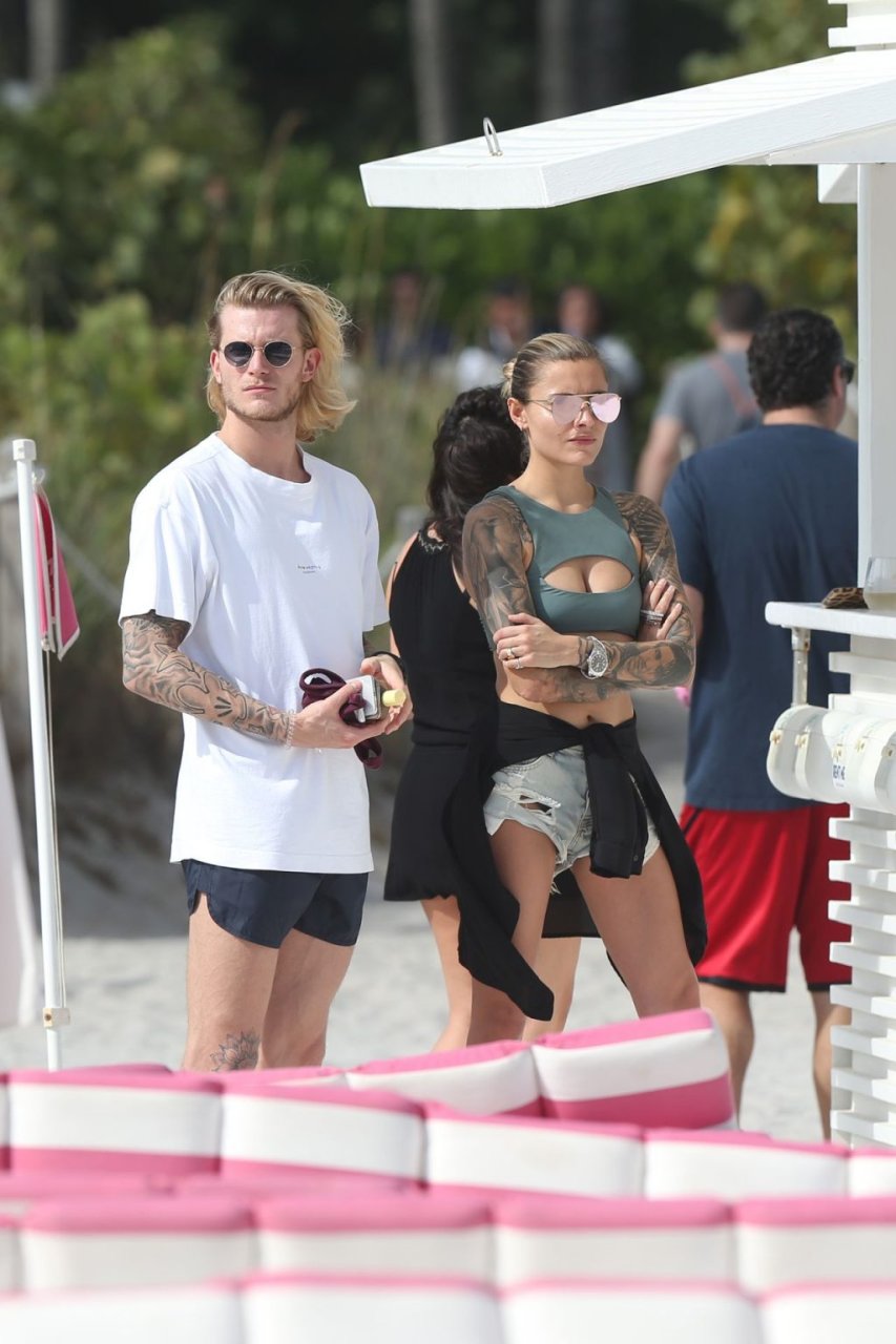 Calciatore tedesco Loris Karius e la sua nuova fidanzata, l’ex di Gavin Rossdale Sophia Thomalla, si scambiano effusioni mentre trascorrono la giornata a Miami Beach, 28/12/2018.