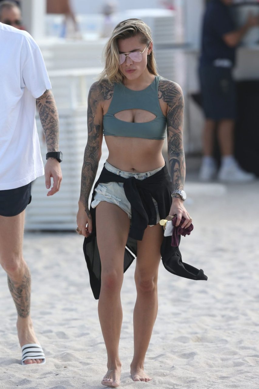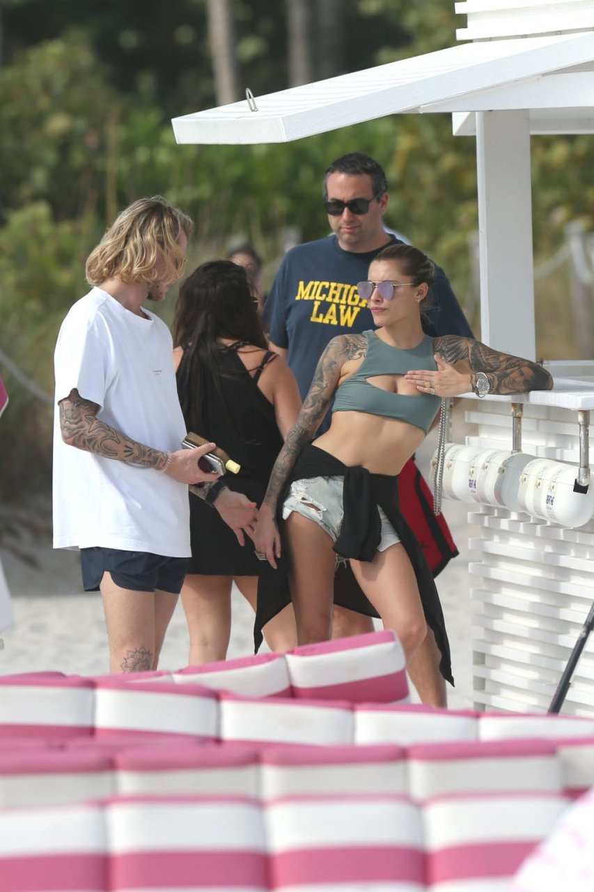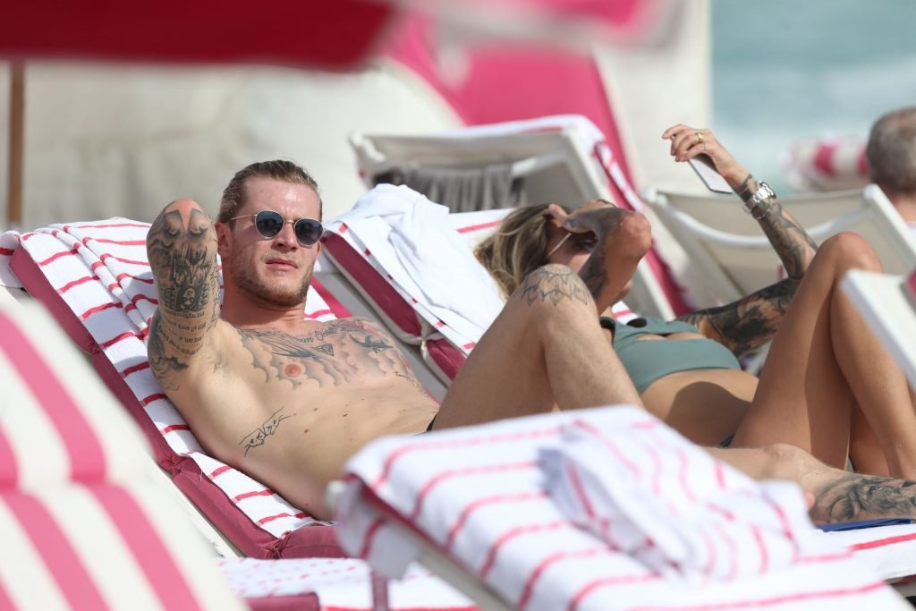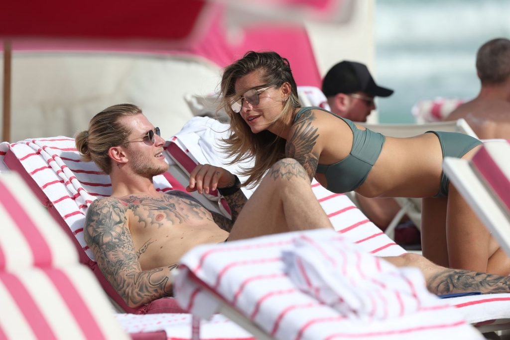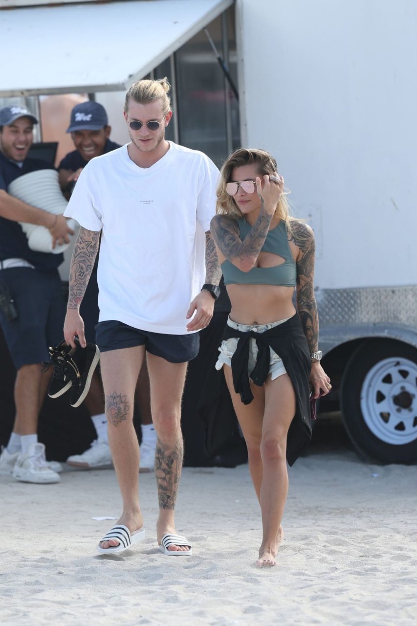 Calciatore tedesco Loris Karius e la sua nuova fidanzata, l’ex di Gavin Rossdale Sophia Thomalla, si scambiano effusioni mentre trascorrono la giornata a Miami Beach, 28/12/2018.