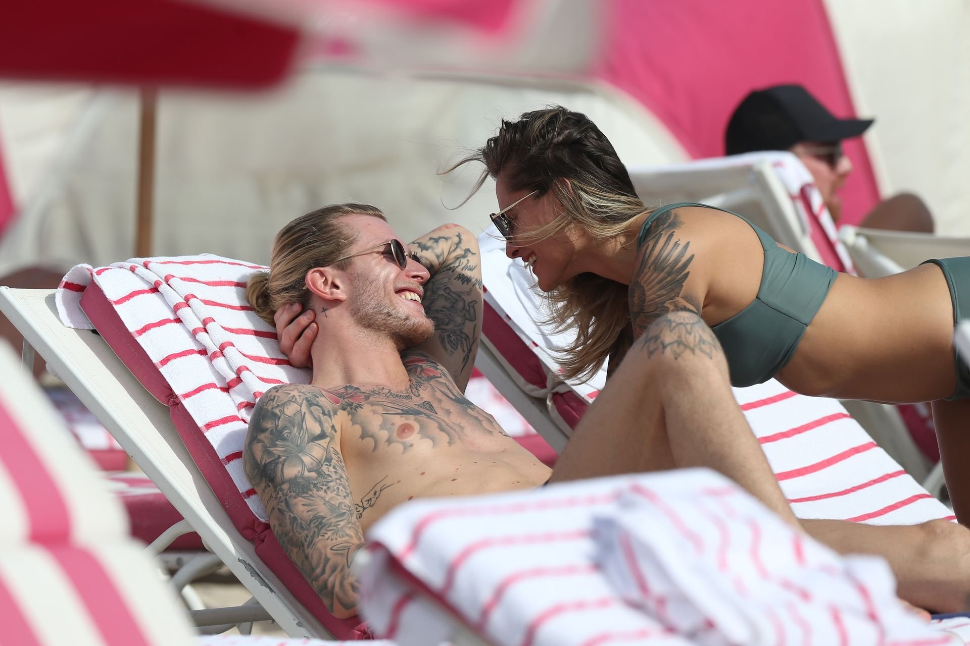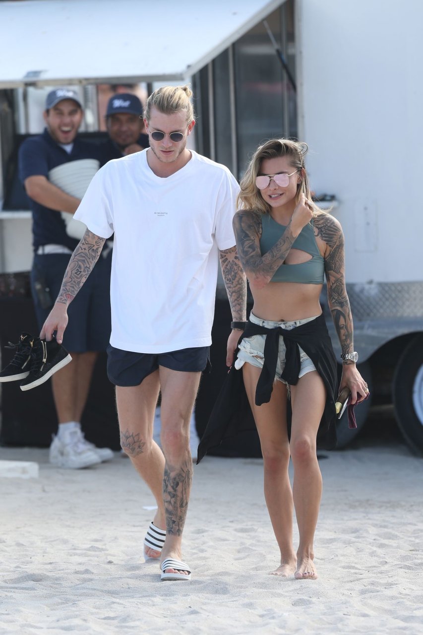 Calciatore tedesco Loris Karius e la sua nuova fidanzata, l’ex di Gavin Rossdale Sophia Thomalla, si scambiano effusioni mentre trascorrono la giornata a Miami Beach, 28/12/2018.