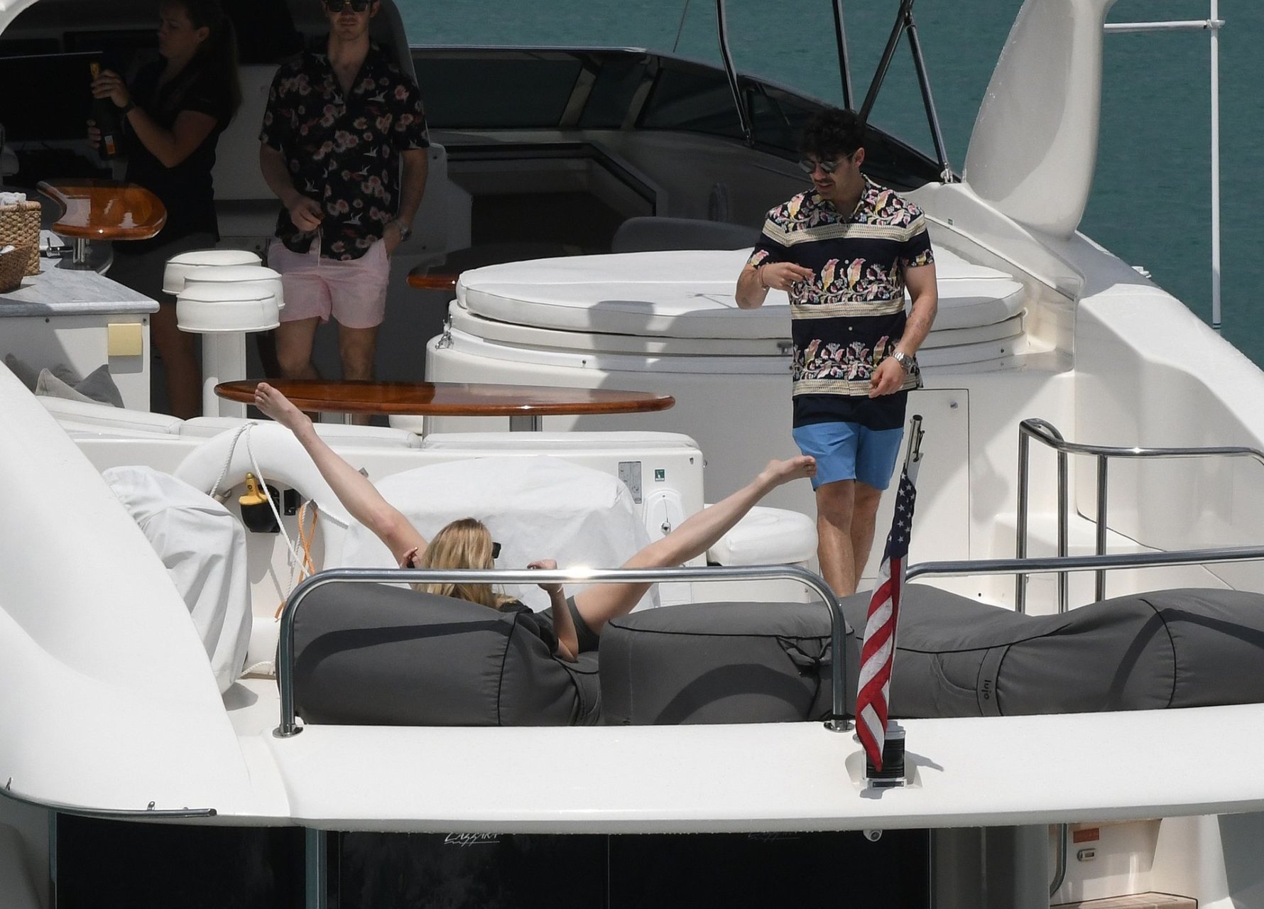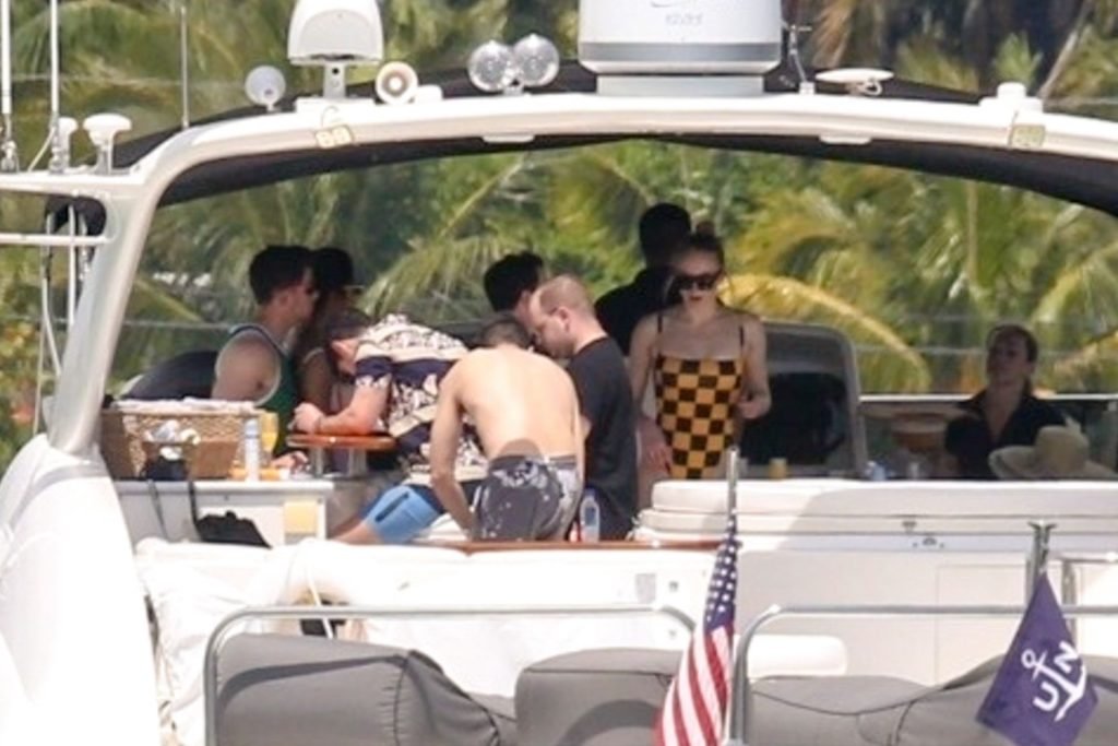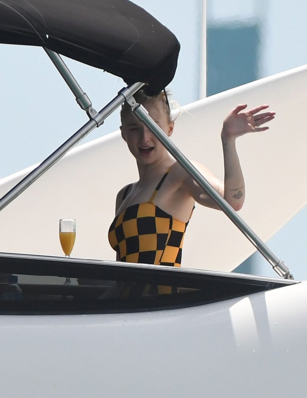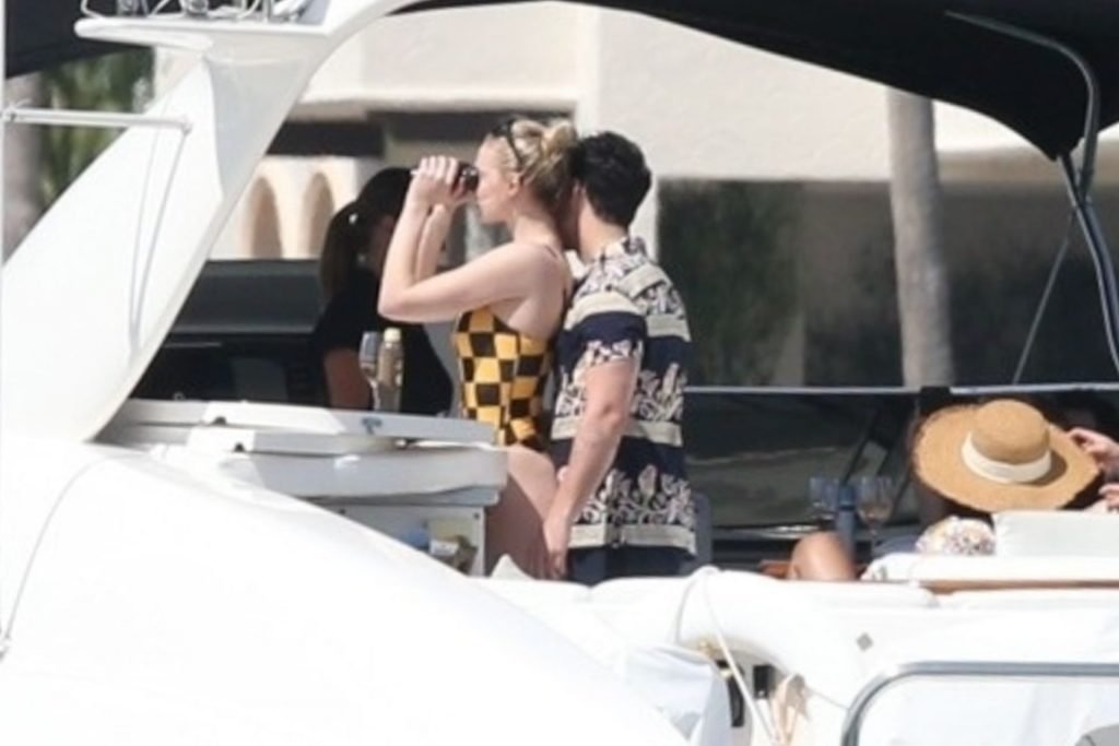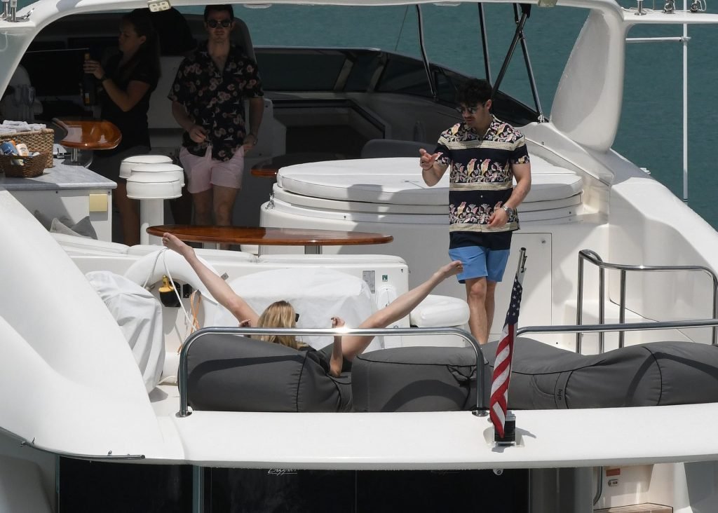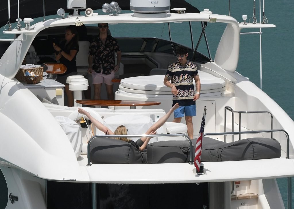 La star di “Game of Thrones” Sophie Turner indossa un costume da bagno a quadri mentre si diverte con i Jonas Brothers e Priyanka Chopra a Miami, 25/03/2019.