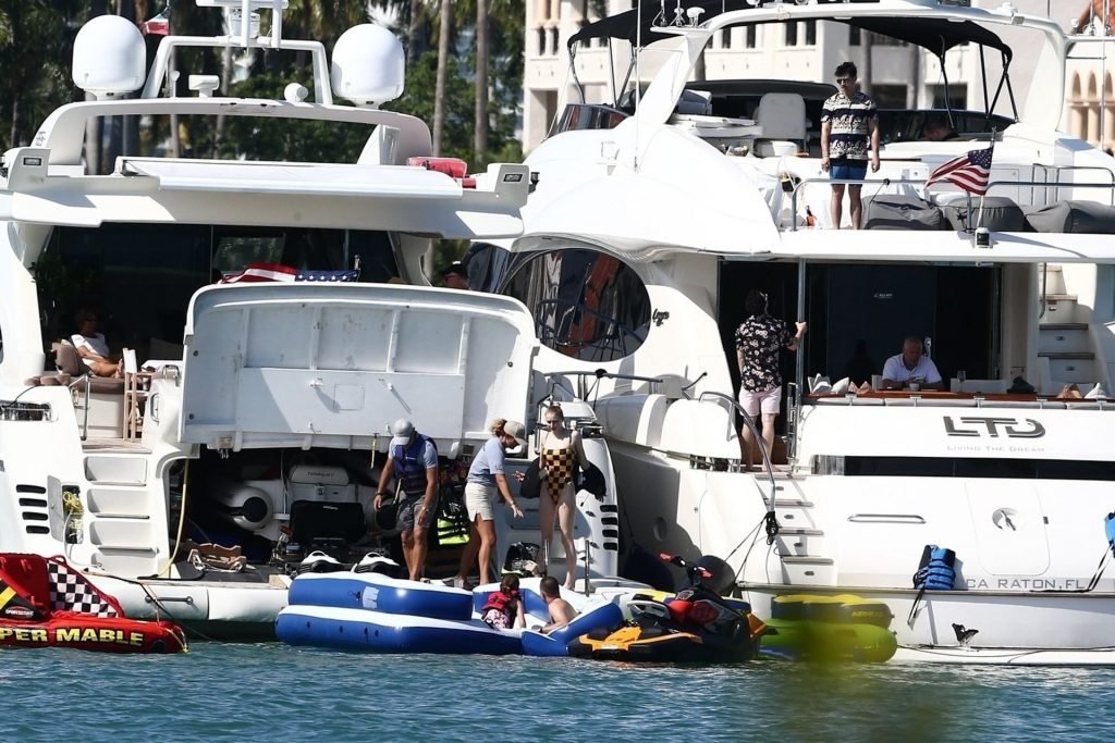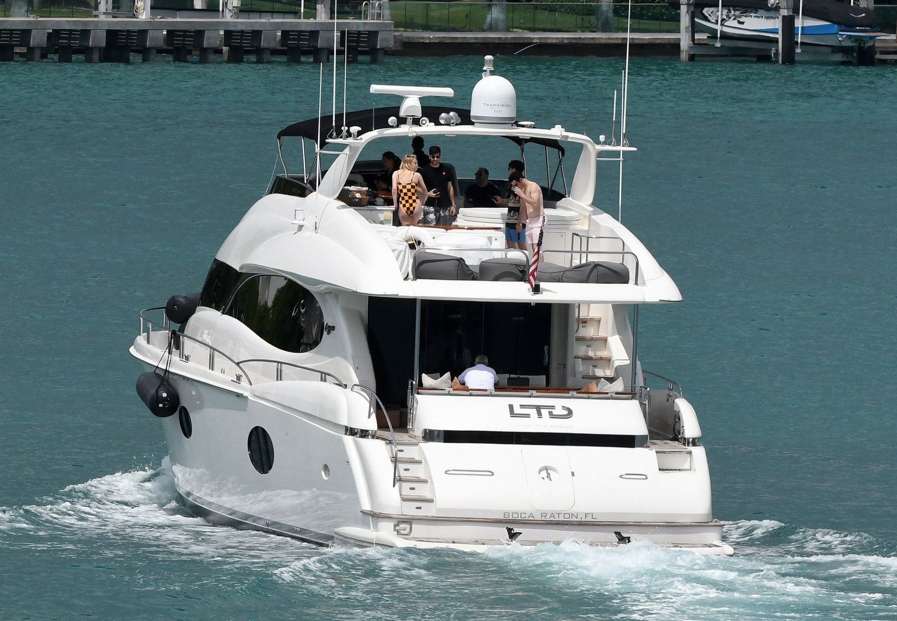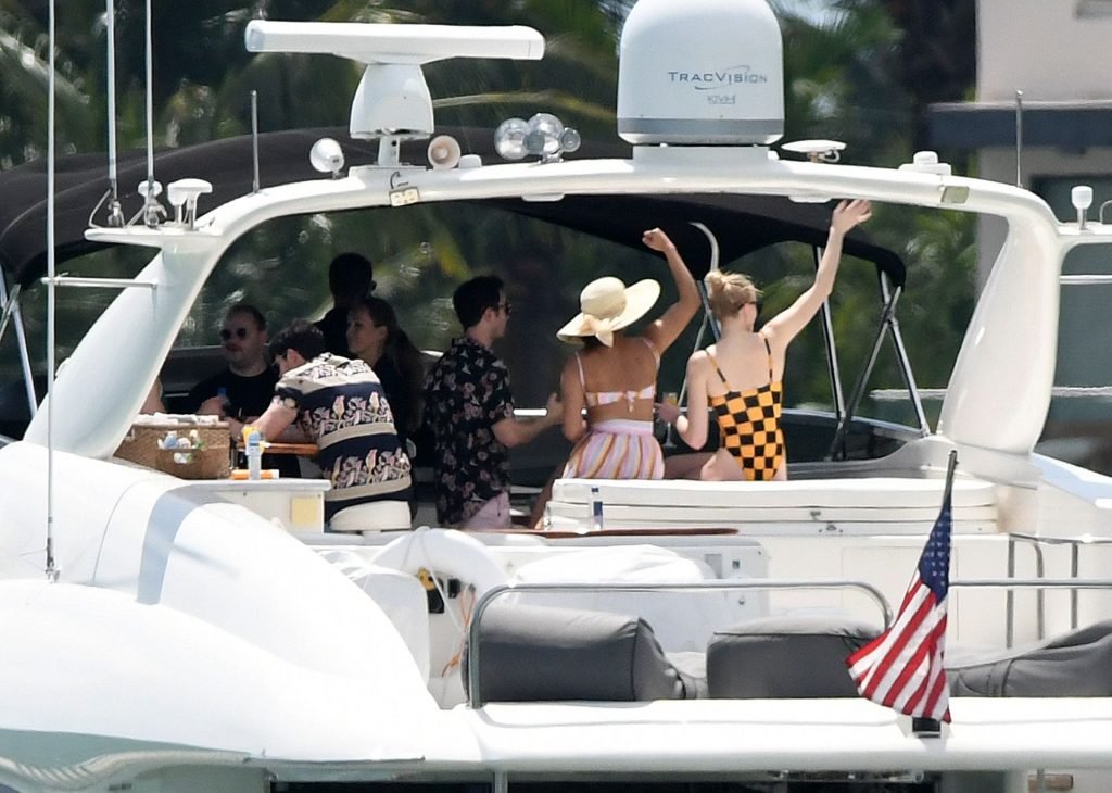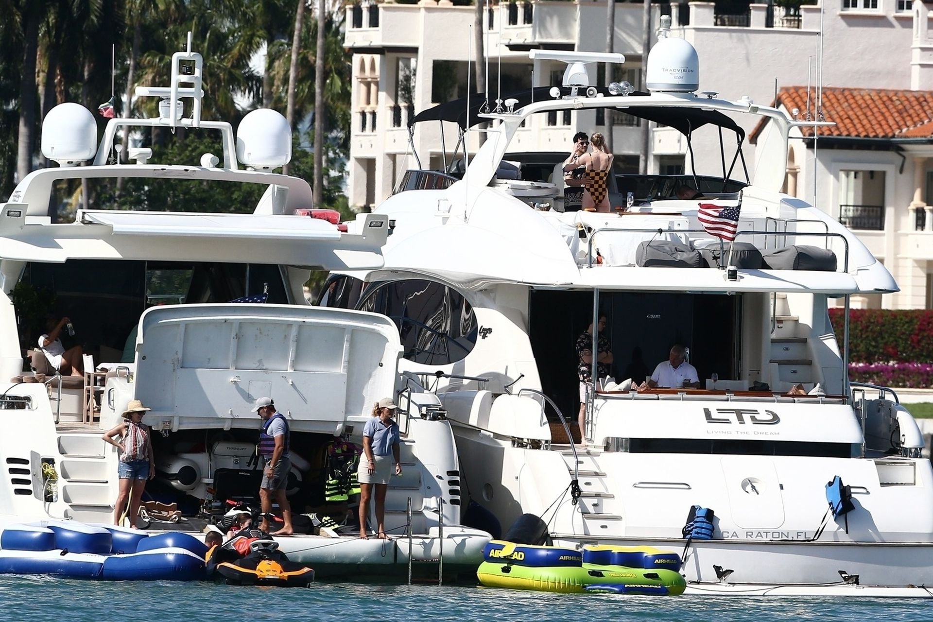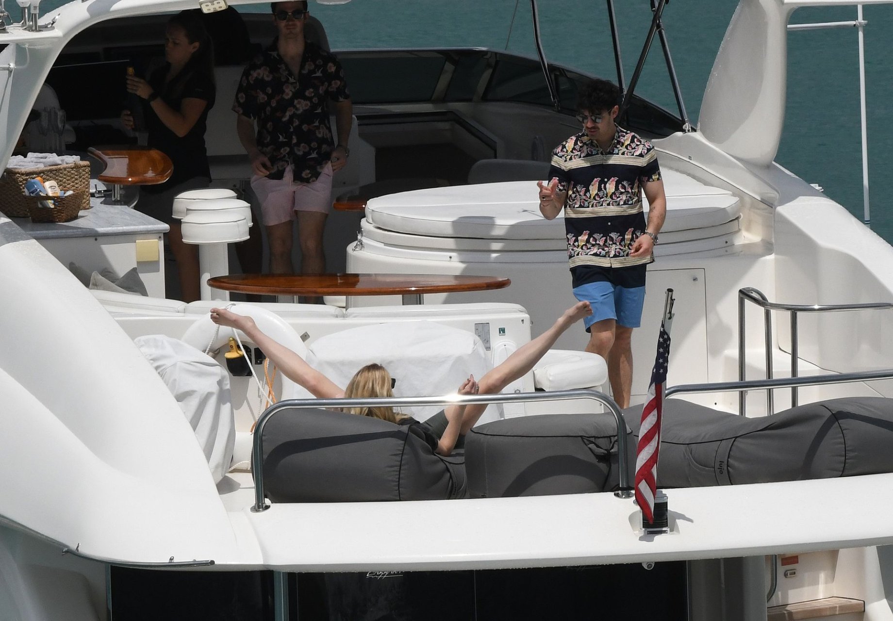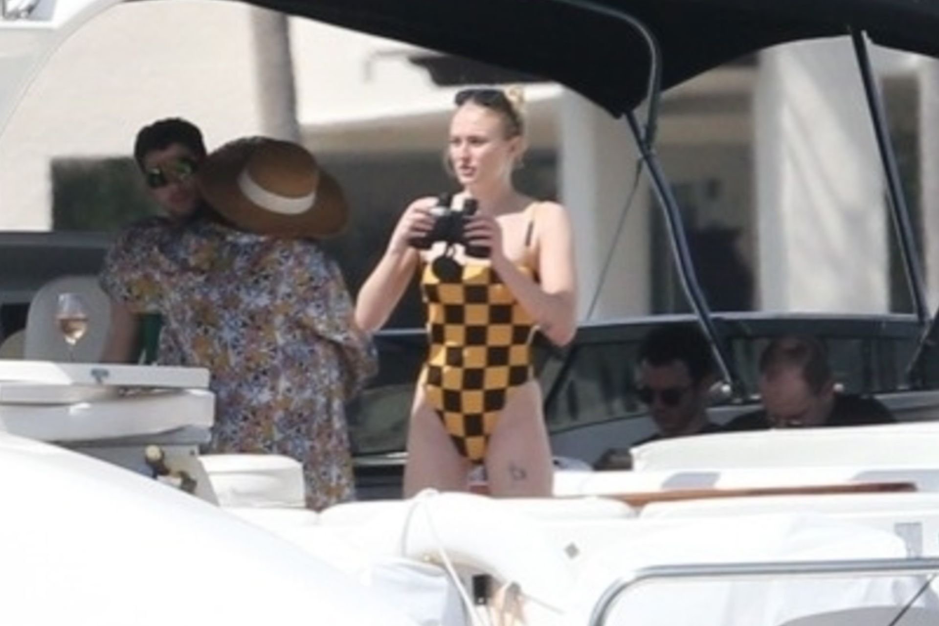 La star di “Game of Thrones” Sophie Turner indossa un costume da bagno a quadri mentre si diverte con i Jonas Brothers e Priyanka Chopra a Miami, 25/03/2019.
