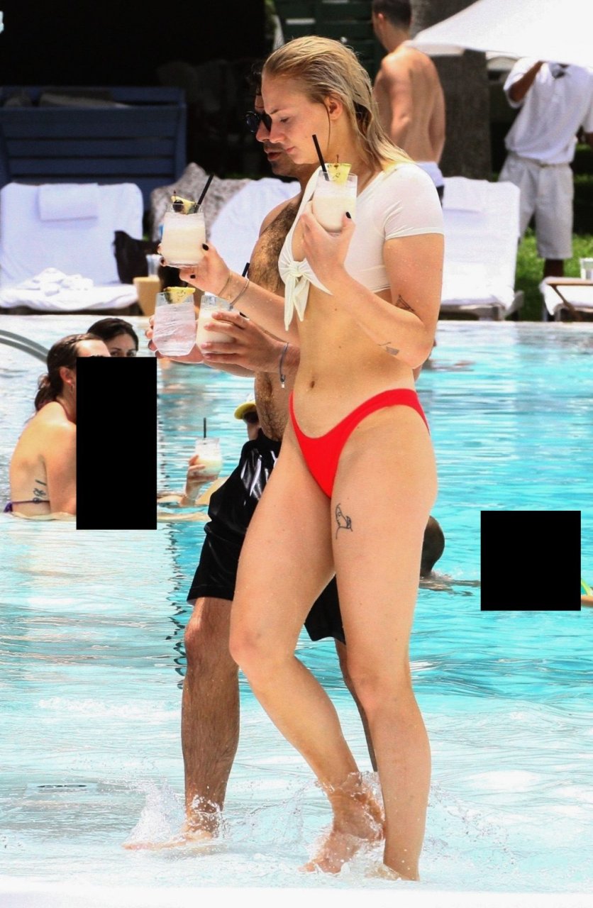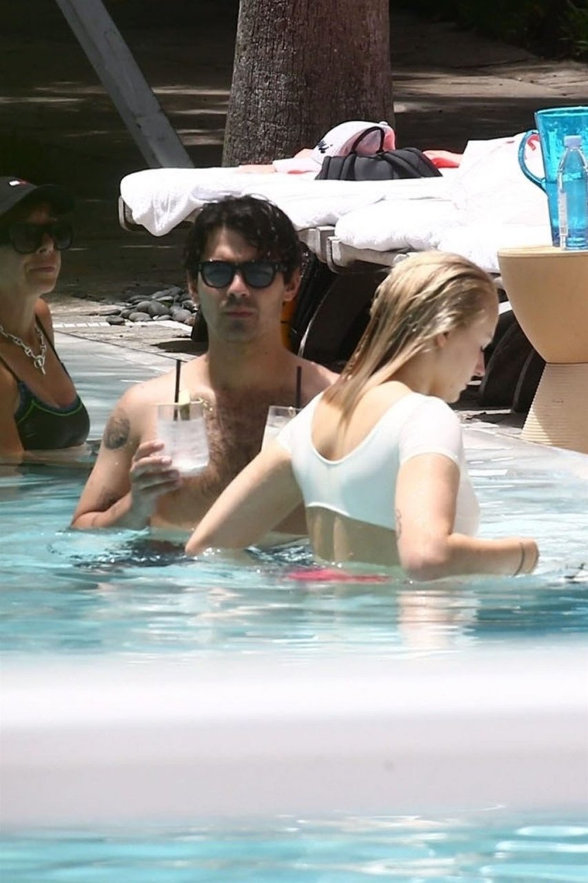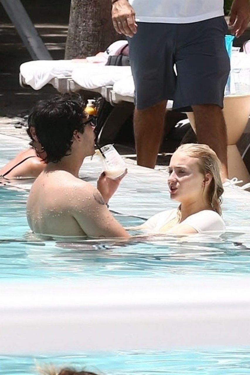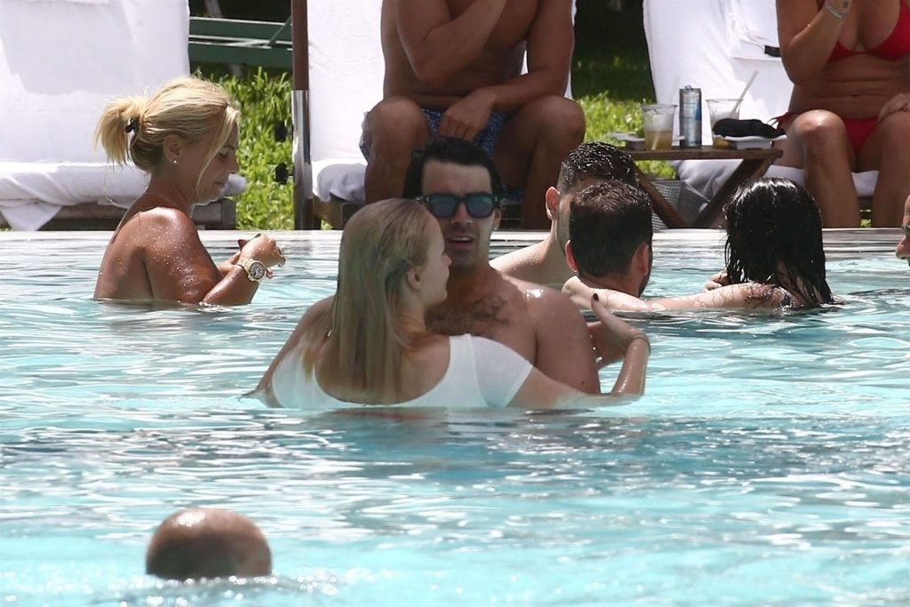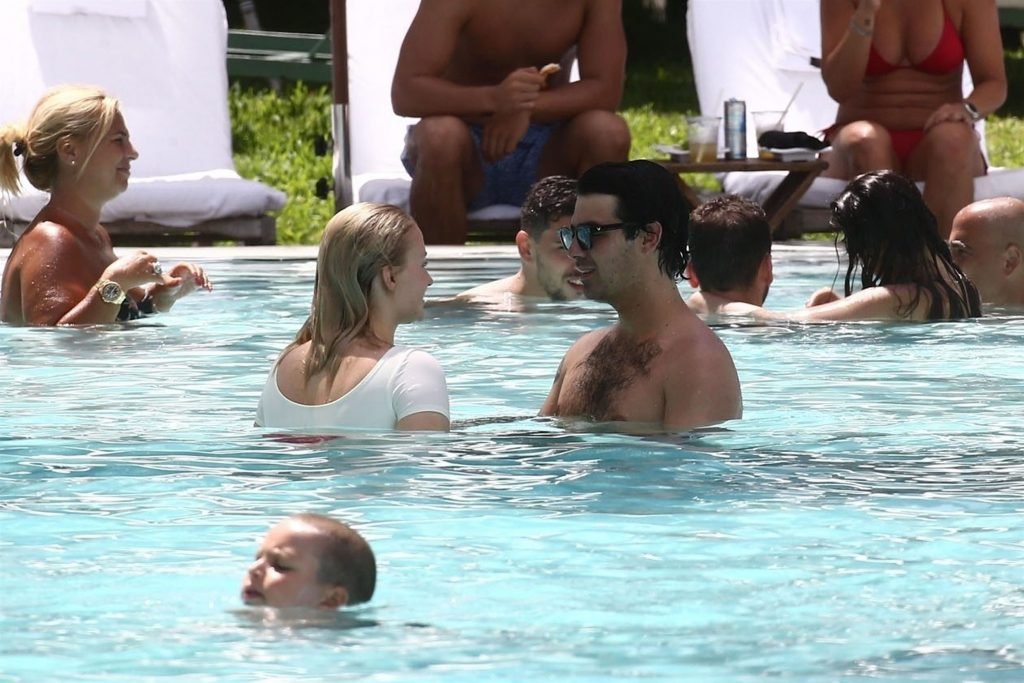 La giovane coppia si gode una giornata alla piscina dell’Hotel Delano. La coppia è stata vista mentre si scambiava effusioni pubbliche durante un tuffo in piscina dopo qualche drink. Joe, che festeggia il suo 29° compleanno il 15, ha anche apprezzato un sigaro mentre si rilassavano con gli amici.