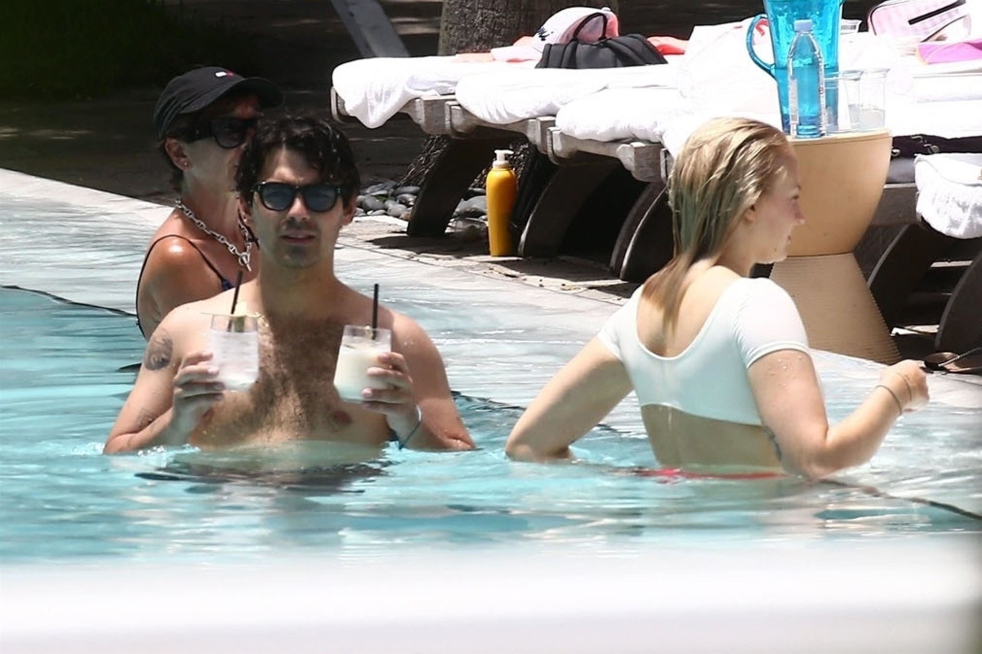 La giovane coppia si gode una giornata alla piscina dell’Hotel Delano. La coppia è stata vista mentre si scambiava effusioni pubbliche durante un tuffo in piscina dopo qualche drink. Joe, che festeggia il suo 29° compleanno il 15, ha anche apprezzato un sigaro mentre si rilassavano con gli amici.
