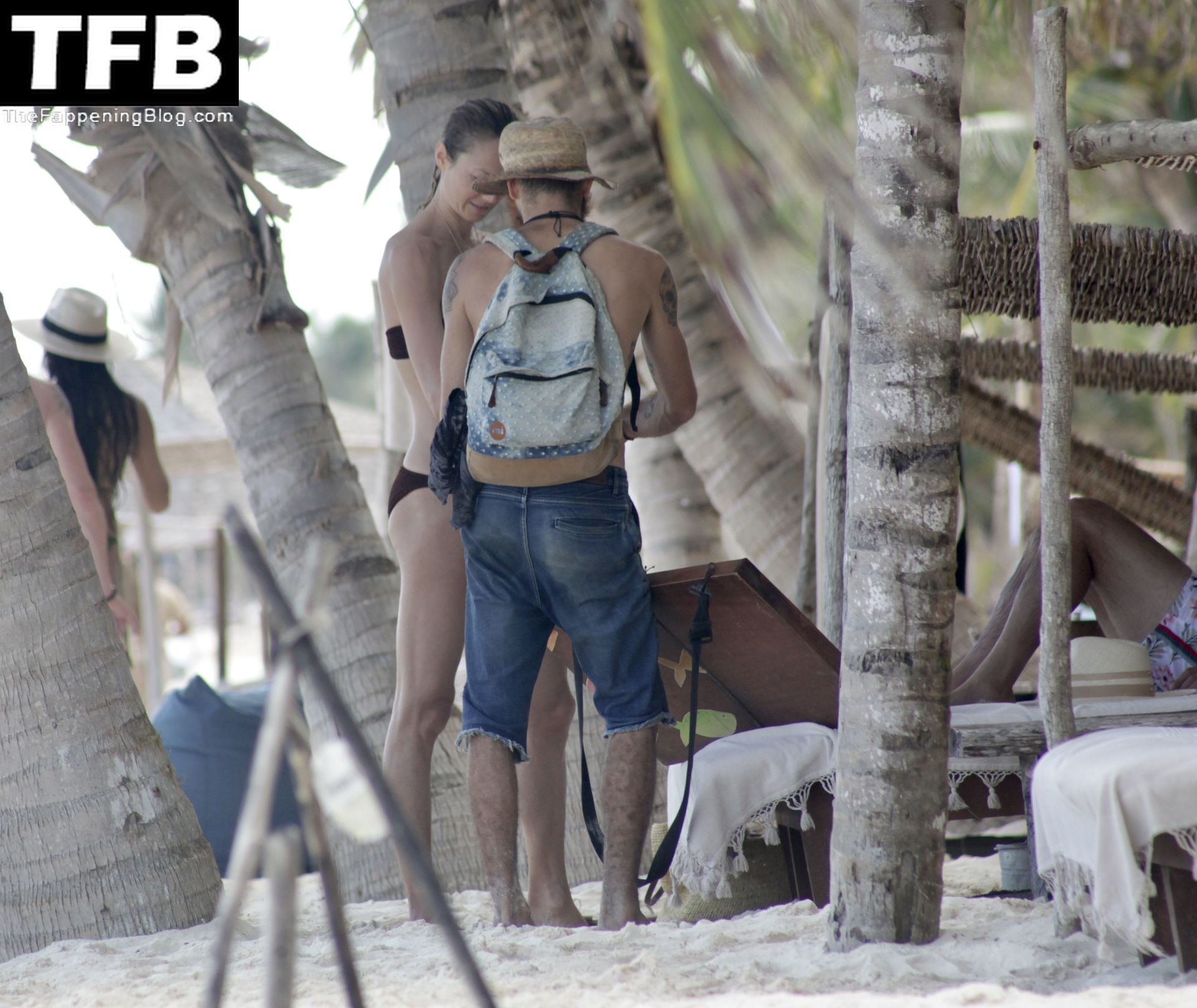 ESCLUSIVO: L’ex cheerleader americana, wrestler professionista ritirata, attrice, ballerina e modella Stacy Keibler e l’imprenditore tecnologico americano Jared Pobre sono stati visti mentre si divertivano acquistando souvenir e godendosi la giornata sulla spiaggia a Tulum, 10/09/2021.