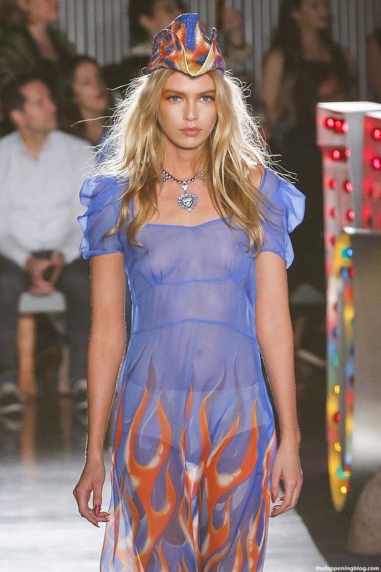 Stella, the Victoria’s Secret’s Angel, walked the runway in a beige dress with her bare breasts for everyone to see. The model was confident and pretty as always. If she only would show us her pussy, I would get wet as quick as a lightning strike! Anyway, enjoy the pics!