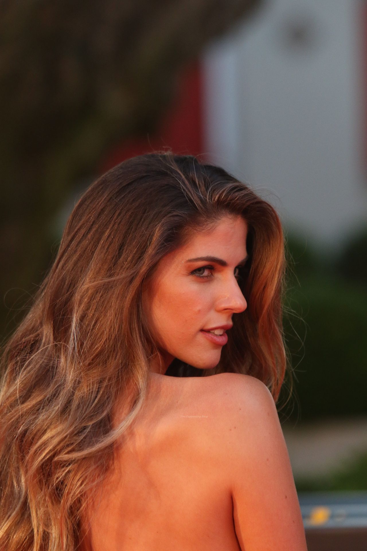 L’attrice e modella peruviana Stephanie Cayo è vista in un abito verde sul tappeto rosso all’interno dell’hotel Miramar, 07/06/2021.