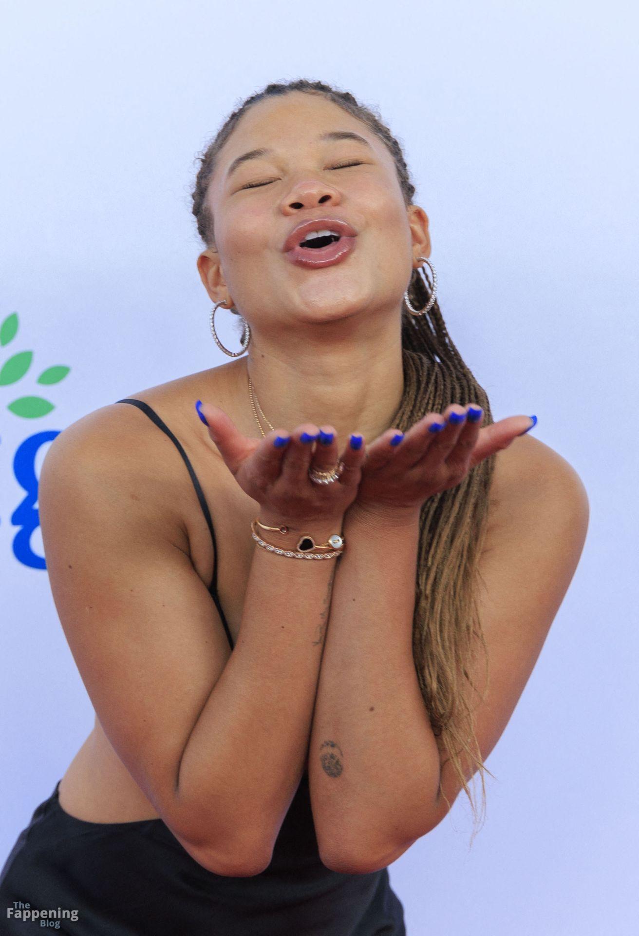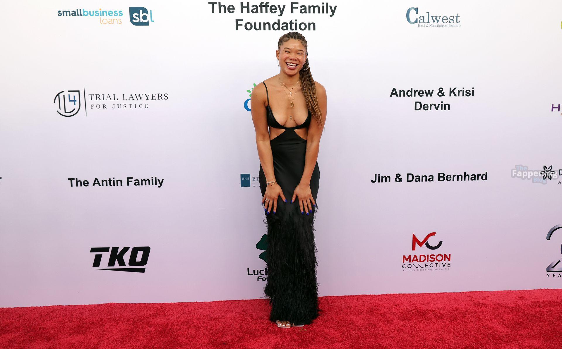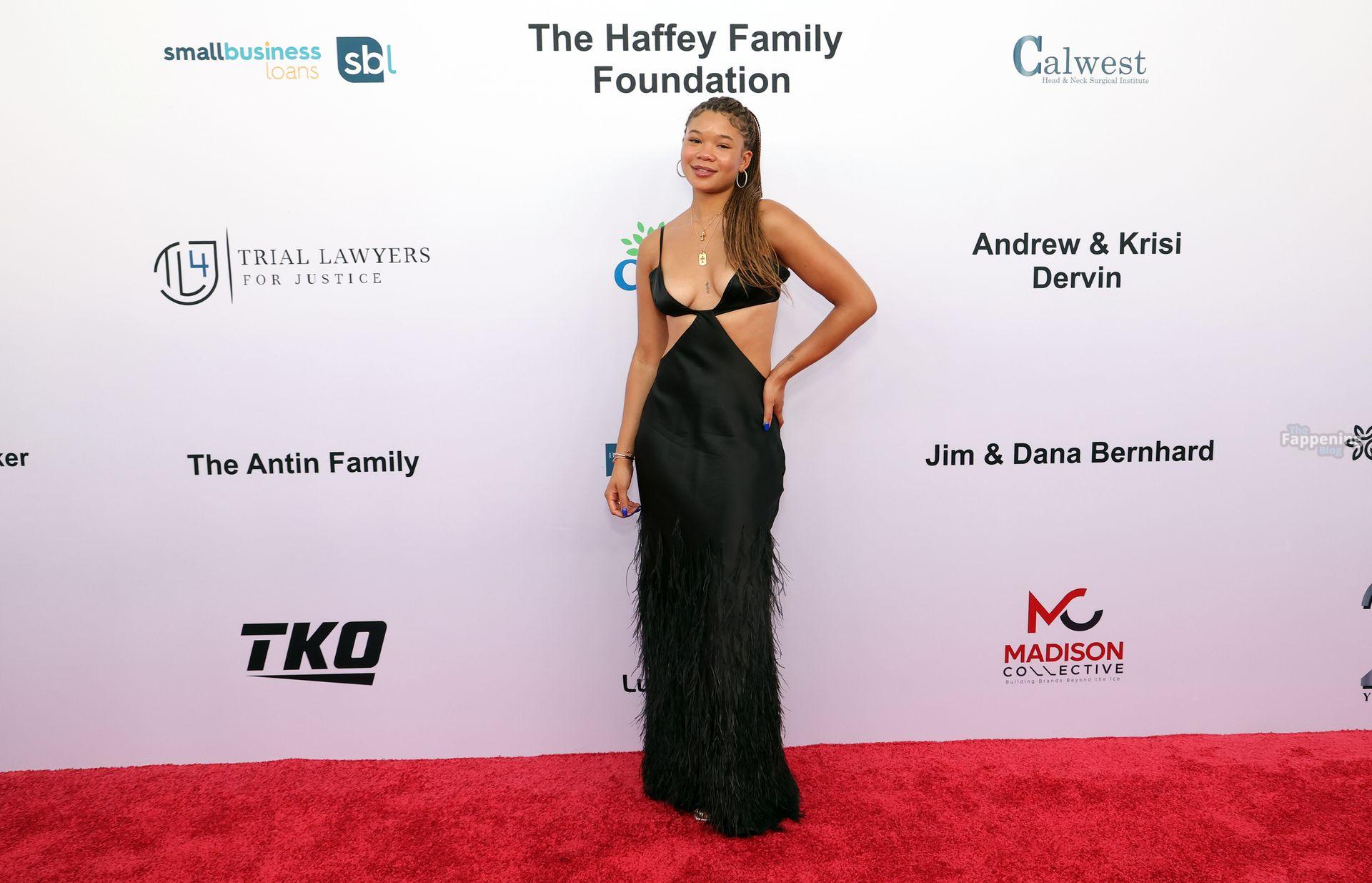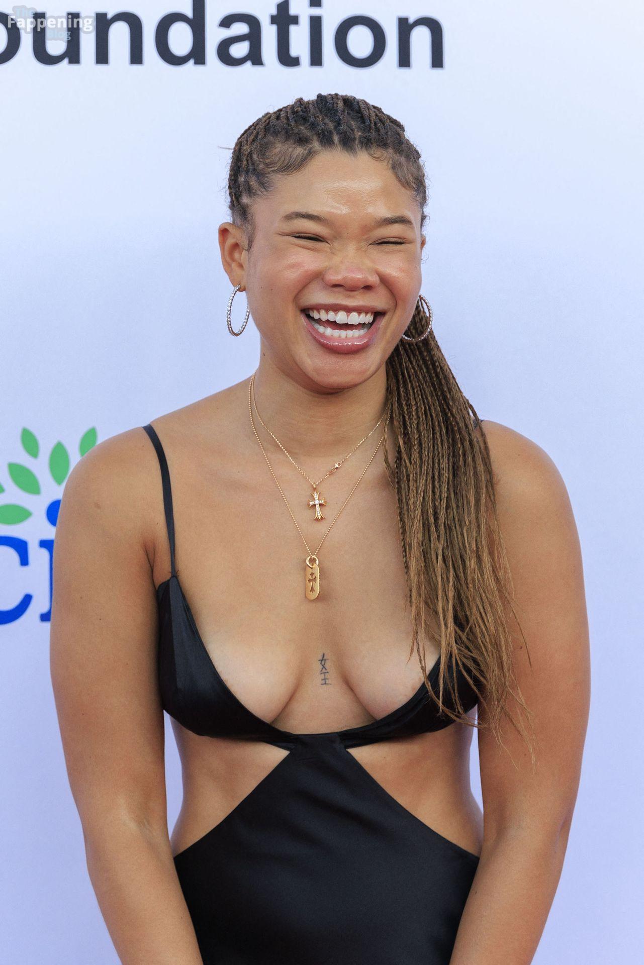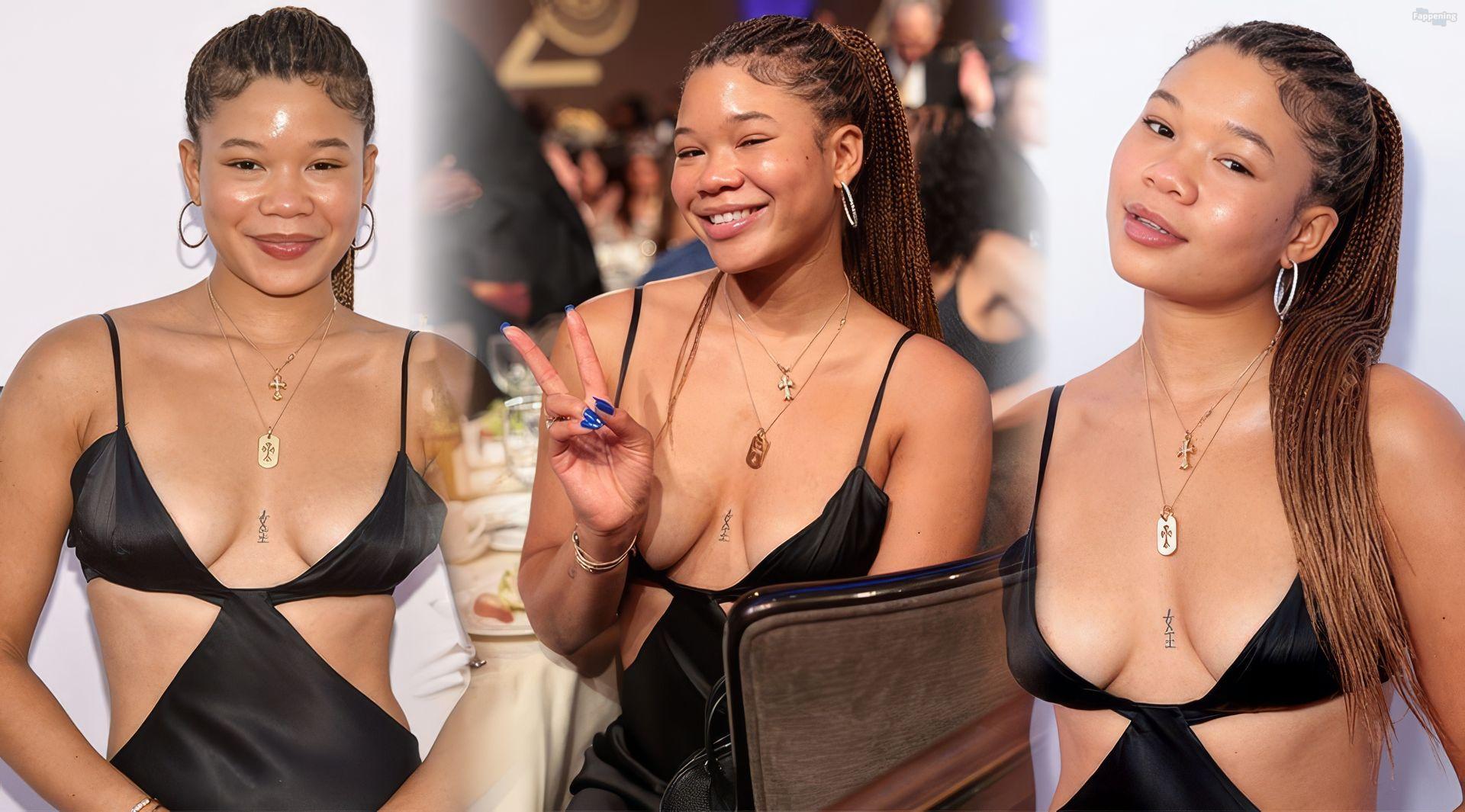 Storm Reid è stata vista alla Harold and Carole Pump Foundation al The Beverly Hilton di Beverly Hills con un audace abito nero con alcuni tagli, mostrando i suoi seni sexy.