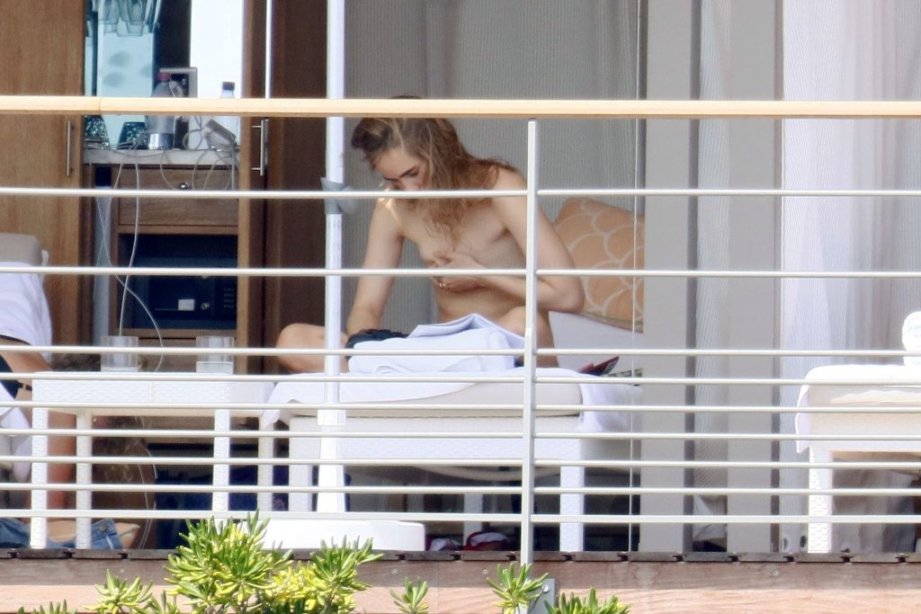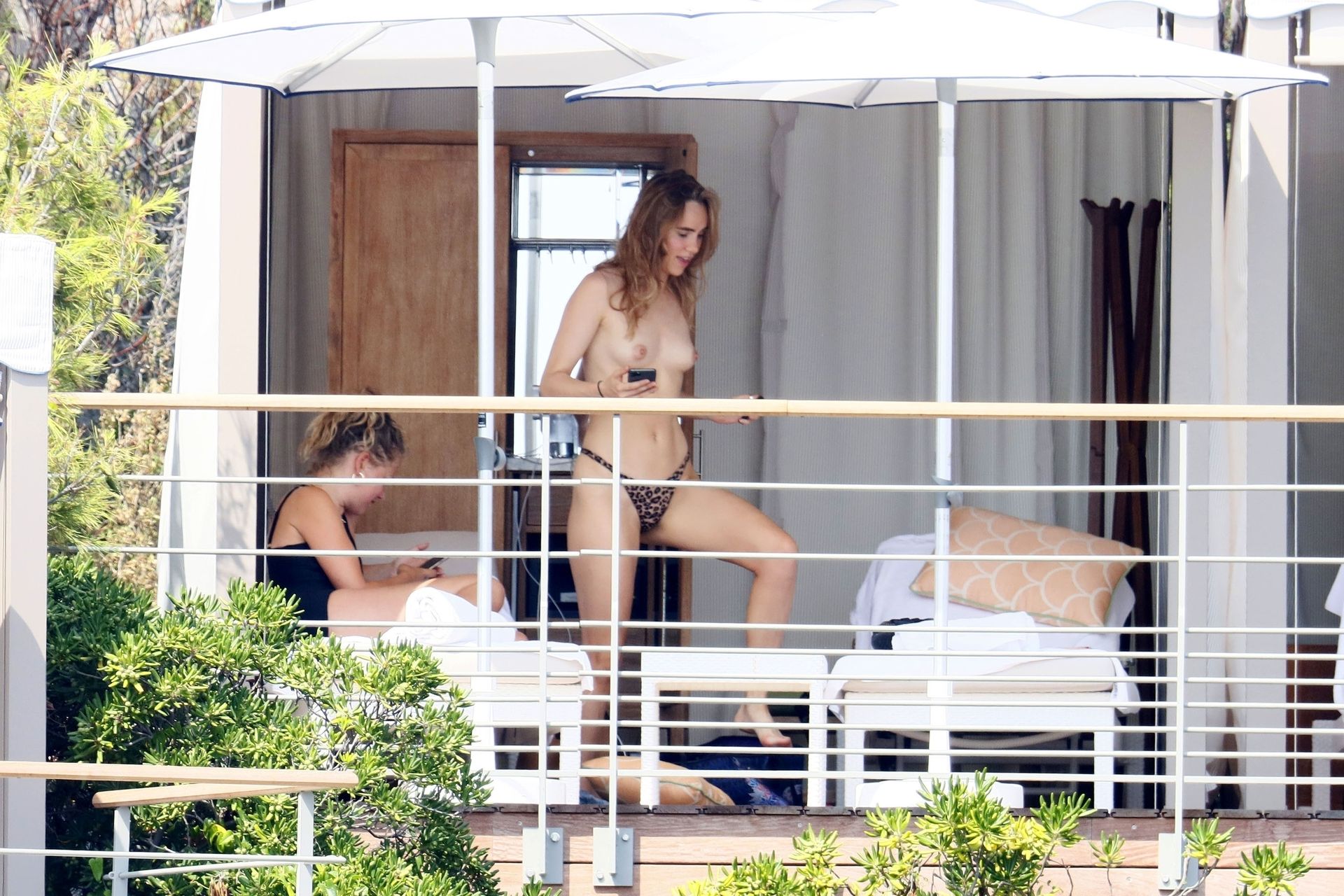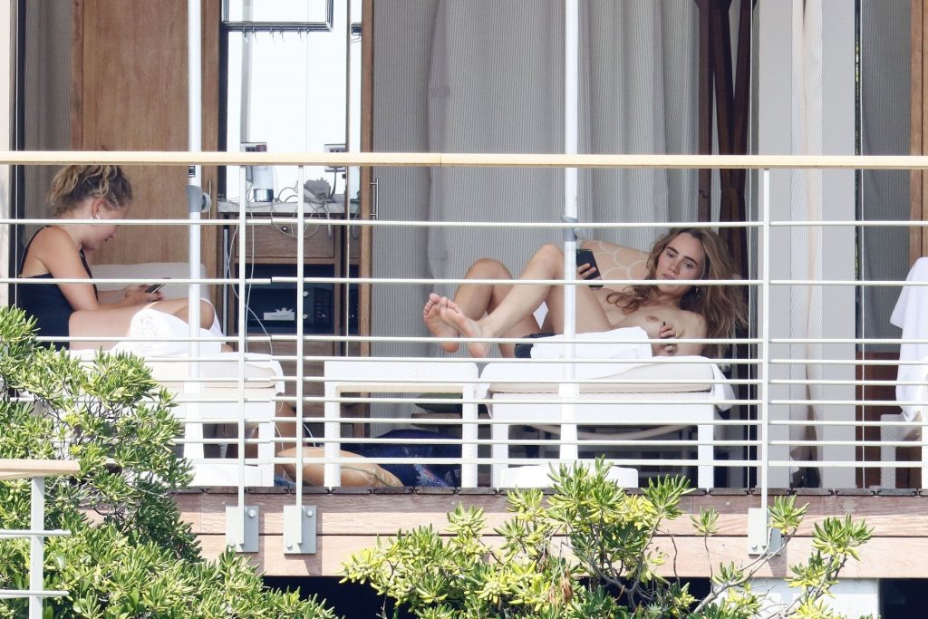 La modella britannica Suki Waterhouse è stata fotografata mentre prendeva il sole senza reggiseno durante la sua vacanza nel Sud della Francia, 31/07/2020.