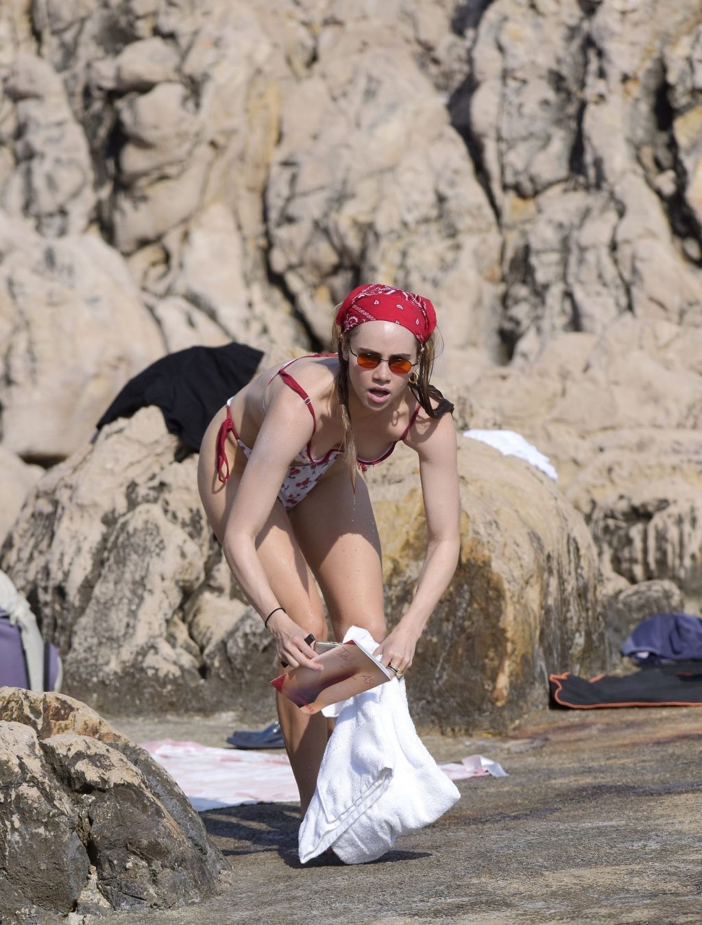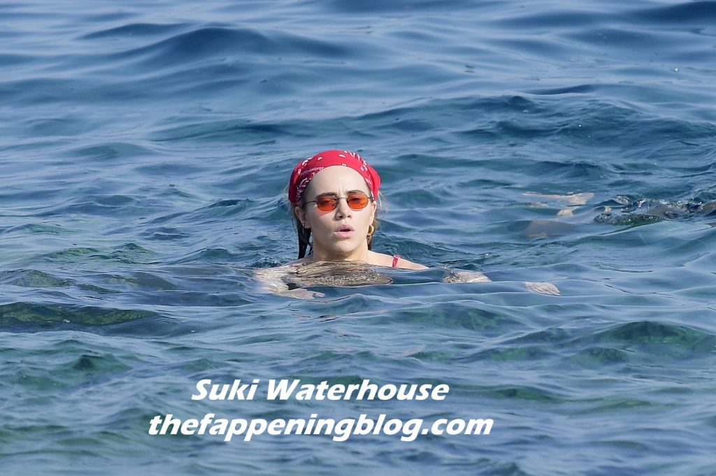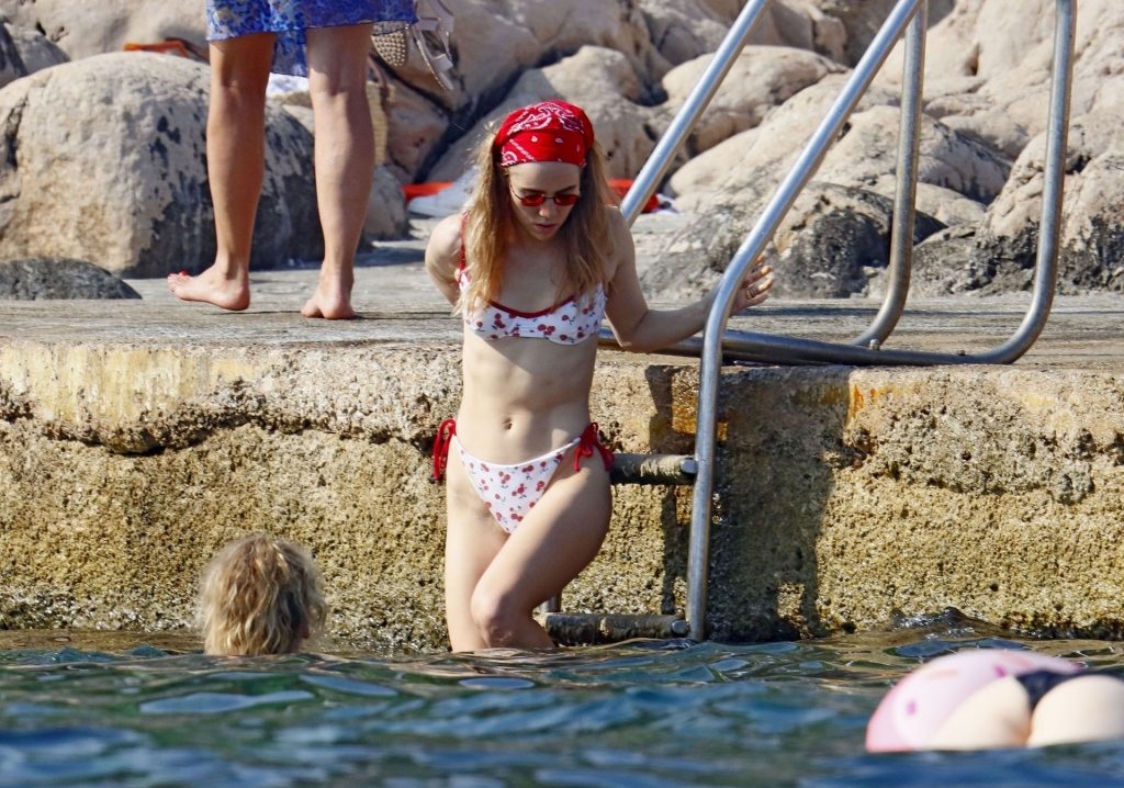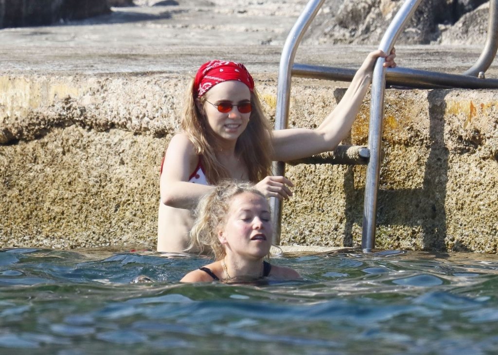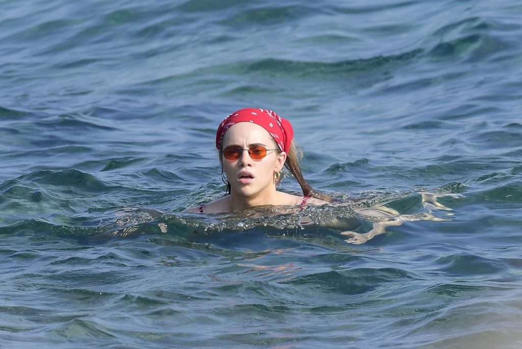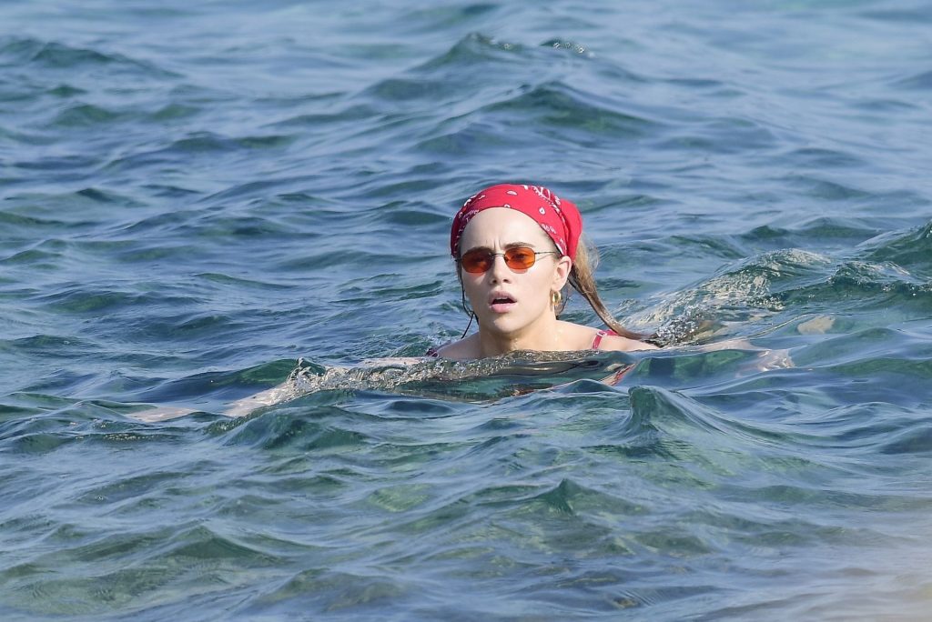 Modella inglese, attrice Suki Waterhouse incanta con un bikini Louis Vuitton e una fascia rossa mentre si tuffa con un’amica godendosi il caldo clima in vacanza nel Sud della Francia, 31/07/2020.