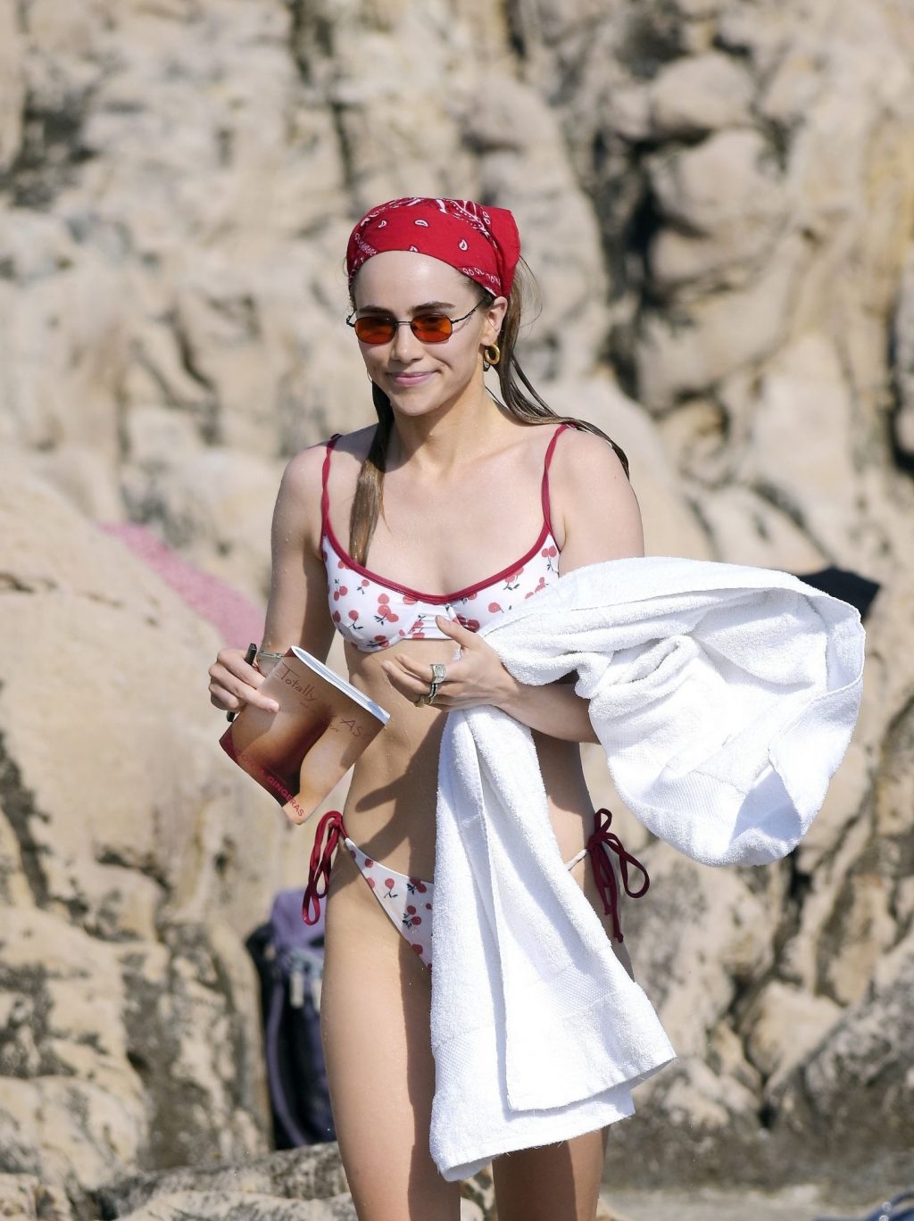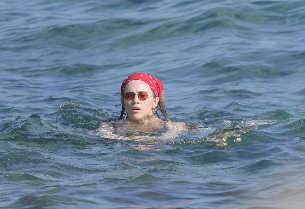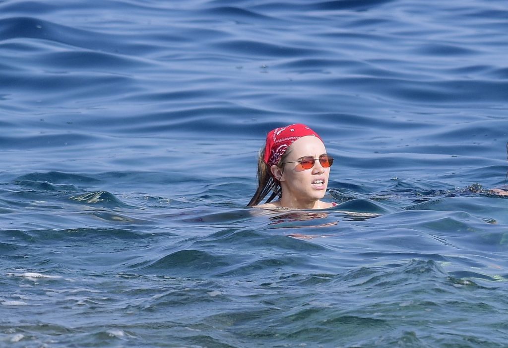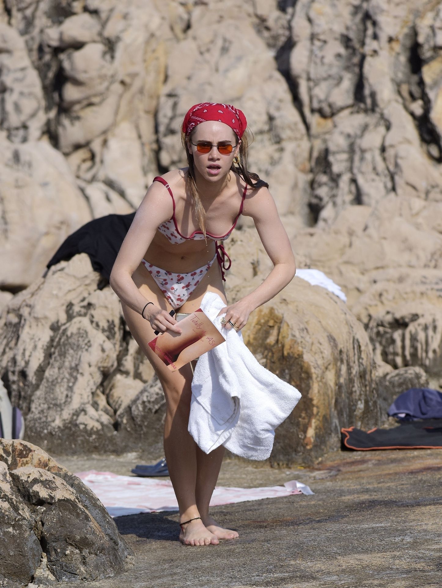 Modella inglese, attrice Suki Waterhouse incanta con un bikini Louis Vuitton e una fascia rossa mentre si tuffa con un’amica godendosi il caldo clima in vacanza nel Sud della Francia, 31/07/2020.