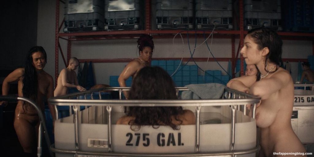 Olivia Thirlby è seduta in una vasca piena d’acqua mentre lei e altre donne si lavano. Olivia mostra solo un po’ di scollatura, ma la maggior parte delle altre ragazze mostra il seno e alcune mostrano nudità frontale completa.