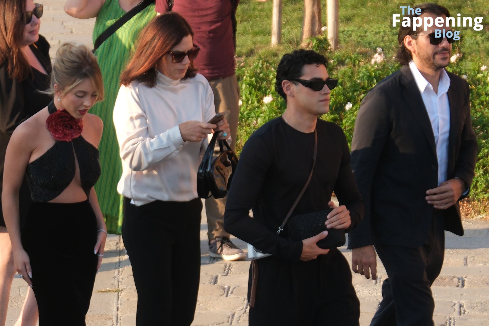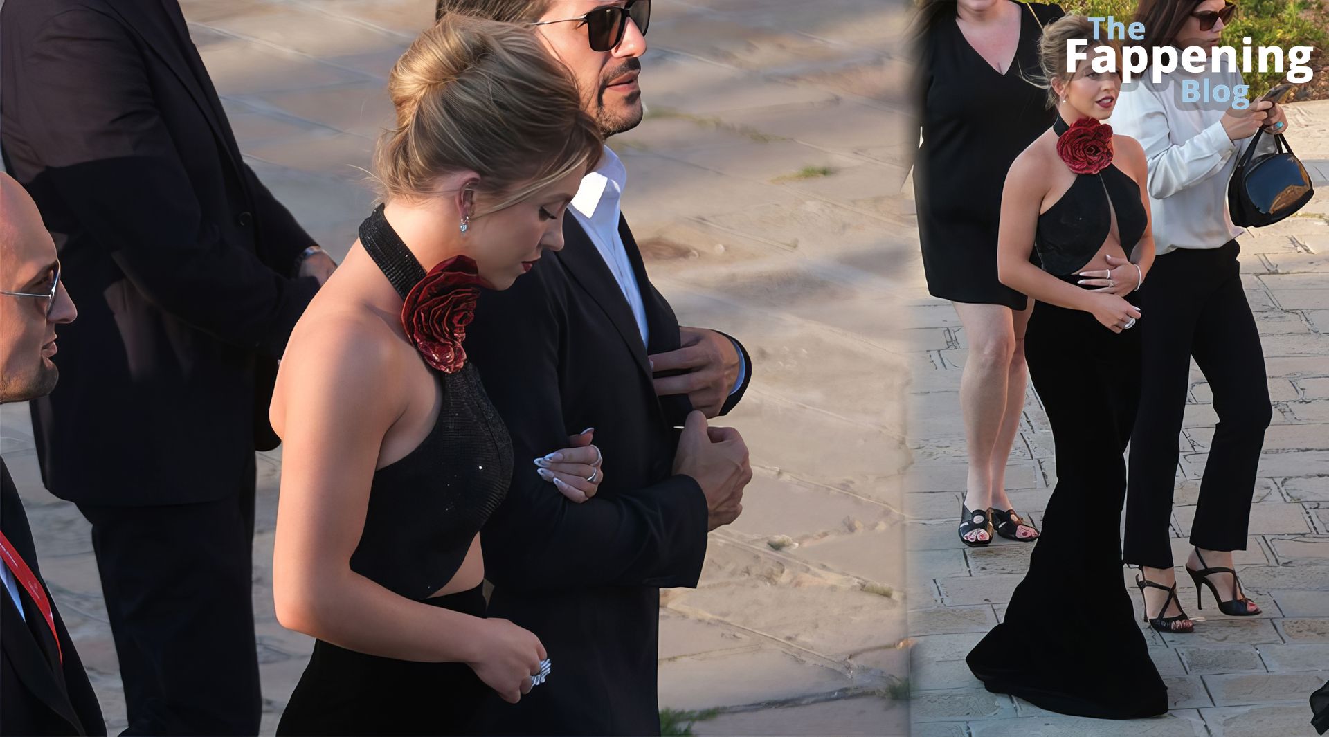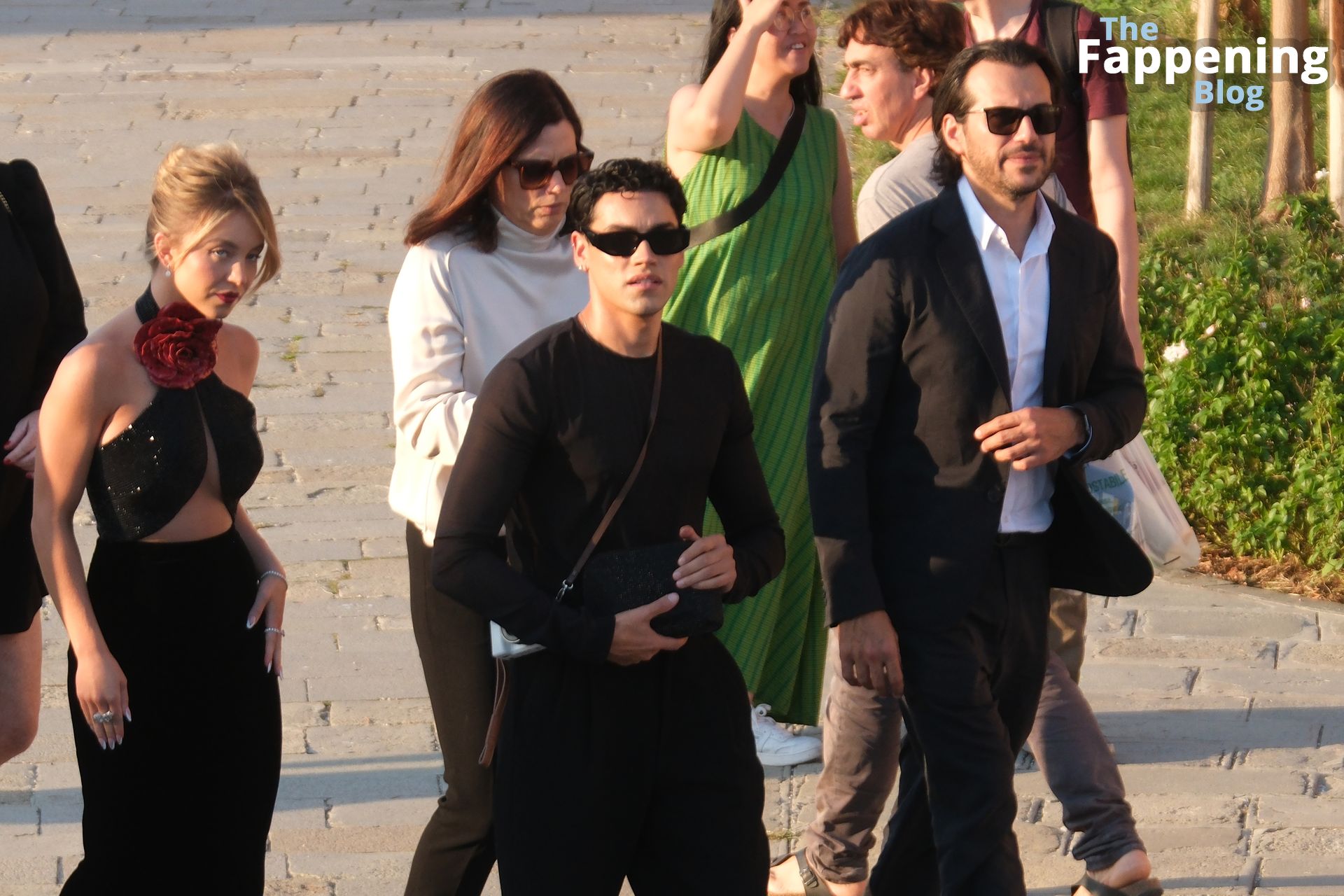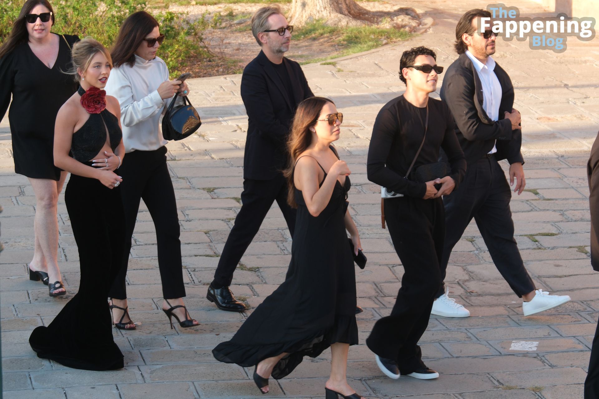L’ingresso di Sydney a Venezia è semplicemente indimenticabile! Preparati a immergerti nel fascino sensuale del suo look con abito nero.
