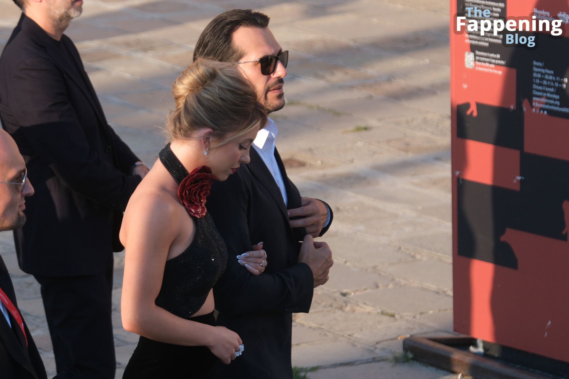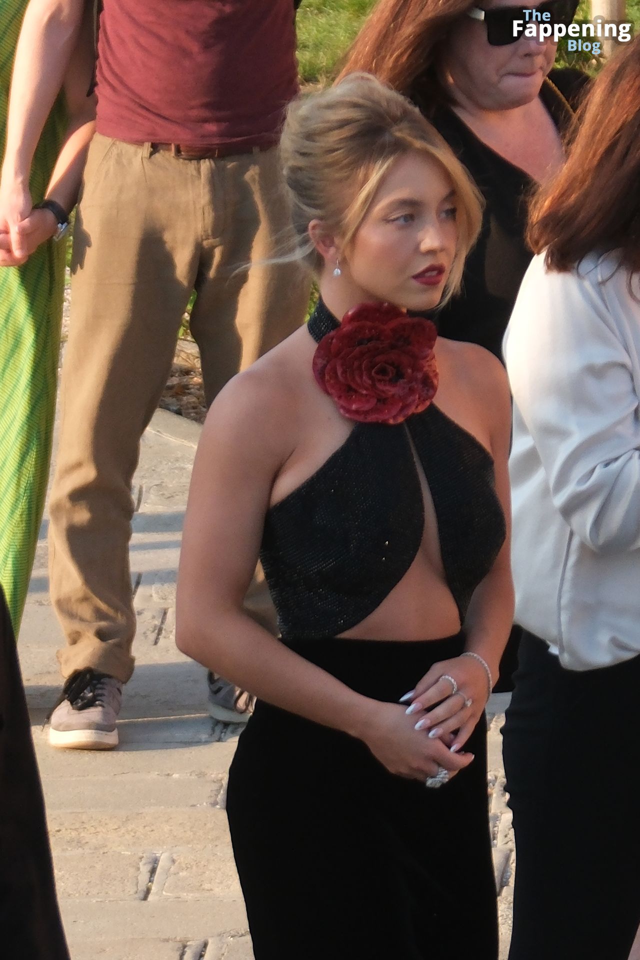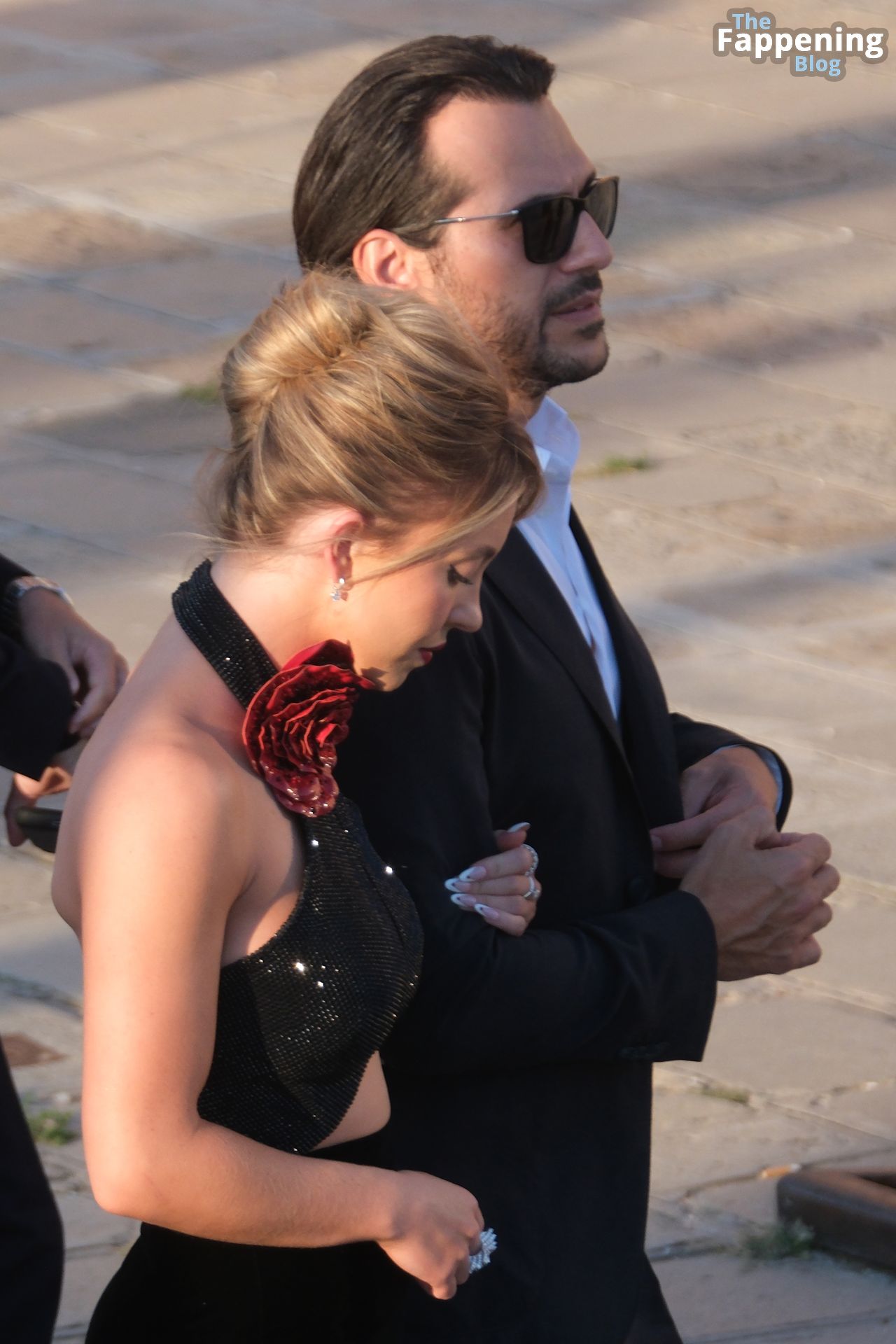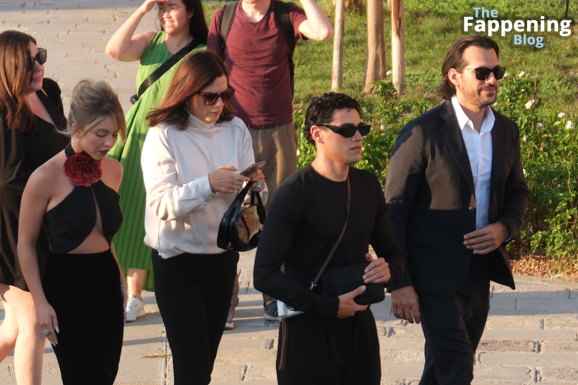 L’ingresso di Sydney a Venezia è semplicemente indimenticabile! Preparati a immergerti nel fascino sensuale del suo look con abito nero.