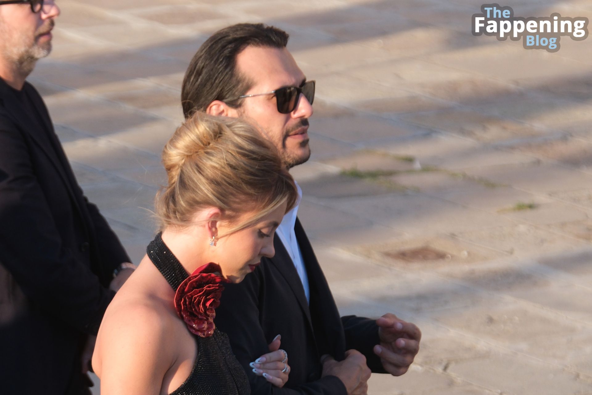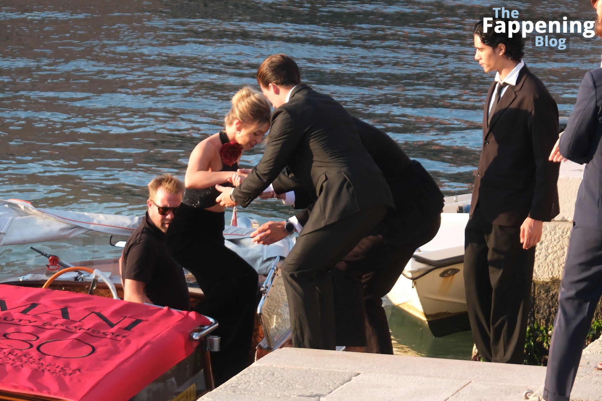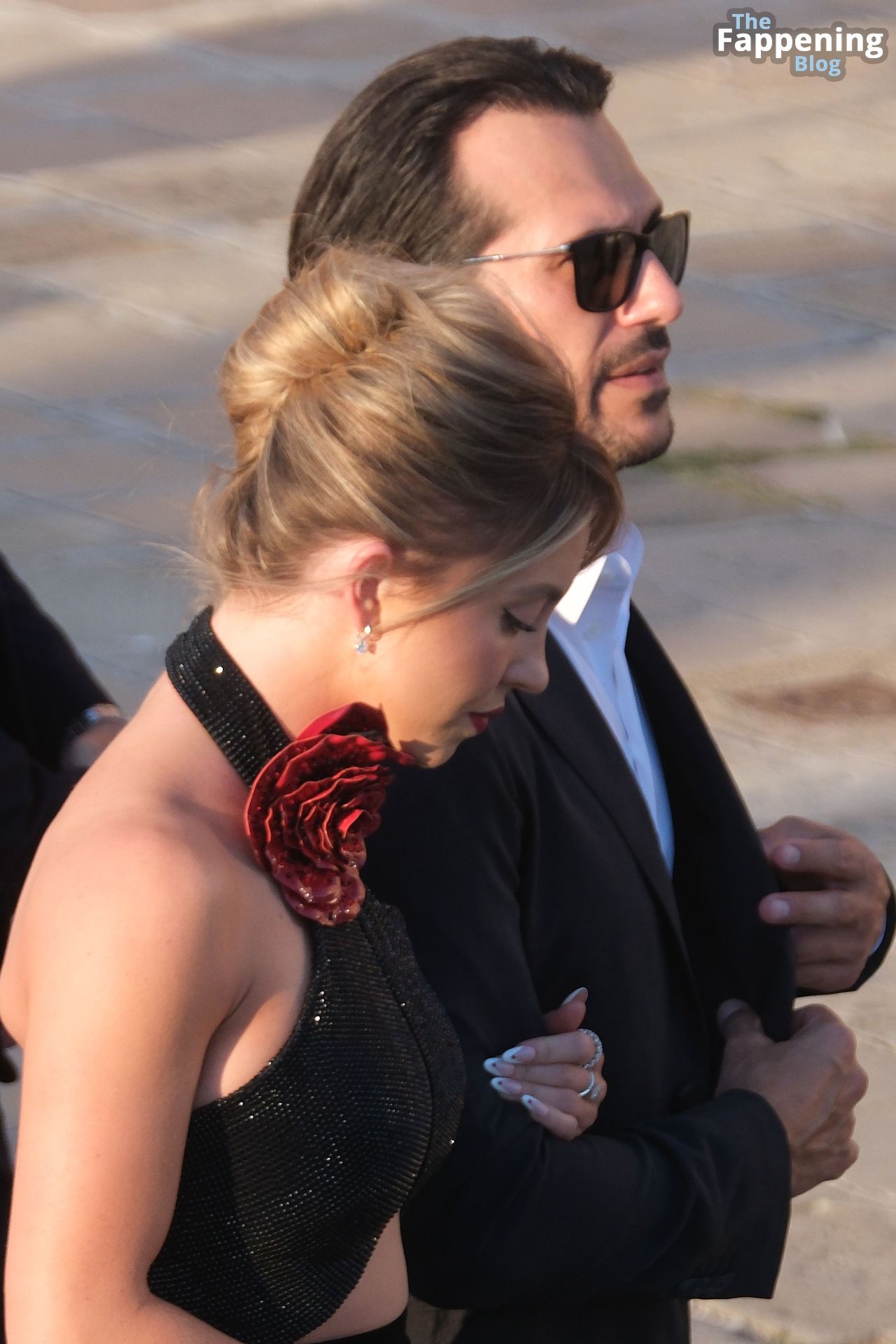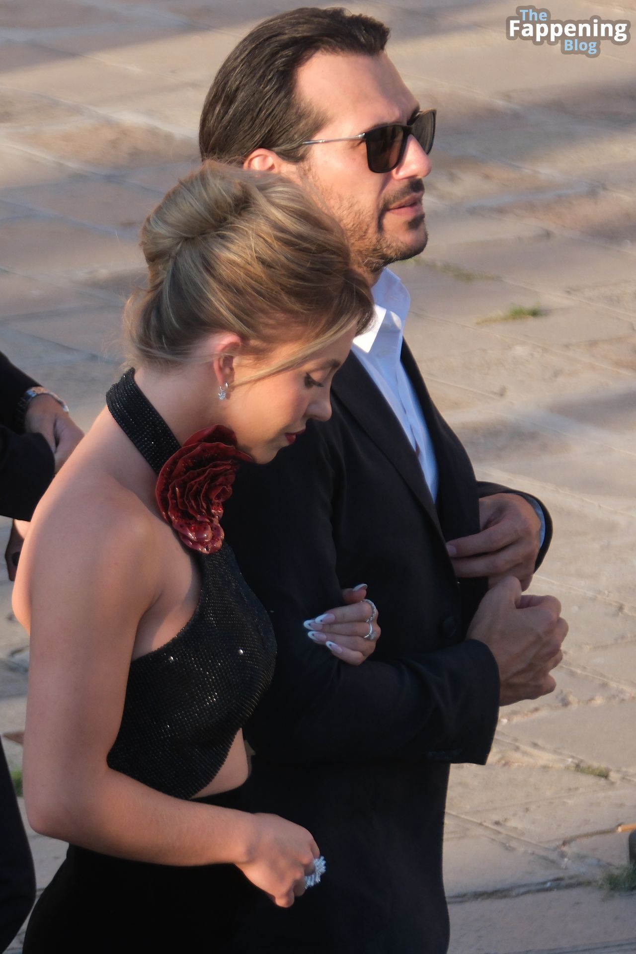 L’ingresso di Sydney a Venezia è semplicemente indimenticabile! Preparati a immergerti nel fascino sensuale del suo look con abito nero.