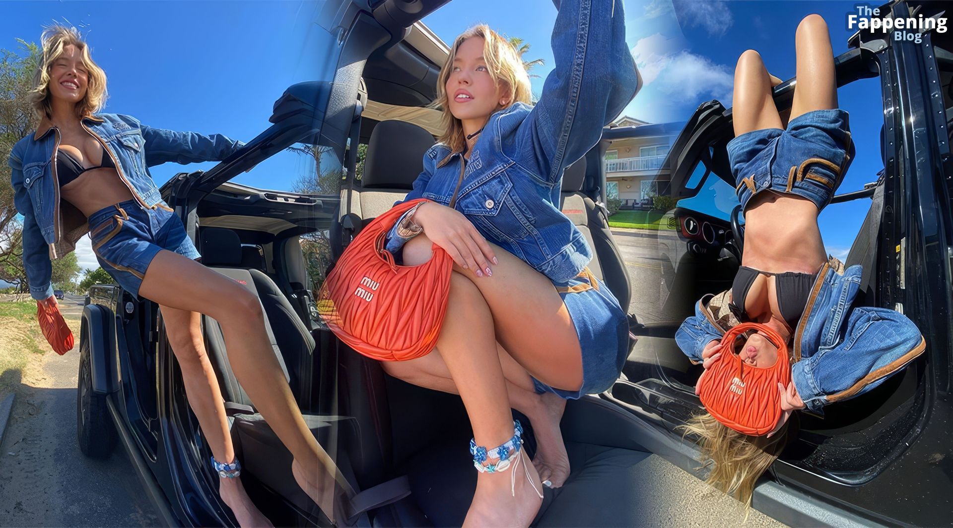 Guarda Sydney Sweeney che sfoggia un top bikini alla moda e shorts di jeans, accendendo l’atmosfera e facendo battere i cuori più forte.